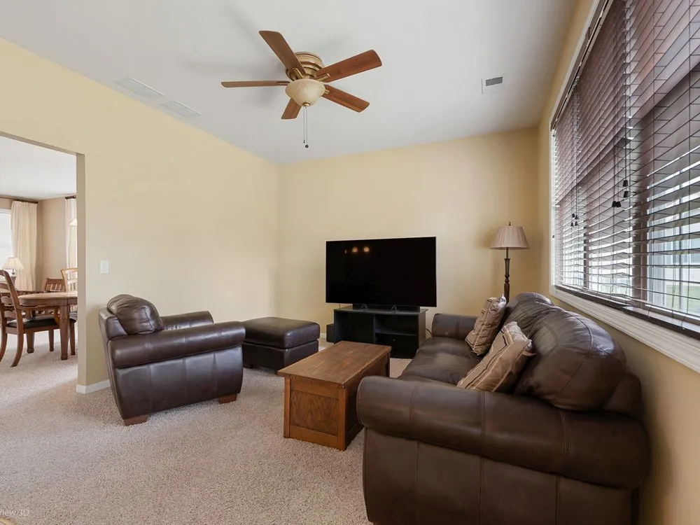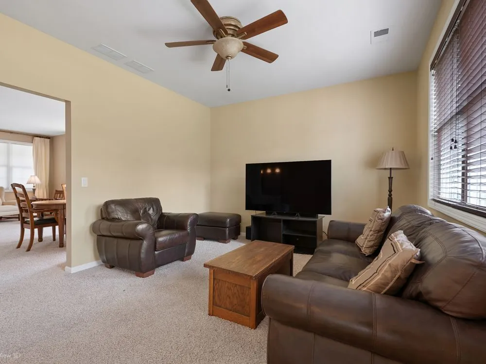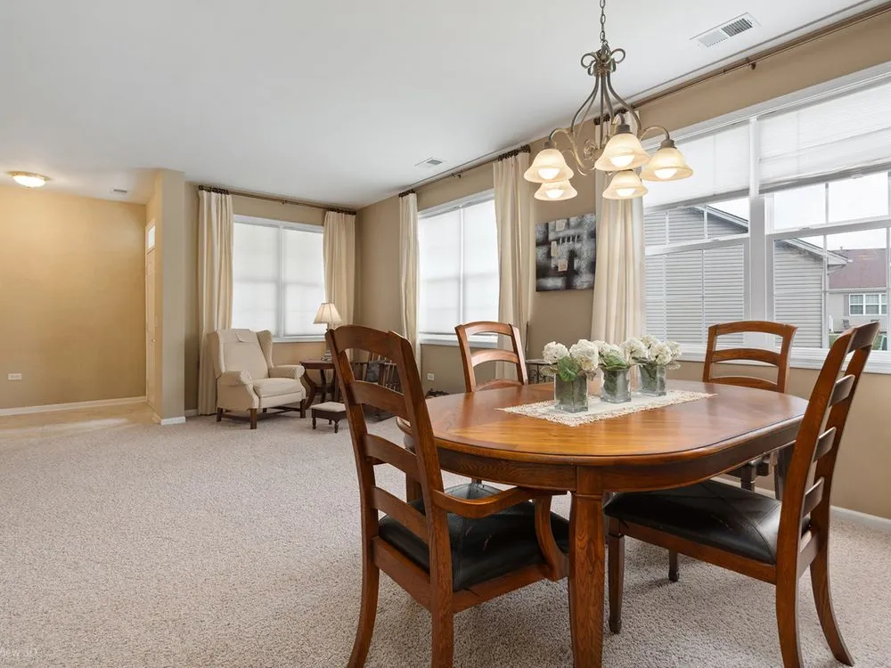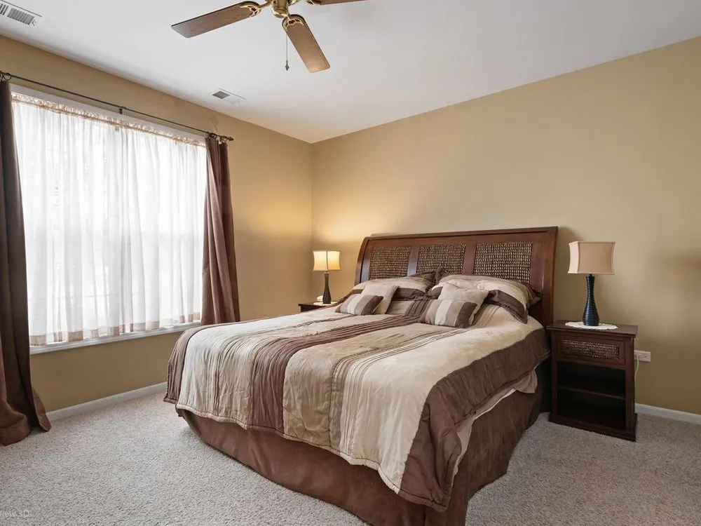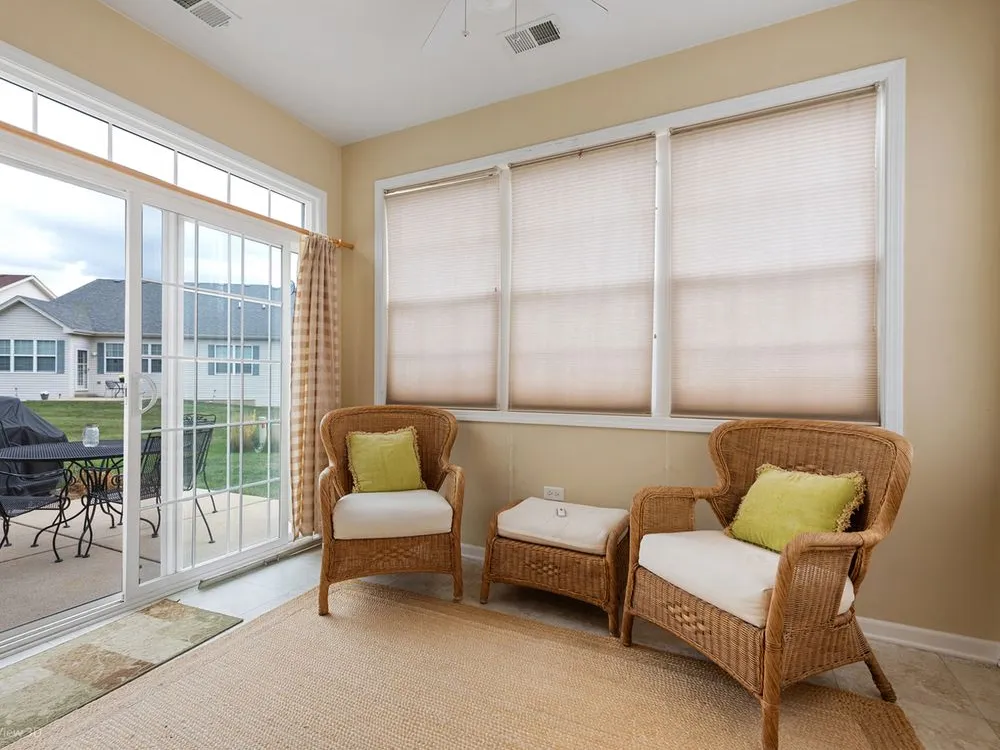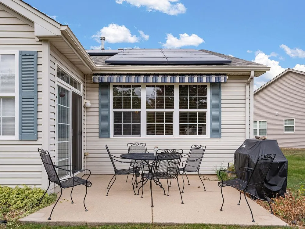 Welcome to Lago Vista - Lockport's premier 55+ active adult community! This beautifully maintained 2-bedroom ranch home with a den and bright sunroom is one of the larger models in the subdivision, ideally located on a premium oversized lot. The open-concept design and natural light make this home perfect for those seeking low-maintenance, single-level living in a friendly, resort-style neighborhood. The kitchen is a true highlight, offering 42" maple cabinets, solid-surface Corian countertops, center island, pantry closet, and plenty of space for a kitchen table - ideal for everyday dining or entertaining family and friends. The sunroom opens to a concrete patio with a newer retractable awning (2023), creating the perfect outdoor retreat. The primary suite is an impressive 15' x 30', featuring a huge walk-in closet and a newly updated en suite bath (2023) with a modern walk-in shower. Additional updates include a new HVAC system (2022), Bosch dishwasher (2021), solar panels installed in 2020 ($52/month, keeping electric costs low), and a roof approximately 10 years old. Residents of Lago Vista enjoy a vibrant active adult lifestyle with access to indoor and outdoor pools, a large clubhouse, fitness center, walking trails, and year-round social events. The low HOA dues cover lawn care, snow removal, and full use of community amenities - giving you more time to enjoy life and less time maintaining your home. If you're looking for a well-cared-for ranch home in a 55+ community located near New Lenox, Homer Glen, and Joliet, this move-in-ready property offers comfort, efficiency, and community living at its best.