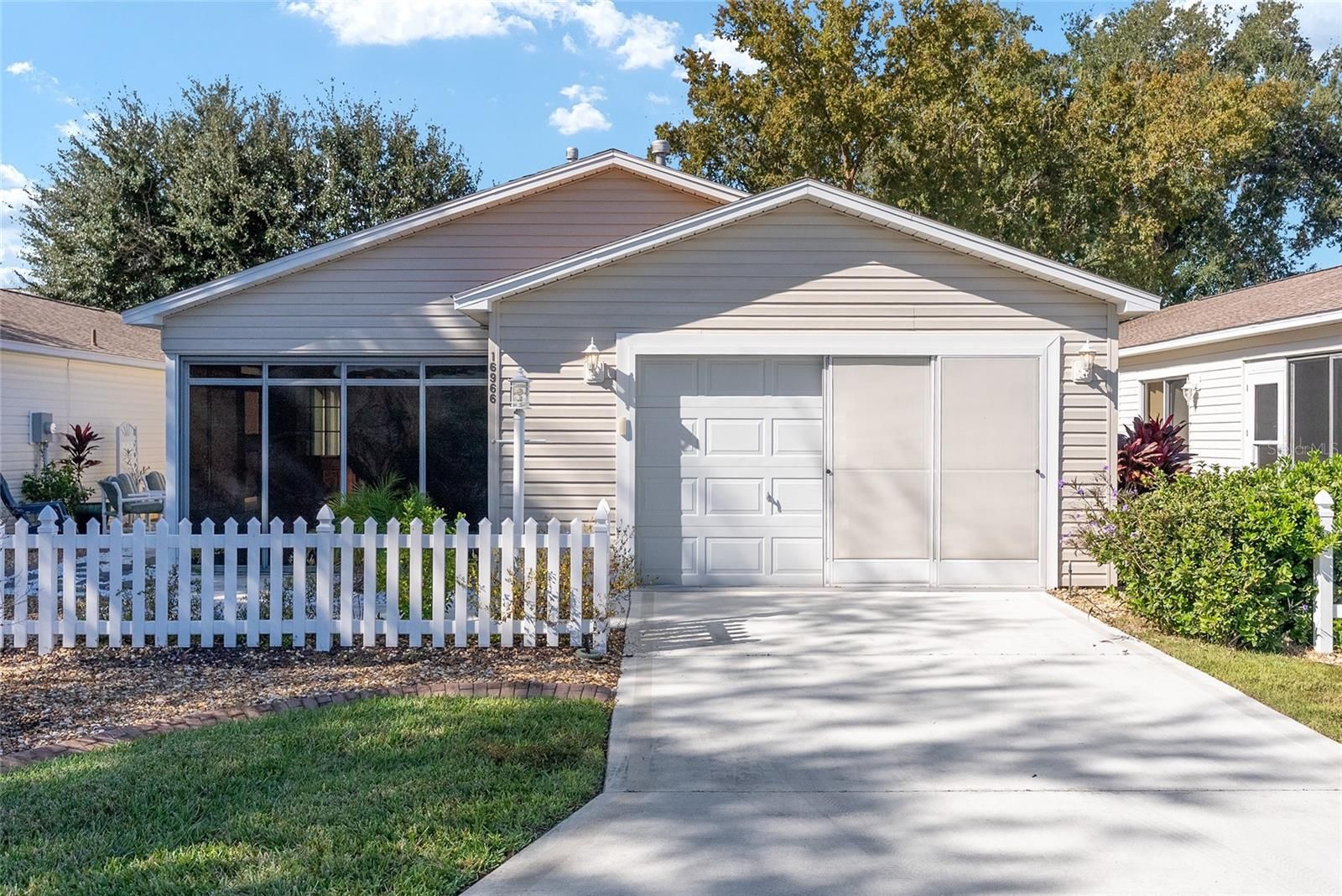 Welcome to this beautifully updated 2-bedroom, 2-bath Colony Courtyard Villa in the sought-after Village of Woodbury-BOND IS PAID! This charming home offers an inviting open layout with bright living and dining spaces, a well-appointed kitchen with breakfast bar, and a private screened lanai surrounded by refreshed landscaping (2024) — perfect for relaxing or entertaining. Turnkey property! Enjoy peace of mind with major updates already done: roof (2019), HVAC (2020), water heater (2021), new flooring (2020), dryer (2022), and dishwasher (2025). The spacious primary suite features a spacious walk-in closet and en-suite bath, while the guest room and second bath provide comfort for visitors. A one-car garage plus golf cart space add convenience. 2022 electric golf cart is negotiable. Located near golf, pools, shopping, dining, and recreation, this villa offers easy living in one of Florida’s most desirable active-adult communities. Move-in ready and beautifully maintained — come live the Villages lifestyle today!