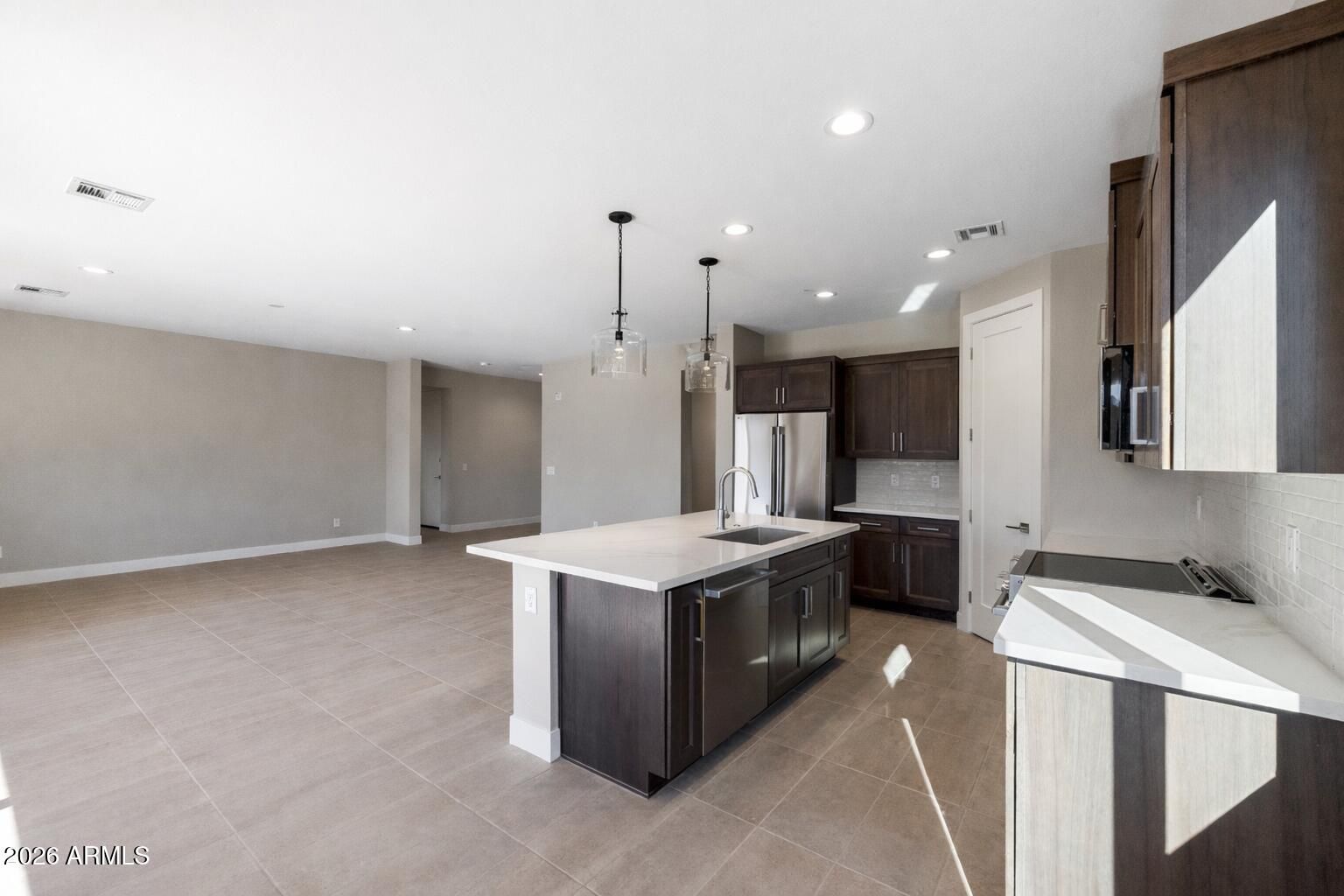 Brand-New Build on over an acre! *Will be finished April/May* Open concept design with a split floor plan for maximum privacy. You'll find 3 spacious bedrooms and 2 modern bathrooms, perfect for comfortable living. Large kitchen, boasting 6x36 tile floors, granite countertops, and stainless steel appliances. The expansive kitchen island offers ample space for meal prep and entertaining. The master suite is a true retreat with a generously sized tiled shower, stunning granite countertops, and a large walk-in closet. The home also includes spray foam insulation, enhancing energy efficiency. Outside, enjoy serene desert views with breathtaking 360-degree mountain vistas. Pictures are from a previously built MTH, but same floorplan. Sales contract to be on builders contract