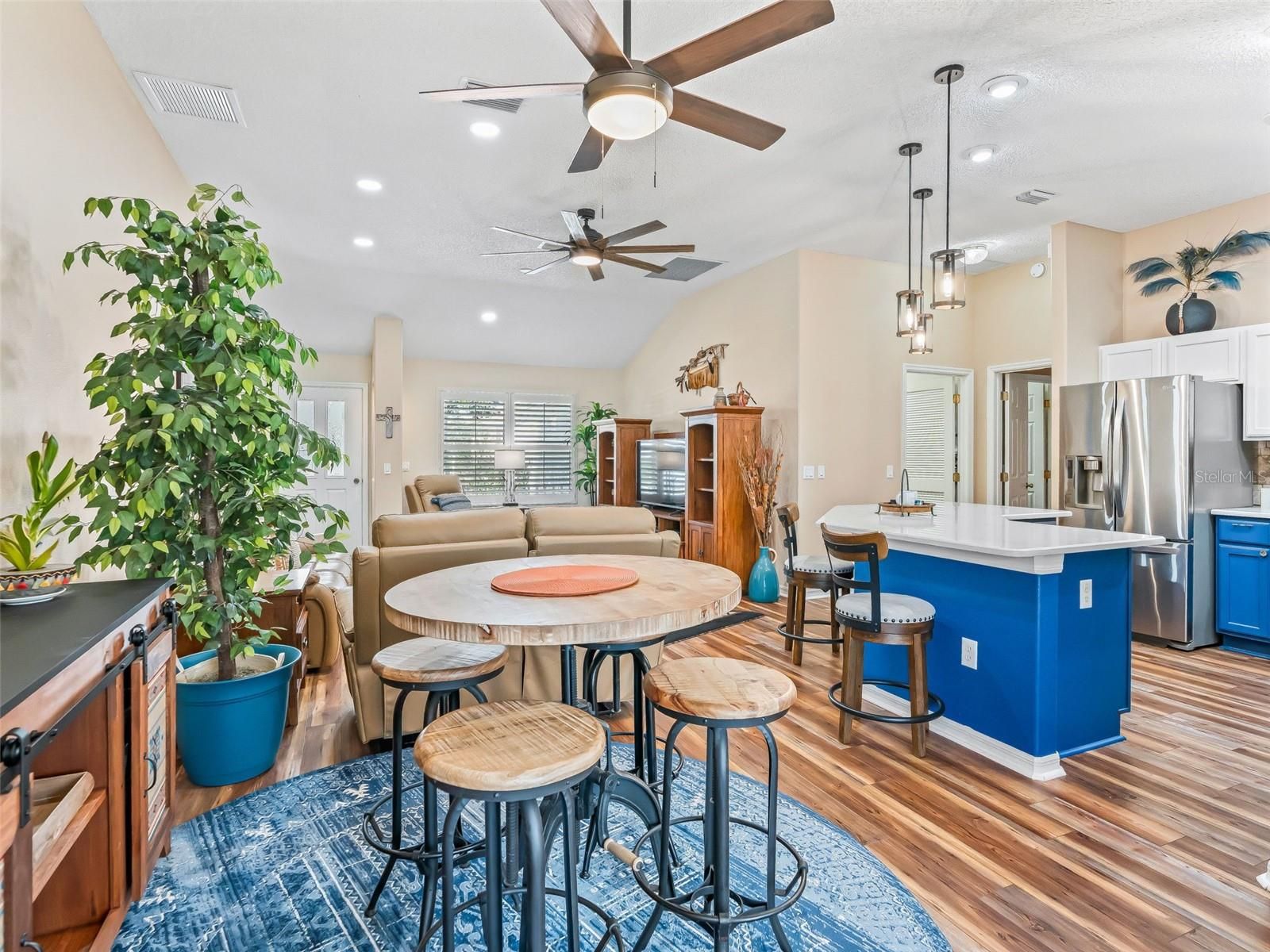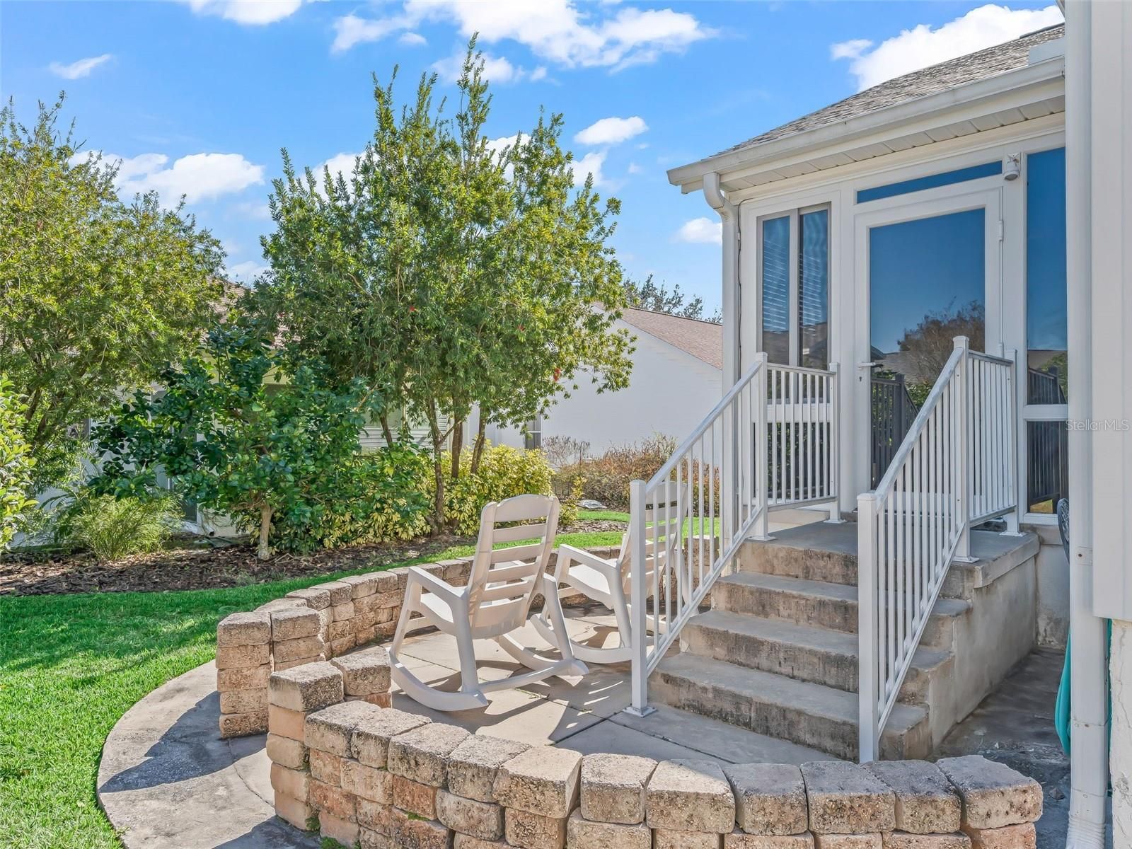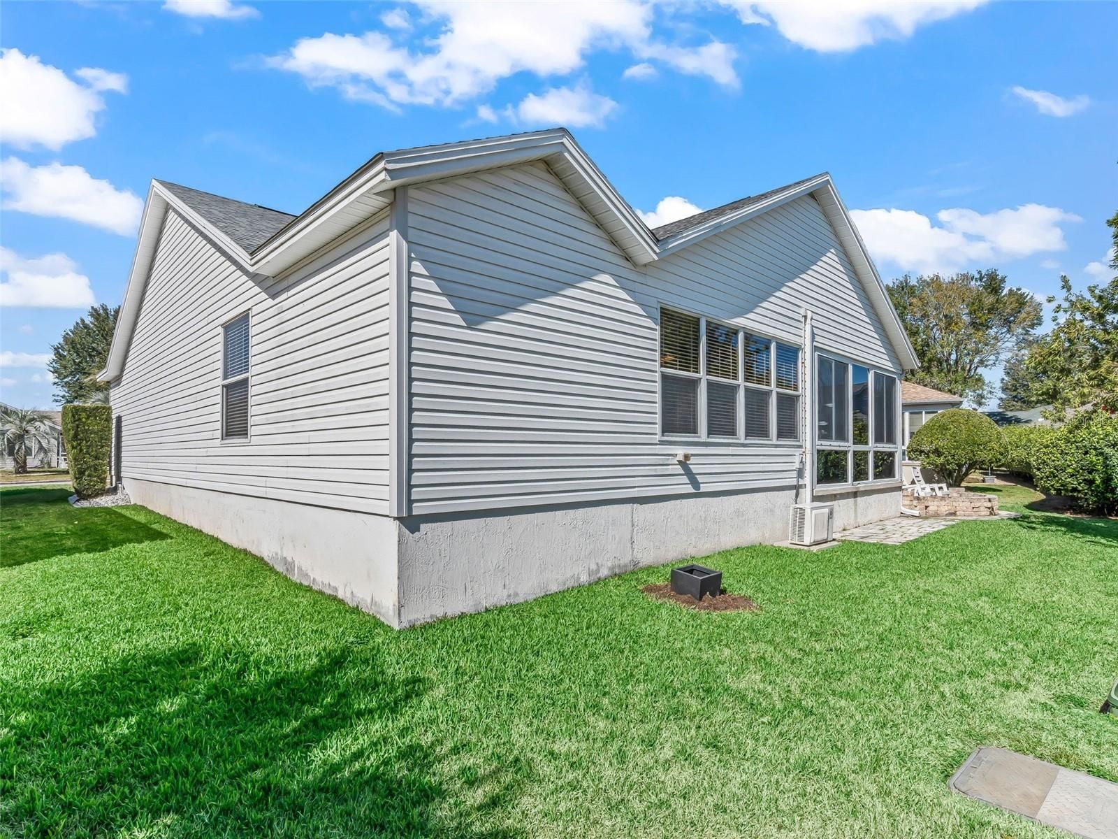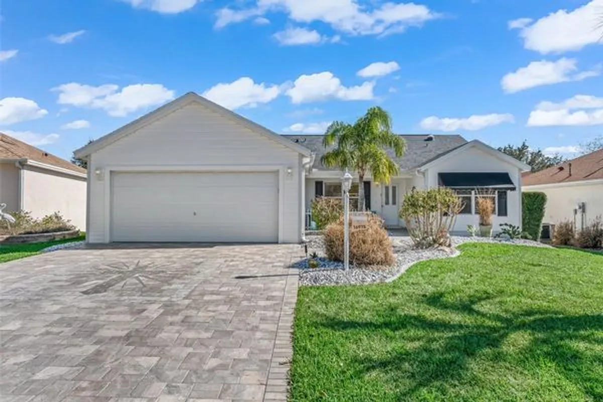 Expanded 1,558 SF Banyan w/ Florida Room + Enclosed Lanai + Paver Patio in a Prime Location! Standout CURB APPEAL—featuring a DESIGNER paver driveway & walkway, rock landscaping with curbing, and a cute front porch that’s perfect for greeting neighbors & guests. UPDATED & EXPANDED!! You’ll appreciate the UPGRADED FANS & FIXTURES, and the SPLIT-BEDROOM, OPEN, EASY-LIVING FEEL this home delivers! You’ll notice the LUXURY rustic-look laminate flooring throughout-- NO FLOOR TRANSITIONS from room to room—plus SOLAR TUBES for natural light! UPGRADED KITCHEN: painted cabinetry, white GRANITE countertops, STAINLESS STEEL appliances, and PENDANT LIGHTING—clean, bright, and ready for everyday meals or entertaining. BOTH BATHROOMS UPGRADED!! granite-top vanities, framed mirrors, and updated lighting. The guest bath includes a tiled tub/shower, while the SPACIOUS PRIMARY ENSUITE features DUAL SINKS, a GORGEOUS, WALK-IN TILE SHOWER with 2 built-in seats and a frameless clear glass shower door, plus a large extra linen closet for added storage. Functionality: INSIDE LAUNDRY w/ storage cabinetry and an extra refrigerator! The DEEP GARAGE is lined with storage cabinets and a whole-house water filtration system. EXPANDED living space with the FLORIDA ROOM- plus- sunny ENCLOSED LANAI with A/C split and a PAVER PATIO—perfect for grilling or relaxing outdoors. Storage is exceptional w/ a bonus HUGE STORAGE ROOM/CUSTOM CLOSET!!! built off the guest bedroom (in addition to the existing closet), and generous closets in every bedroom—including a primary closet over 10 feet deep. UNBEATABLE CONVENIENCE: Mulberry Shopping Center is UNDER A MILE (~3-4-min. GOLF CART RIDE!): Publix, Beef O’Brady’s, Subway, Bealls Outlet, and more! Plus, you’re ~1 MILE to the VA Medical Center, close to plenty of golf and recreation, and only about 15 minutes to both Spanish Springs and Lake Sumter Landing for dining, shopping, and live entertainment year-round. This one checks all the boxes—updates, space, storage, and location!
