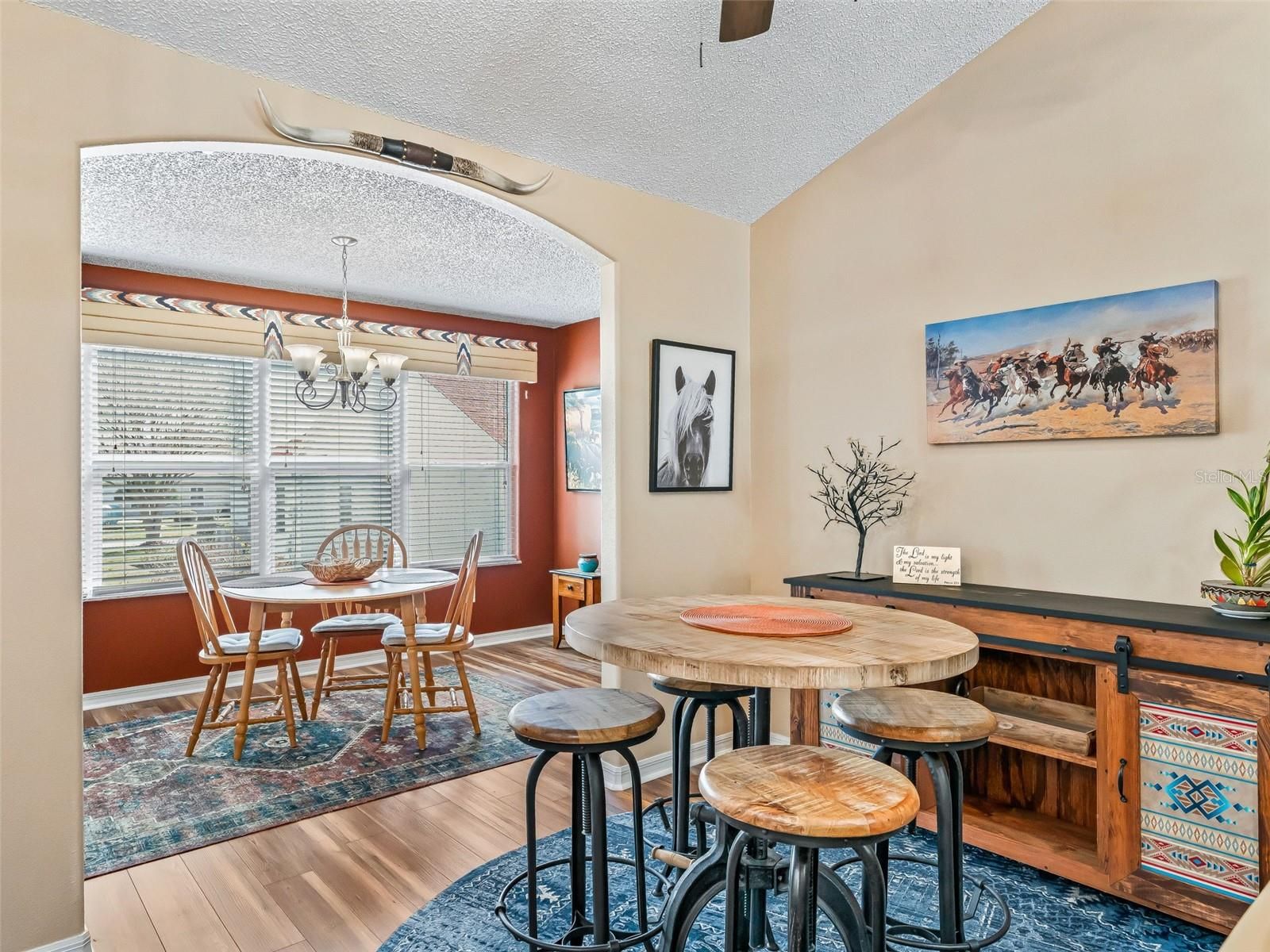 - Ceiling Fan(s), Living/Dining Room, Open Floorplan, Main Level Primary, Split Bedrooms, Vaulted Ceiling(s), Walk-In Closet(s), Window Treatments