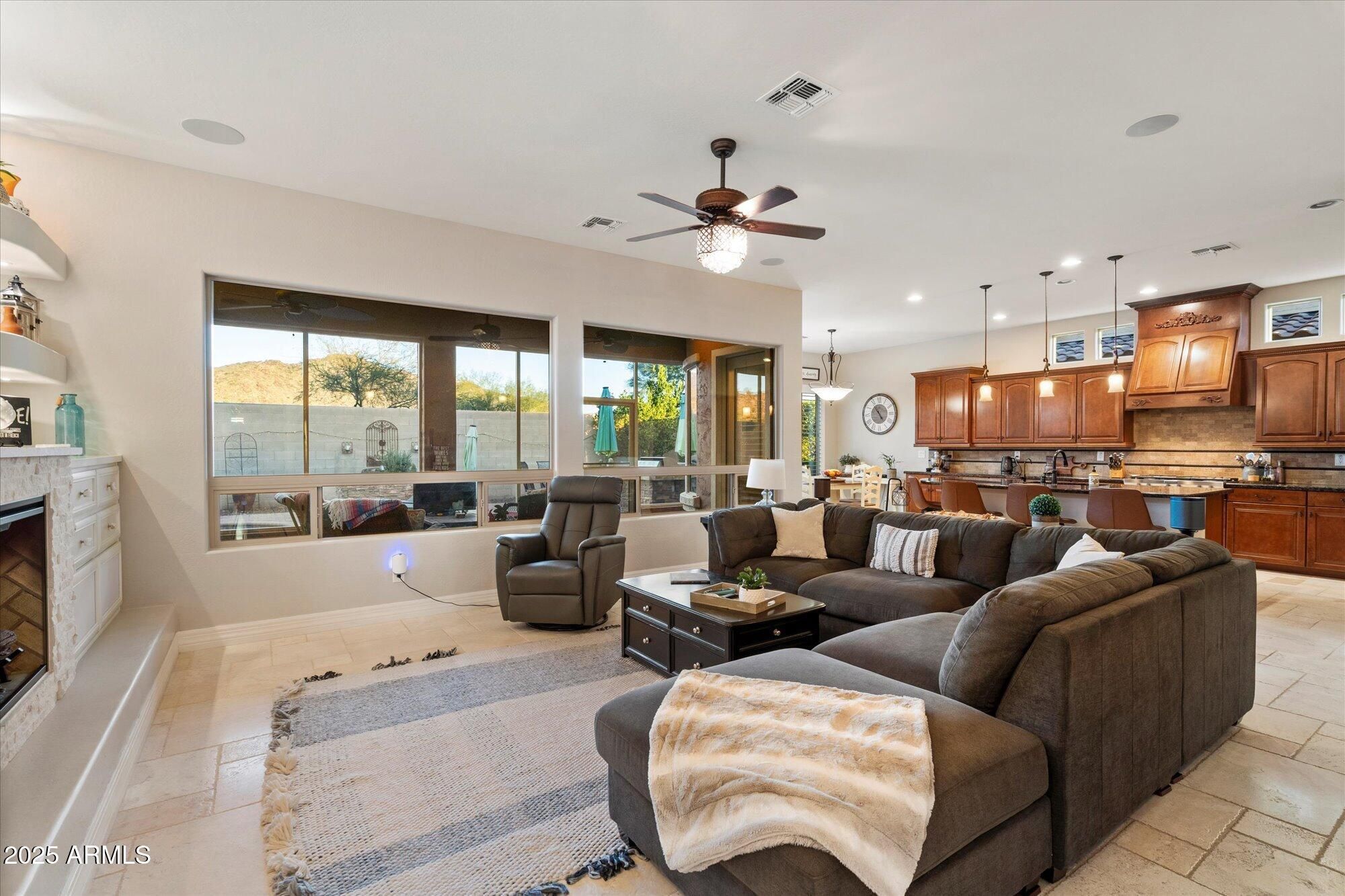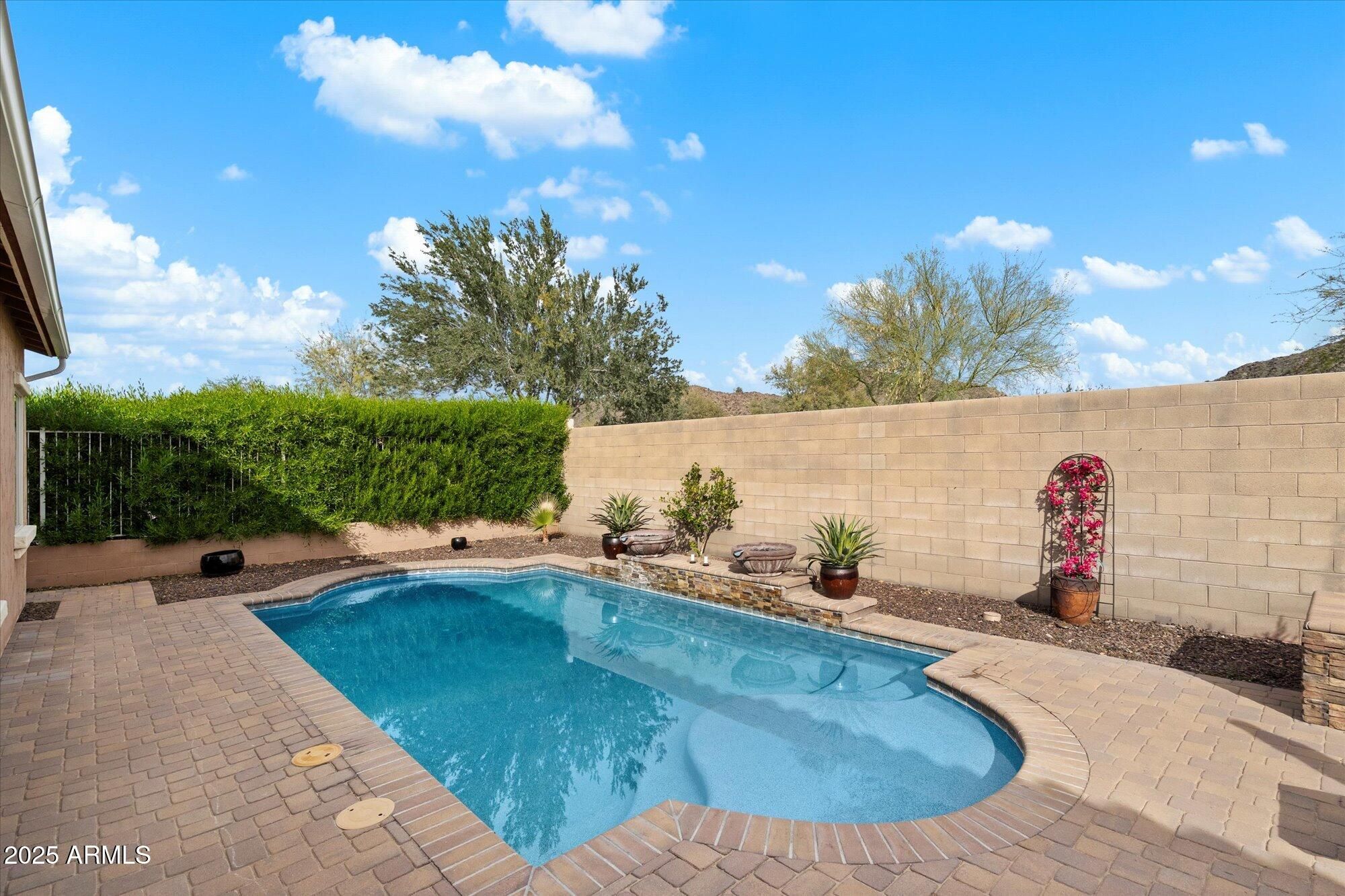 Amazing opportunity to own your own private retreat in the highly desirable 55+ community of CantaMia. This stunning home with private detached Casita, features 3 bedrooms, 3.5 baths and private heated pool. This is resort style living at it's finest. Enter through the home's custom gate into the private enclosed courtyard. Relax in front of the fireplace and enjoy relaxing sounds of the triple tiered water fountain. Additional lighting exists on the pergola roof which spans the courtyard. Courtyard provides private separate access to either the main home or Casita. Home has a chef inspired kitchen with matching granite countertops on the built in wine/beverage cooler, separate mini-bar area and trash compactor. The walk-in Pantry is just steps away. Enjoy the views of the mountains or private pool via the oversized windows in the living room or from the screened in sunroom. Outdoor cooking and dining facilities are at your fingertips. Enjoy the surround sound system installed in the living room and sunroom. There are ceiling fans throughout the home to include the screened-in patio. The Master Suite is a sanctuary in itself. Double vanities with seating area, jetted tub with mountain views, walk in shower with seating and a huge walk-in closet with custom cabinets. The garage has custom cherry wood cabinets and a epoxy floor. The village center offers amenities to extensive to list, making this 55+ gated community an absolute must to see in person to truly appreciate.