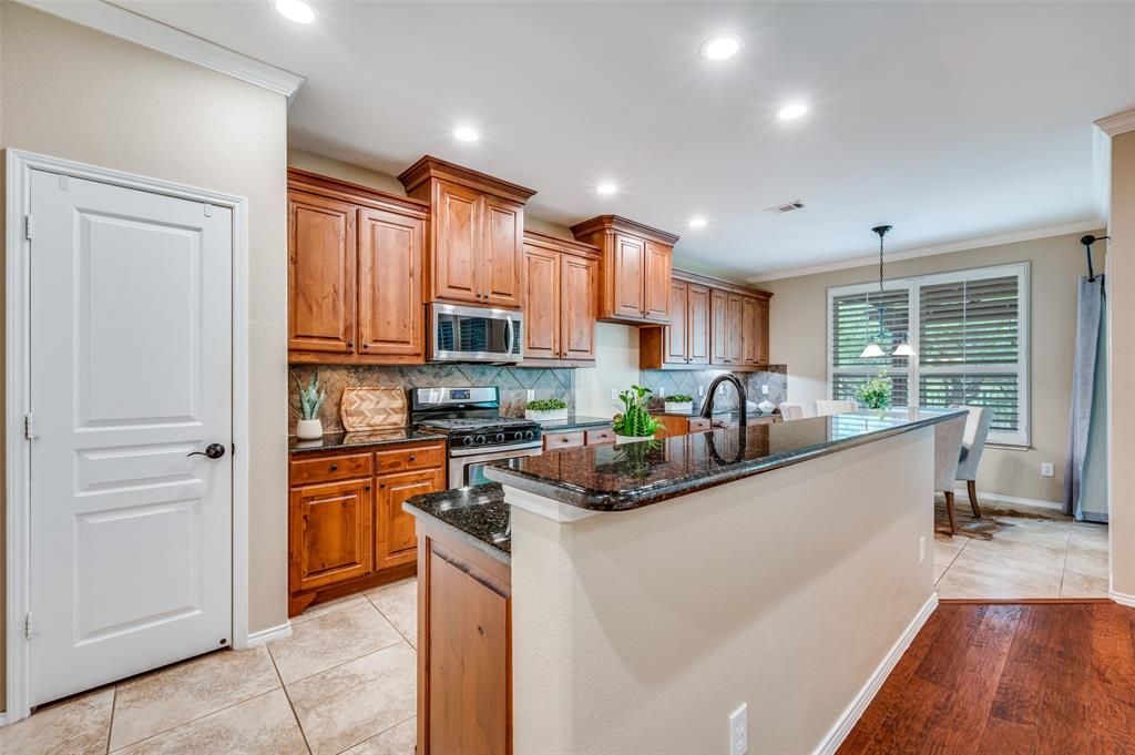 Welcome to 1698 Overwood Drive, a charming oasis gracefully nestled within the prestigious Frisco Lakes community, offering serene views of a premier golf course in Frisco, TX. This delightful 3-bedroom, 2-bathroom home invites you to experience a harmonious blend of elegance and functionality.Step inside to discover a spacious living area that seamlessly merges comfort with style. Throughout the home, custom plantation shutters add a touch of sophistication and allow for perfect lighting control. The adjacent kitchen is a culinary haven, featuring expansive granite countertops, a generously sized island ideal for meal prep or casual dining, and custom cabinetry that provides abundant storage. Its thoughtful design ensures that cooking and entertaining flow effortlessly.The primary suite is your personal retreat, complete with a custom walk-in closet system, dual vanities, a garden tub, and a walk-in shower, offering a spa-like ambiance. Two additional bedrooms and an office space with built-ins provide versatility to suit your lifestyle.Outside, a generous pergola sets the stage for alfresco dining or unwinding while overlooking the lush golf course. In the garage, metal storage racks offer added convenience. This home promises a lifestyle of refined elegance and relaxed enjoyment, complemented by the vibrant community amenities of Frisco Lakes.