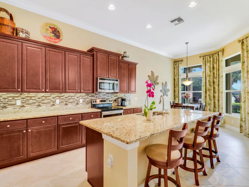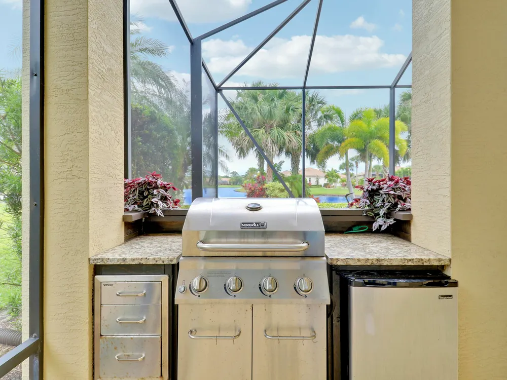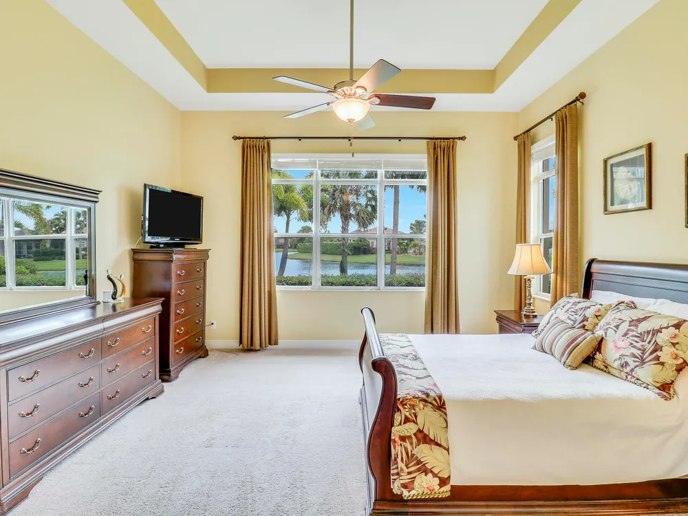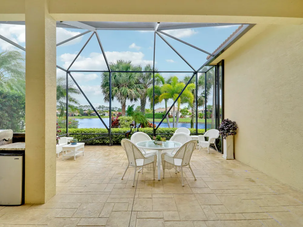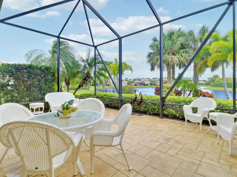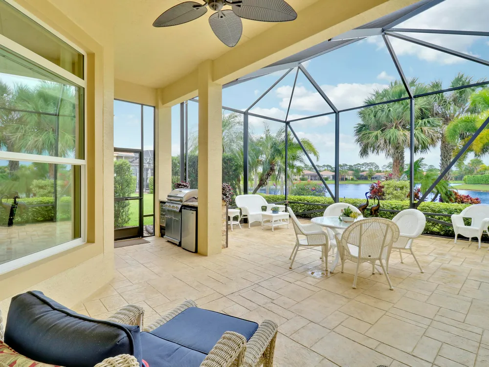 AMAZING LOT LOCATION on side street w/PEACEFUL LAKE VIEWS FRONT & BACK in the resort style community of PGA VERANO. This 3BR/2.5BA/2CG home has many upgrades t/o including neutral tile in main living areas, custom draperies, impact glass windows & doors, newer AC (2024) and spacious screened & expanded lanai overlooking the serene lake views! The kitchen features SS appliances, granite counters, butlers pantry, an abundance of cabinetry and a charming breakfast nook. Master suite overlooks the lake view, has dual closets, a spacious ensuite w/ dual vanities and a soaker tub & shower. Guest bedrooms have access to the hallway bathroom. The highlight of this property is the expanded, screened lanai w/ outdoor grill area! A perfect spot to enjoy your morning coffee or dine al fresco.