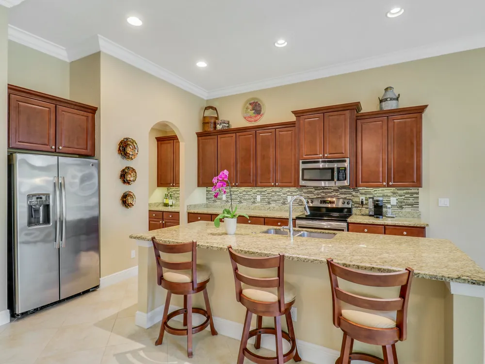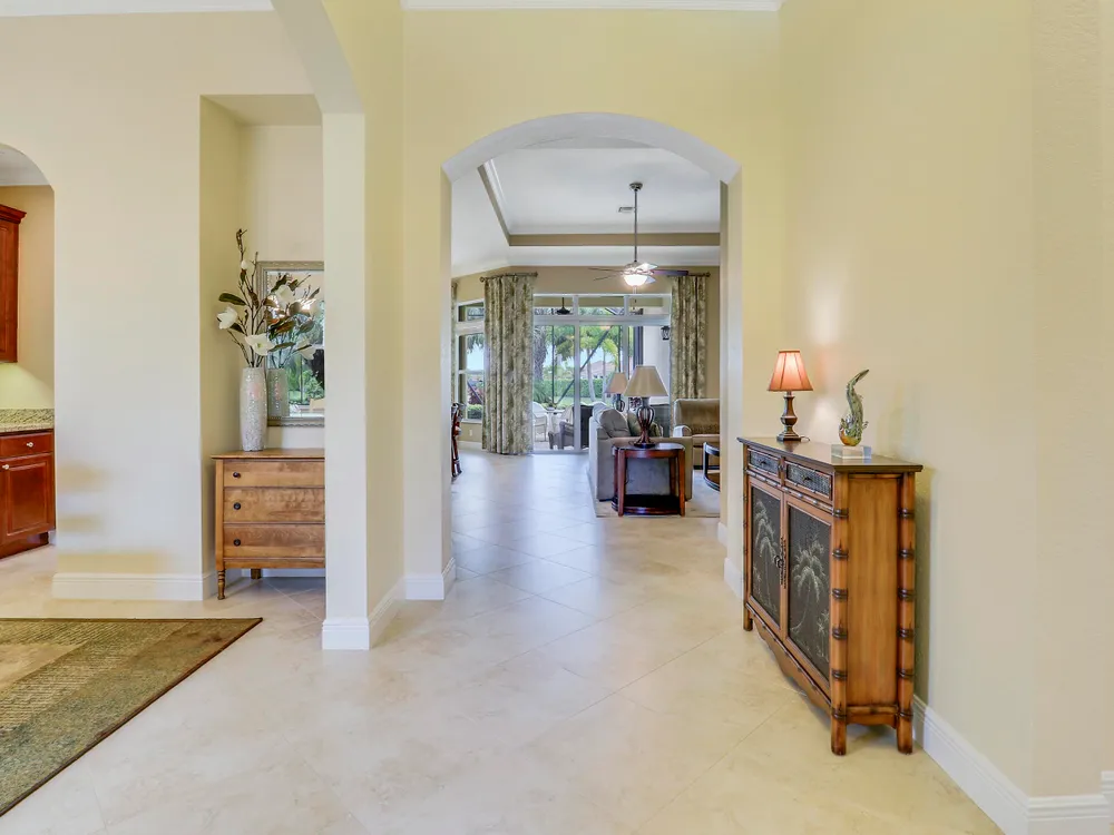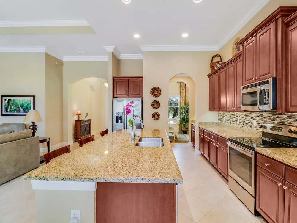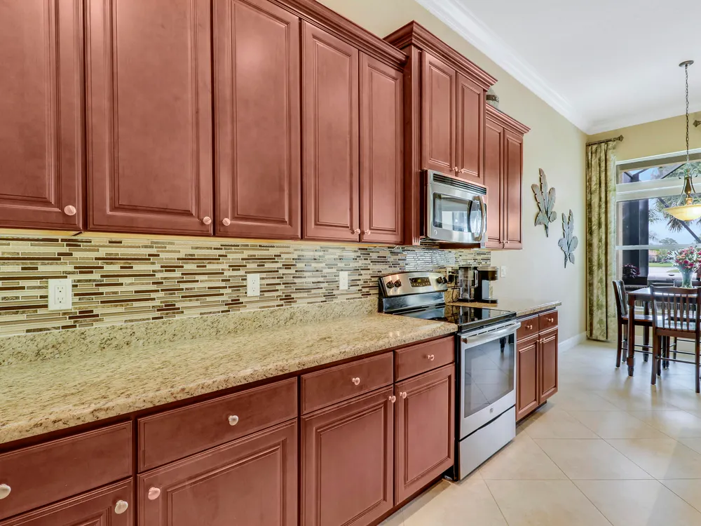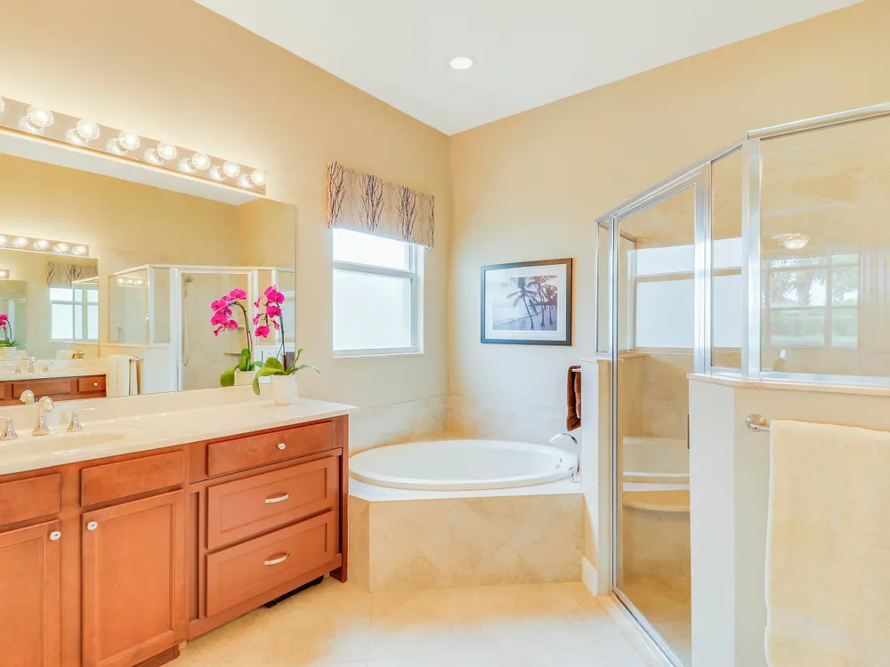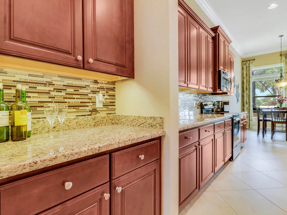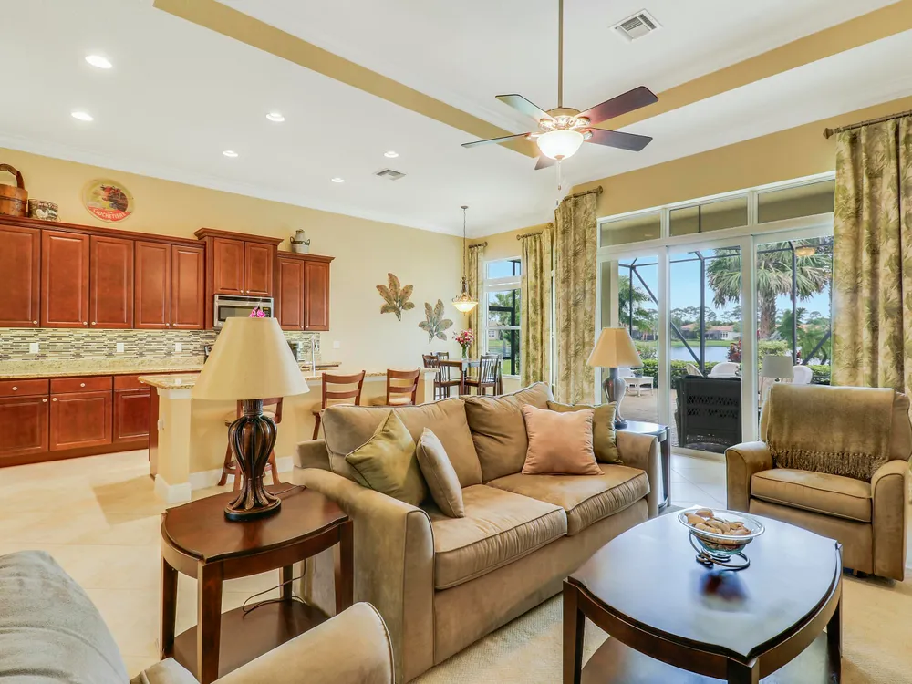 AMAZING LOT LOCATION on side street w/PEACEFUL LAKE VIEWS FRONT & BACK in the resort style community of PGA VERANO. This 3BR/2.5BA/2CG home has many upgrades t/o including neutral tile in main living areas, custom draperies, impact glass windows & doors, newer AC (2024) and spacious screened & expanded lanai overlooking the serene lake views! The kitchen features SS appliances, granite counters, butlers pantry, an abundance of cabinetry and a charming breakfast nook. Master suite overlooks the lake view, has dual closets, a spacious ensuite w/ dual vanities and a soaker tub & shower. Guest bedrooms have access to the hallway bathroom. The highlight of this property is the expanded, screened lanai w/ outdoor grill area! A perfect spot to enjoy your morning coffee or dine al fresco.