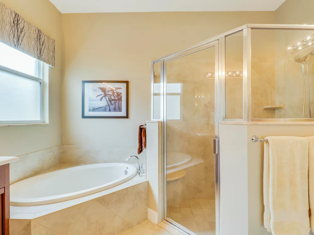 - Entry Level Living Area, Entrance Foyer, Pantry, Split Bedrooms, Walk-In Closet(s), Great Room, Breakfast Area, Separate/Formal Dining Room, Snack Bar, Dual Sinks, Primary Downstairs, Separate Shower, Bathtub