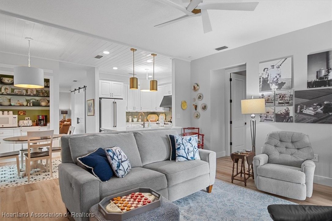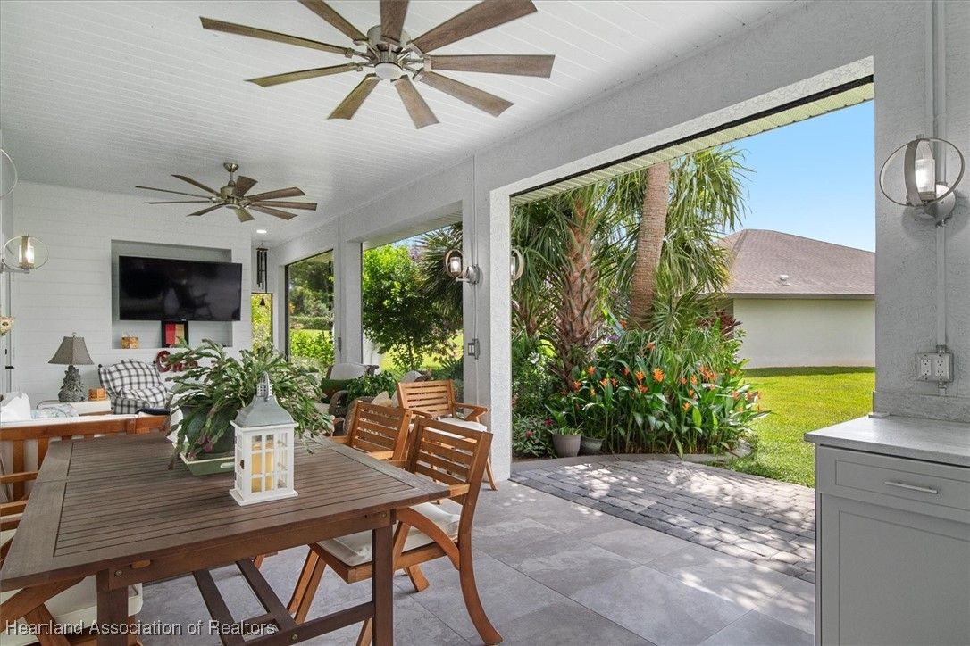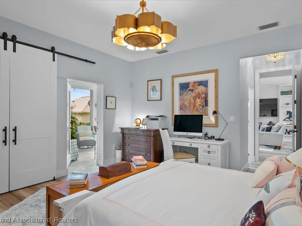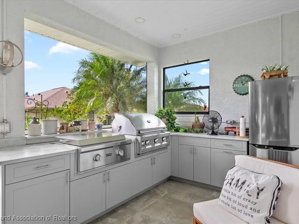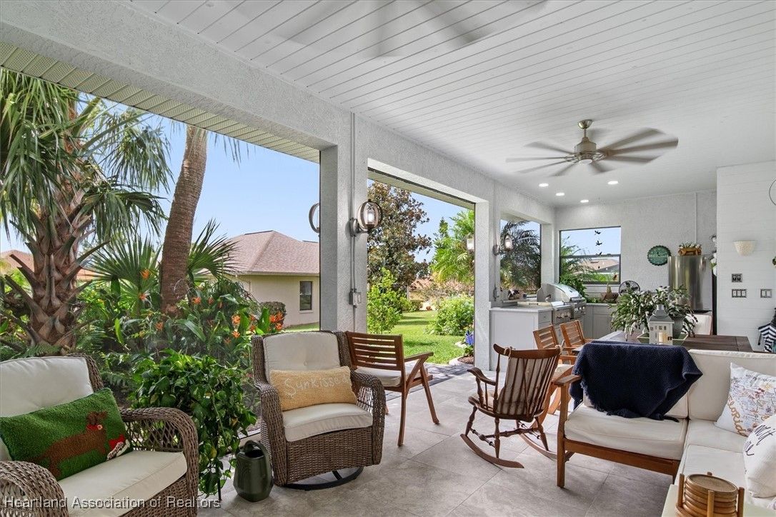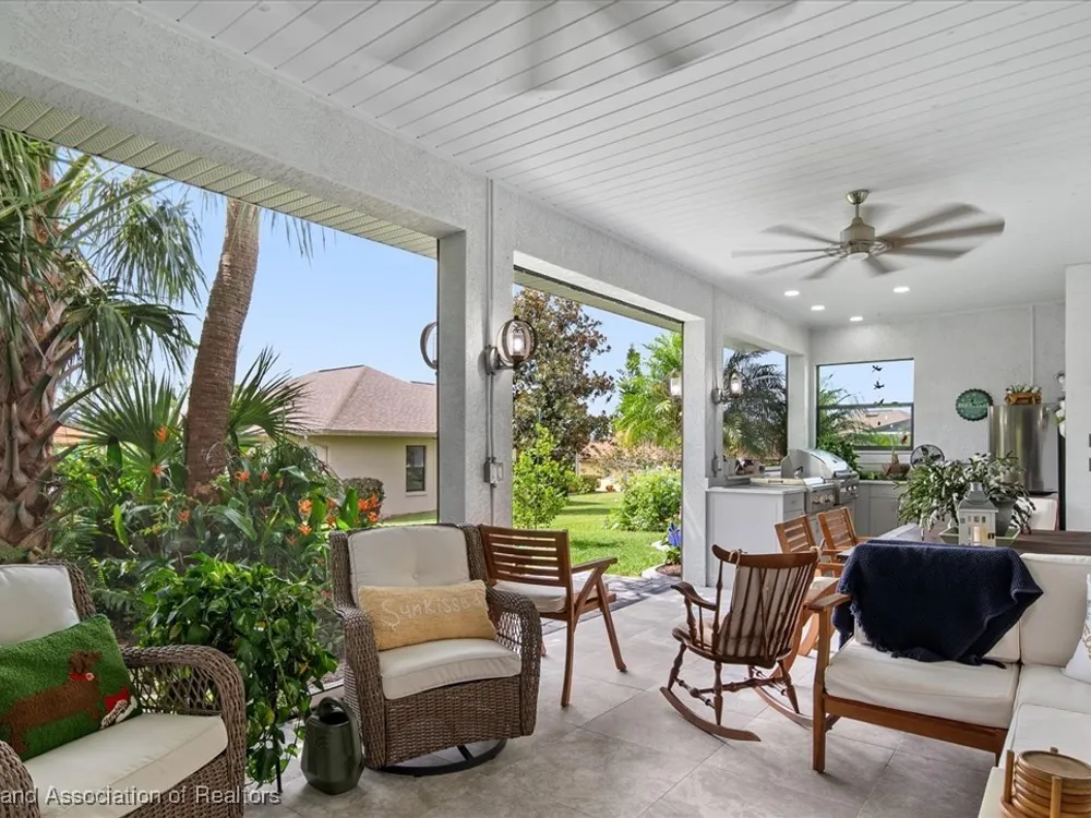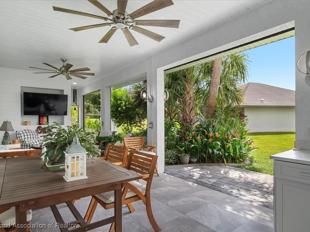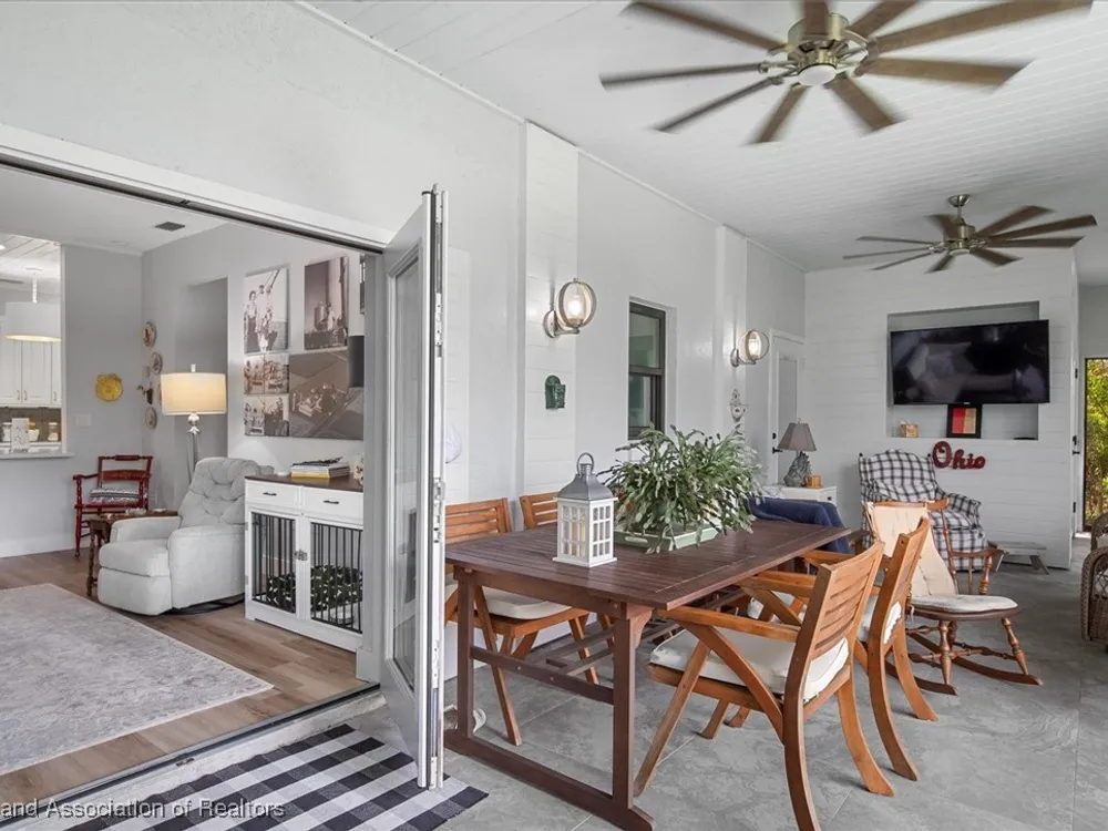 Where Classic Luxury Meets Serene Living Welcome to a captivating residence that blends timeless elegance with modern comfort. Meticulously maintained and thoughtfully upgraded, this home offers style, functionality, and energy efficiency in every detail. Step through the foyer into open living and dining areas featuring newly installed floors and windows that fill the space with natural light. The beautifully updated kitchen boasts upgraded appliances, a butler’s closet, and seamless flow into the inviting family room. From here, step onto the screened porch—complete with a well-designed outdoor kitchen, automated screens, and ample storage—perfect for year-round enjoyment. The home offers three versatile bedrooms off the dining area, including one with an en suite bath, plus a stylish guest bath. Each room could easily serve as a studio or office. The private master suite, located off the family room, features its own en suite bath and direct porch access. Recent updates include new flooring throughout most of the home, upgraded vanities and fixtures in two bathrooms, and a fully renovated third bath. Solar panels keep your monthly power bill under $40, and the garage features an automated screen in addition to the overhead door. With its array of thoughtful features and upgrades, this home is truly a must-see. Schedule your private showing and discover why this is more than just a house—it’s a lifestyle.