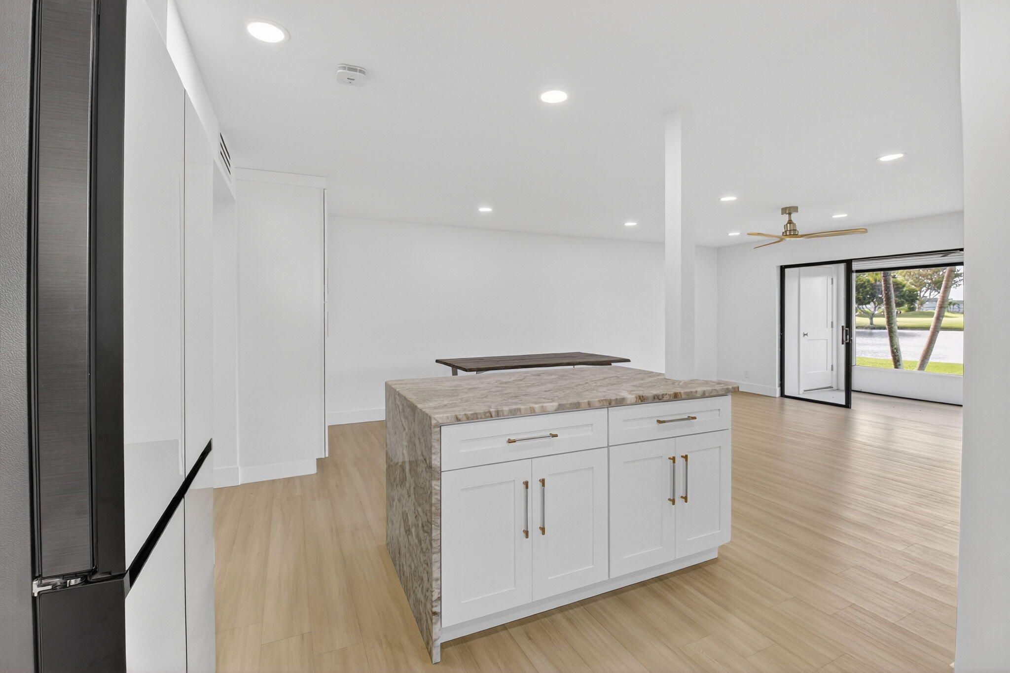 A very rare opportunity to own a first floor waterfront Isle of Capri A unit. One of the more secluded buildings in KP with the biggest units(most sf)This completely upgraded designer unit boasts an open concept with one of the largest waterfront views -that you can see from the moment you open your front door with bonus views and patio/lanai access from your primary bedroom.Lanai faces west, the sunsets are spectacular. Upgraded kitchen includes floor to ceiling pantries, quartz countertops and back splash, NEW appliances with pot filler and reverse osmosis water filtration system w/faucet.Upgraded bathrooms include custom floor to ceiling tile throughout, spectacular rainfall showers.Includes interior washer dryer.LED lighting throughout, new fans, doors and custom closets and includes extra storage on the patio. Newly Tiled Patio with two new Large fans. AC is being replaced 12/10, WH New, AC thermostat new.This unit is not like any other and will not last! SELLER OFFERING 6 MONTHS OF HOA PAYMENTS CREDITED TO BUYER AT CLOSING. For the golf enthusiast Kings Point in Delray Beach, FL, offers two public golf courses: the challenging 18-hole Kings Point Executive Course (designed by Robert Trent Jones Sr.) and the shorter, but still demanding, Kings Point Par-3 Course. The facility provides an inclusive experience for all skill levels with a Enjoy KP's resort-style living including a fully renovated multi million dollar clubhouse, 8 pools (2 indoor), pickleball, tennis, basketball courts, 2 fitness centers,1200+ seat theater, billiards, cafés, salon, ping pong, wood shop and every club you can think of to join! Located just minutes from Delray and Boca Raton beaches, art and nightlife!