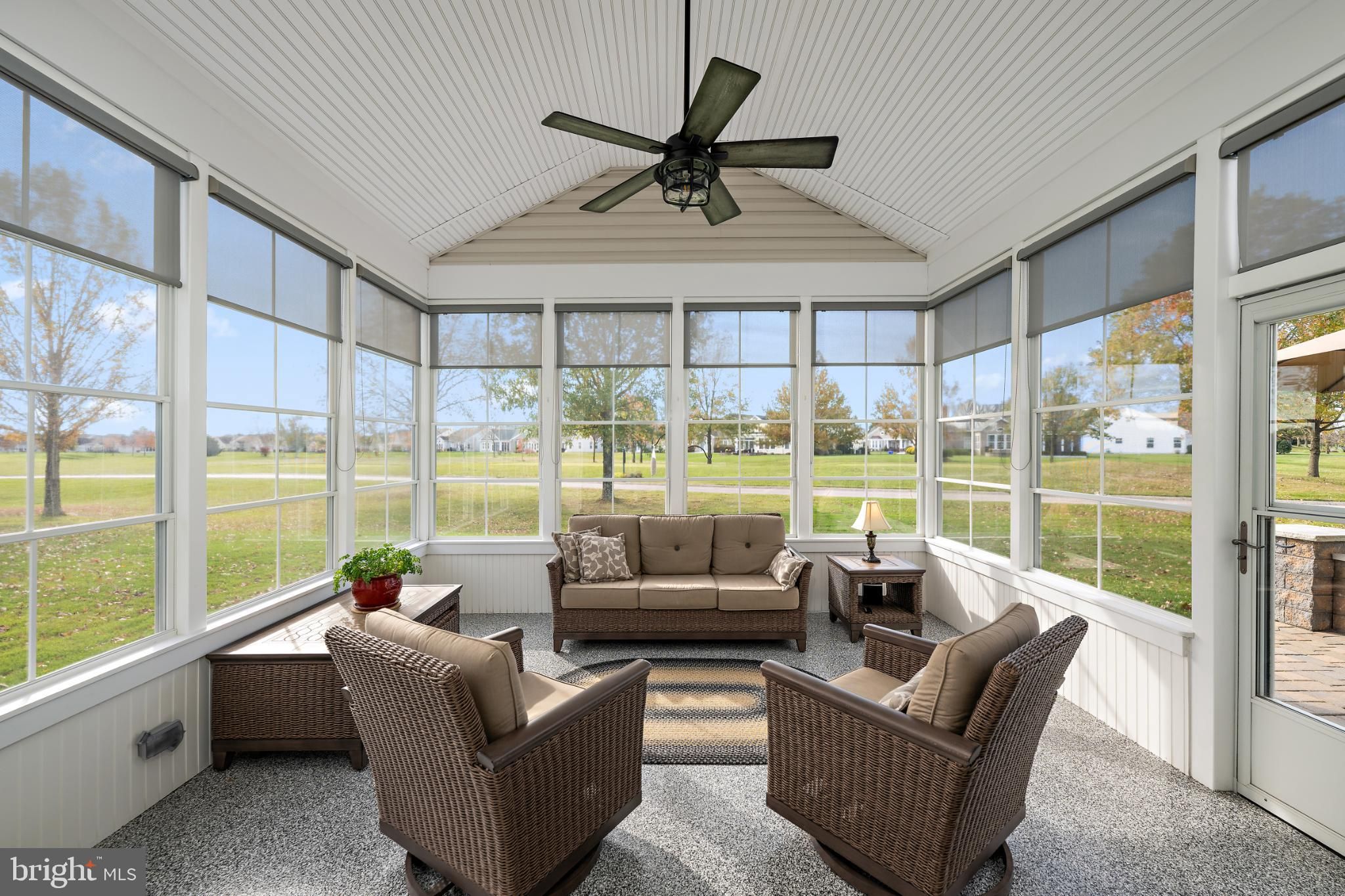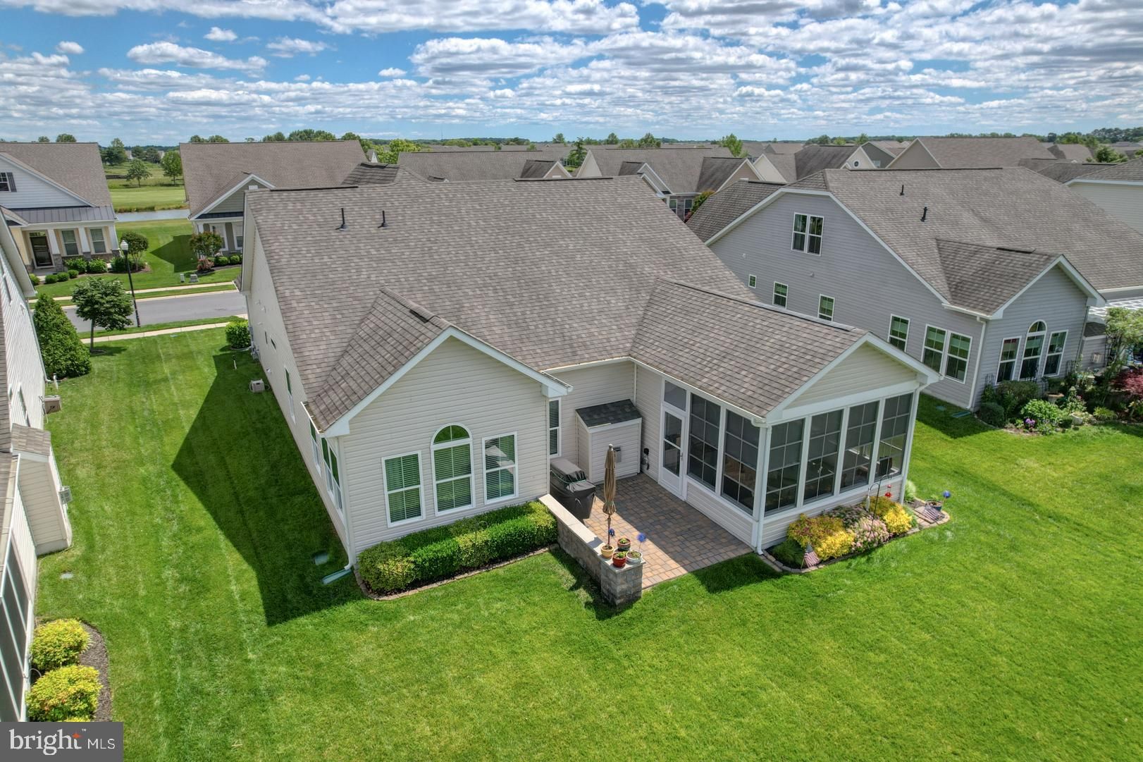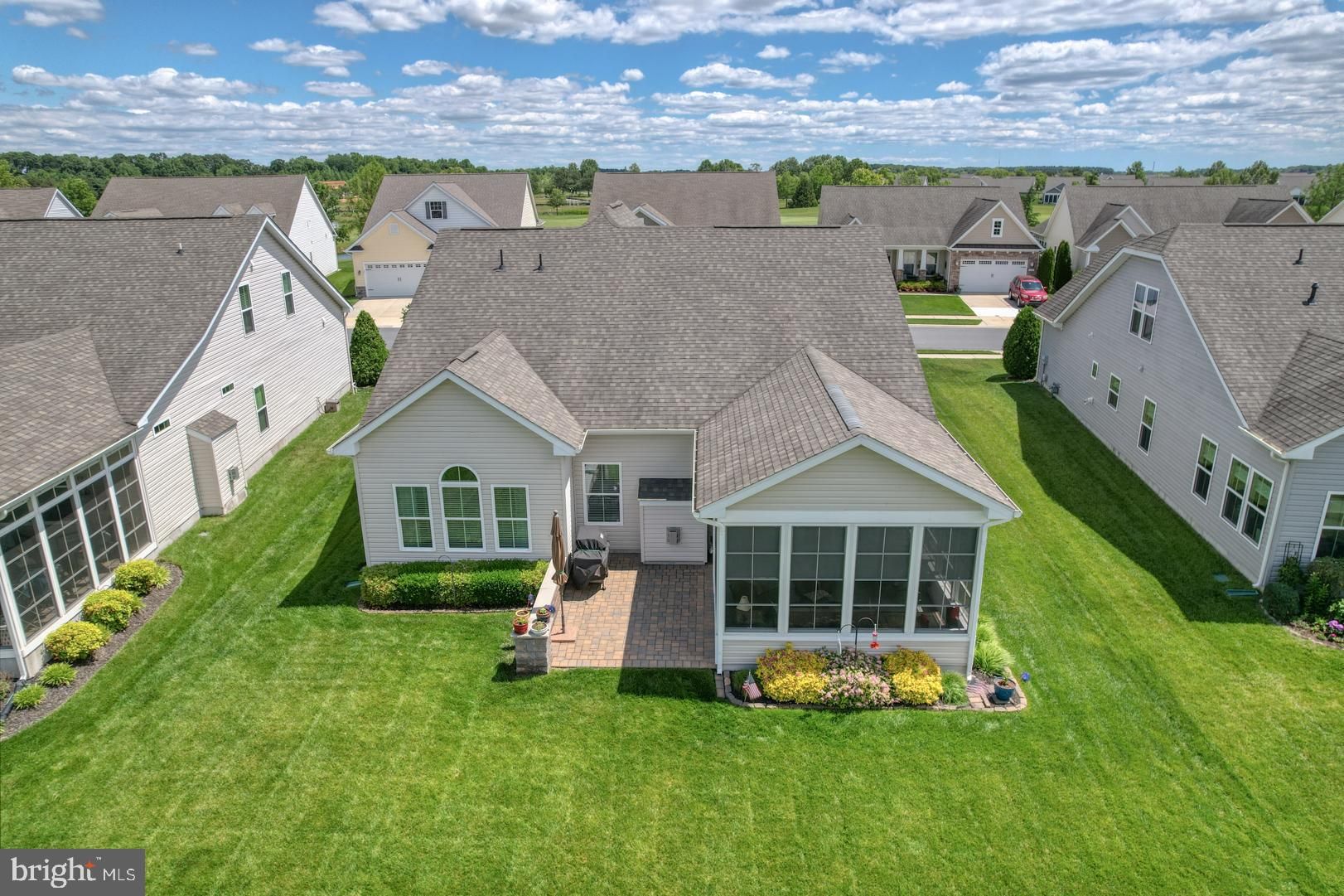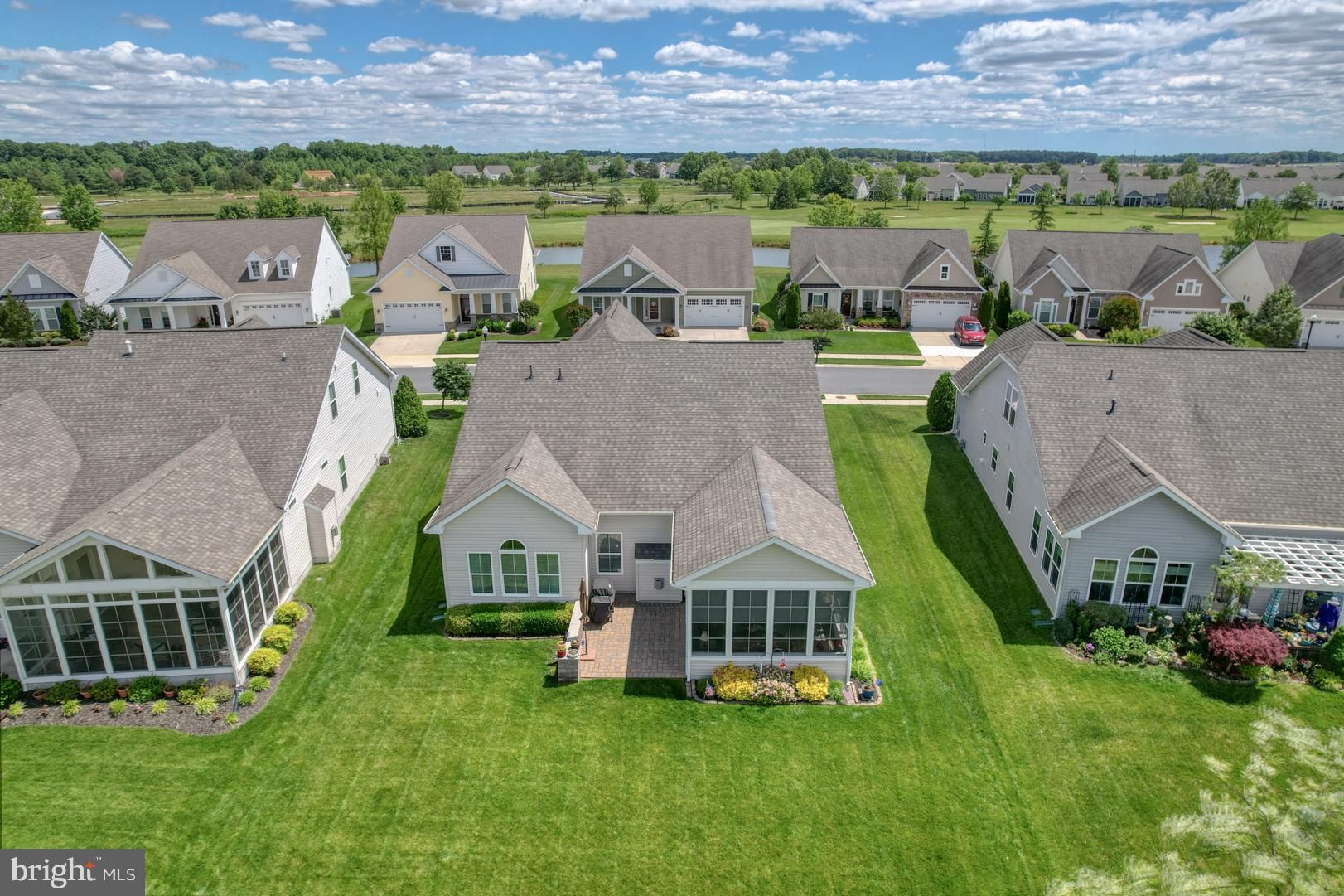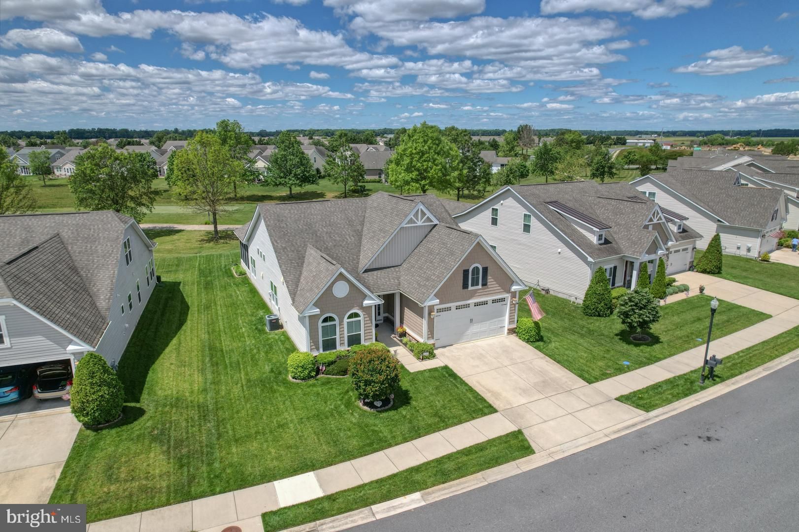 Welcome to 17 Champions Drive, a beautifully appointed 2-bedroom, with additional Flex room, 2-bath home offering effortless one-level living in the heart of the premier 55+ community of Heritage Shores. Perfectly positioned to overlook the 17th hole of the championship golf course, this home delivers a rare combination of comfort, elegance, and sweeping views that define resort-style living. From the moment you arrive, the home’s inviting curb appeal and manicured landscaping reflect the pride of ownership found throughout. Inside, warm hardwood floors, tray ceiling, and a soft neutral palette create an open, airy atmosphere that feels both welcoming and refined. The main living area is anchored by a cozy gas fireplace, making it the perfect place to unwind or gather with friends and family. The kitchen is thoughtfully designed for both everyday living and entertaining, featuring granite countertops, stainless steel appliances, a gas cooktop, double wall ovens, abundant cabinetry, and a generous center island with seating. The open flow into the dining and living areas allows you to host with ease while maintaining a relaxed, comfortable feel. One of the home’s most captivating features is the three-season room, surrounded by windows and filled with natural light and epoxy floor for easy care. This space offers peaceful, year-round enjoyment and showcases beautiful golf course views — an ideal setting for morning coffee, afternoon reading, or evening sunsets. Just outside, the paver patio provides a seamless transition to outdoor living, perfect for grilling or simply enjoying the open green space beyond. The primary suite is a private retreat, offering generous proportions, a vaulted ceiling, and a spa-inspired en suite bath with dual vanities, a walk-in shower, and excellent storage. Two additional bedrooms provide flexibility for guests, hobbies, or a home office, all served by a well-appointed full bath. Additional highlights include a dedicated laundry room with utility sink, exceptional closet and storage space throughout, and a spotless finished garage with epoxy flooring and overhead storage, underscoring the meticulous care given to this home. Beyond the home itself, Heritage Shores offers a lifestyle that few communities can match. Residents enjoy a championship Arthur Hills–designed golf course, an expansive clubhouse with dining, ballroom, game rooms, and library, a fully equipped fitness center, indoor and outdoor saltwater pools, pickleball, tennis, bocce, miles of walking trails, and a full calendar of clubs, events, and social activities. Whether you’re seeking an active schedule or a more relaxed pace, the community supports both — all just minutes from shopping, dining, and Delaware’s beautiful beaches. 17 Champions Drive is more than a home — it��s an opportunity to enjoy refined living, scenic surroundings, and a vibrant community, all at your own pace.