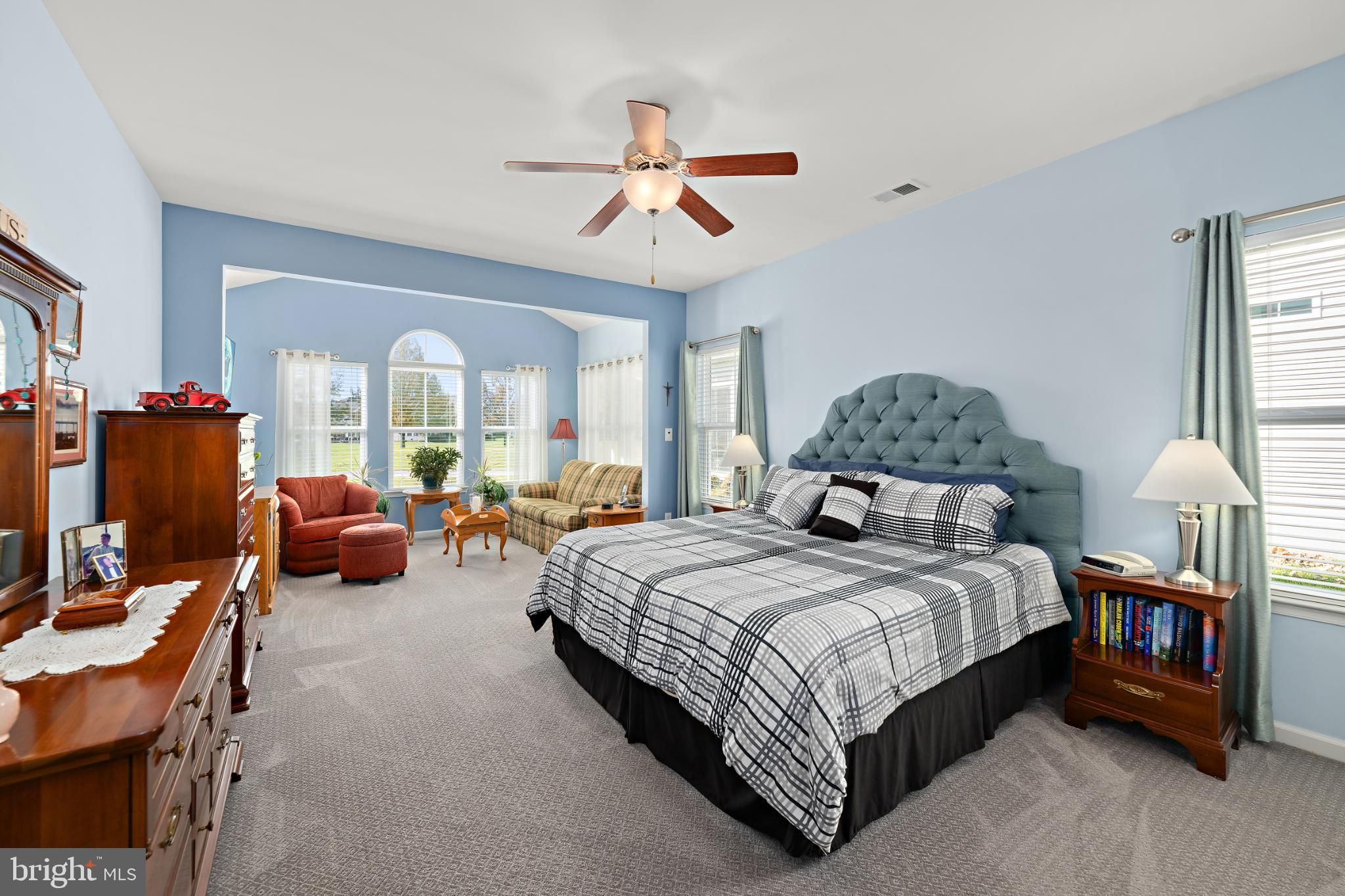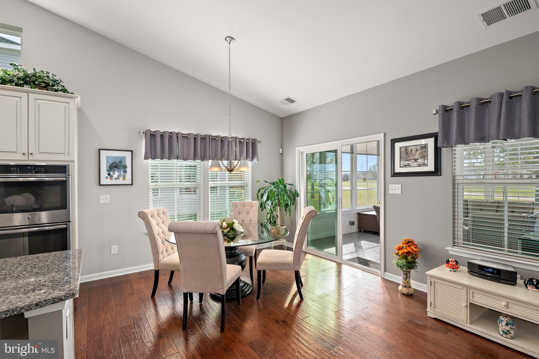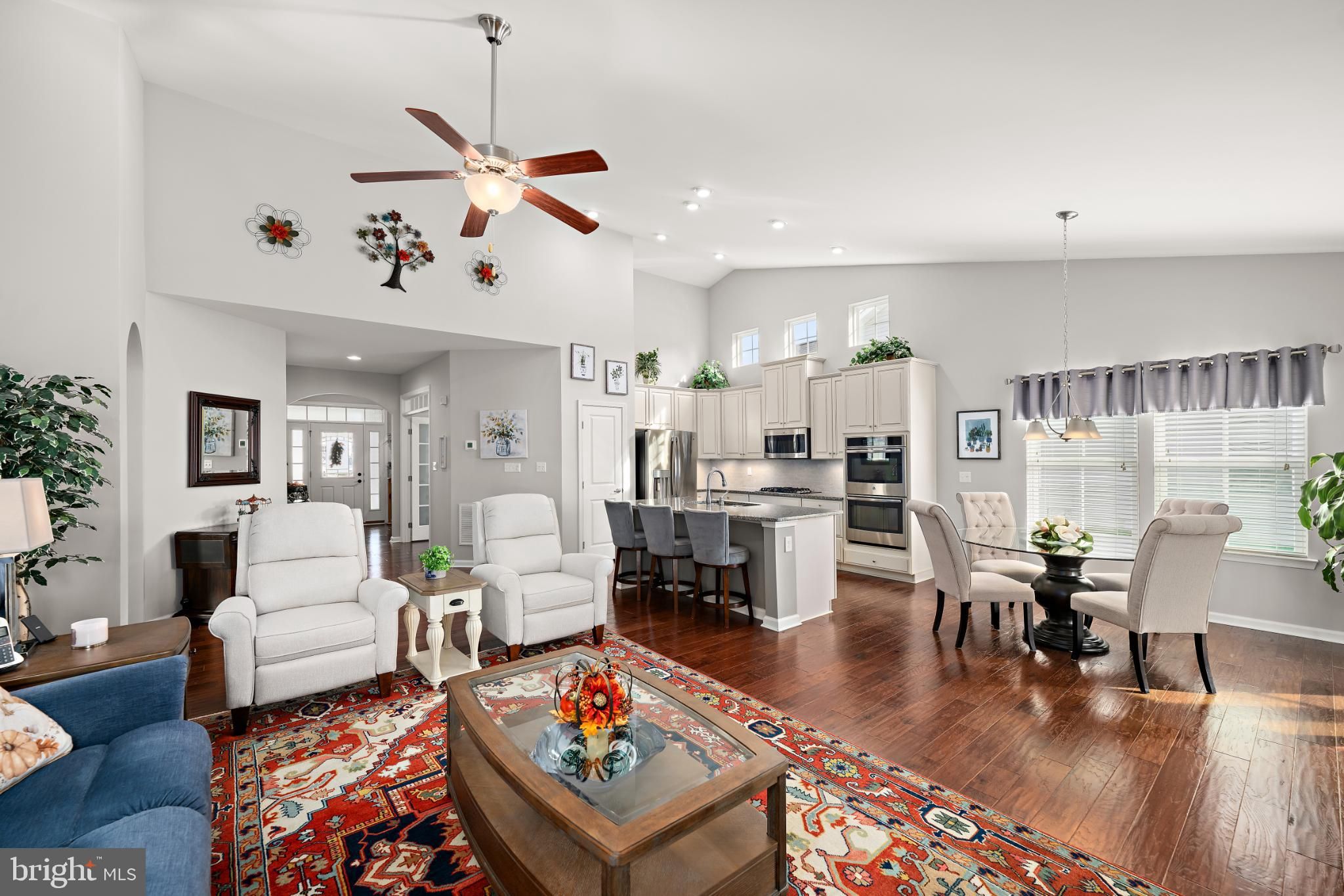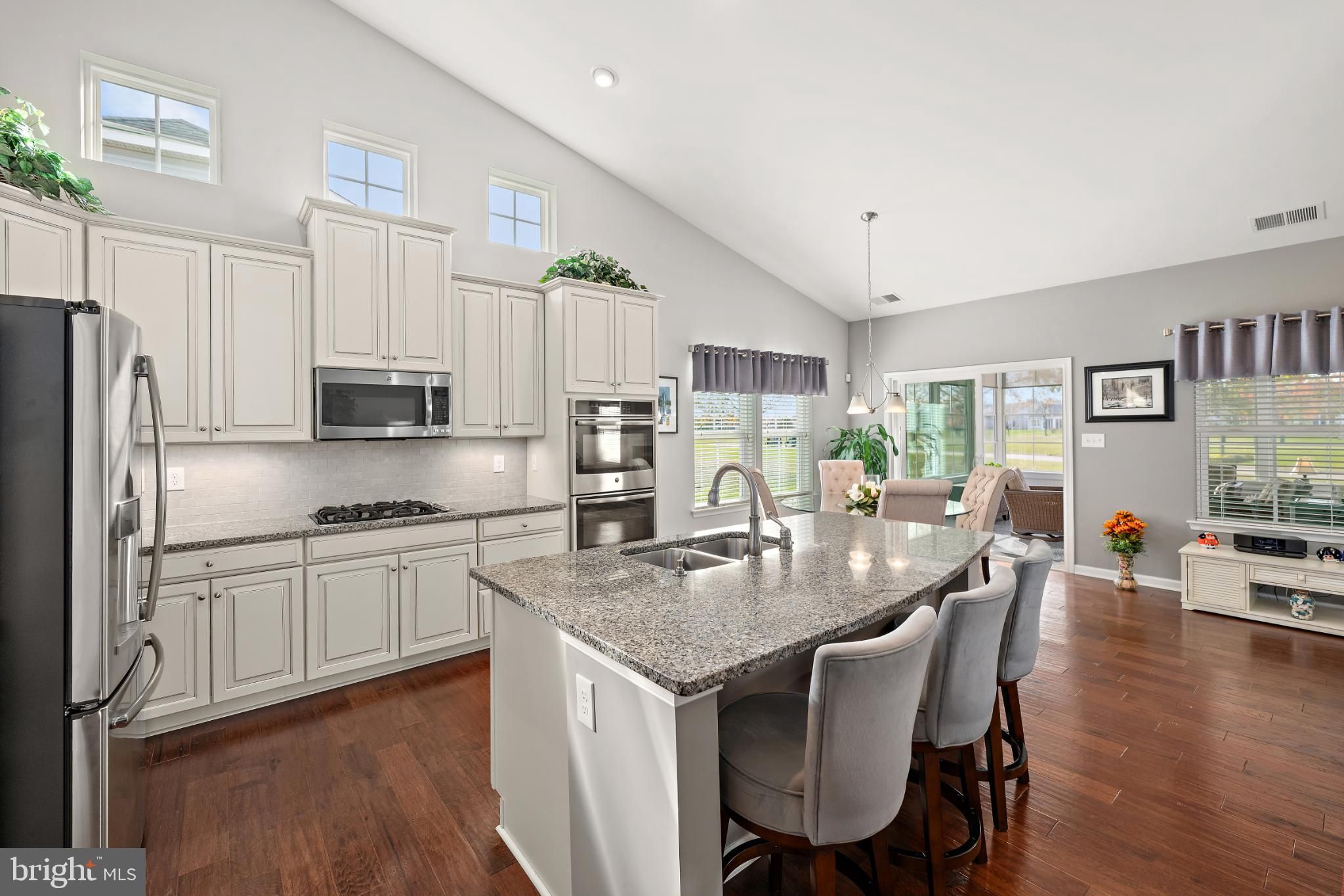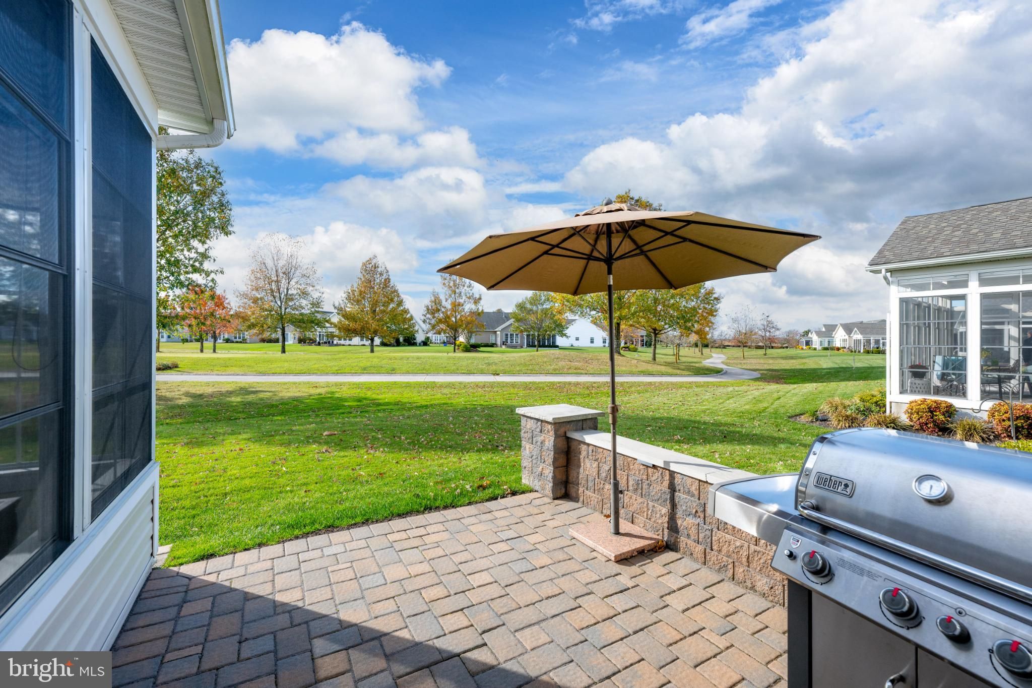 Welcome to 17 Champions Drive, a beautifully appointed 2-bedroom, with additional Flex room, 2-bath home offering effortless one-level living in the heart of the premier 55+ community of Heritage Shores. Perfectly positioned to overlook the 17th hole of the championship golf course, this home delivers a rare combination of comfort, elegance, and sweeping views that define resort-style living. From the moment you arrive, the home’s inviting curb appeal and manicured landscaping reflect the pride of ownership found throughout. Inside, warm hardwood floors, tray ceiling, and a soft neutral palette create an open, airy atmosphere that feels both welcoming and refined. The main living area is anchored by a cozy gas fireplace, making it the perfect place to unwind or gather with friends and family. The kitchen is thoughtfully designed for both everyday living and entertaining, featuring granite countertops, stainless steel appliances, a gas cooktop, double wall ovens, abundant cabinetry, and a generous center island with seating. The open flow into the dining and living areas allows you to host with ease while maintaining a relaxed, comfortable feel. One of the home’s most captivating features is the three-season room, surrounded by windows and filled with natural light and epoxy floor for easy care. This space offers peaceful, year-round enjoyment and showcases beautiful golf course views — an ideal setting for morning coffee, afternoon reading, or evening sunsets. Just outside, the paver patio provides a seamless transition to outdoor living, perfect for grilling or simply enjoying the open green space beyond. The primary suite is a private retreat, offering generous proportions, a vaulted ceiling, and a spa-inspired en suite bath with dual vanities, a walk-in shower, and excellent storage. Two additional bedrooms provide flexibility for guests, hobbies, or a home office, all served by a well-appointed full bath. Additional highlights include a dedicated laundry room with utility sink, exceptional closet and storage space throughout, and a spotless finished garage with epoxy flooring and overhead storage, underscoring the meticulous care given to this home. Beyond the home itself, Heritage Shores offers a lifestyle that few communities can match. Residents enjoy a championship Arthur Hills–designed golf course, an expansive clubhouse with dining, ballroom, game rooms, and library, a fully equipped fitness center, indoor and outdoor saltwater pools, pickleball, tennis, bocce, miles of walking trails, and a full calendar of clubs, events, and social activities. Whether you’re seeking an active schedule or a more relaxed pace, the community supports both — all just minutes from shopping, dining, and Delaware’s beautiful beaches. 17 Champions Drive is more than a home — it��s an opportunity to enjoy refined living, scenic surroundings, and a vibrant community, all at your own pace.