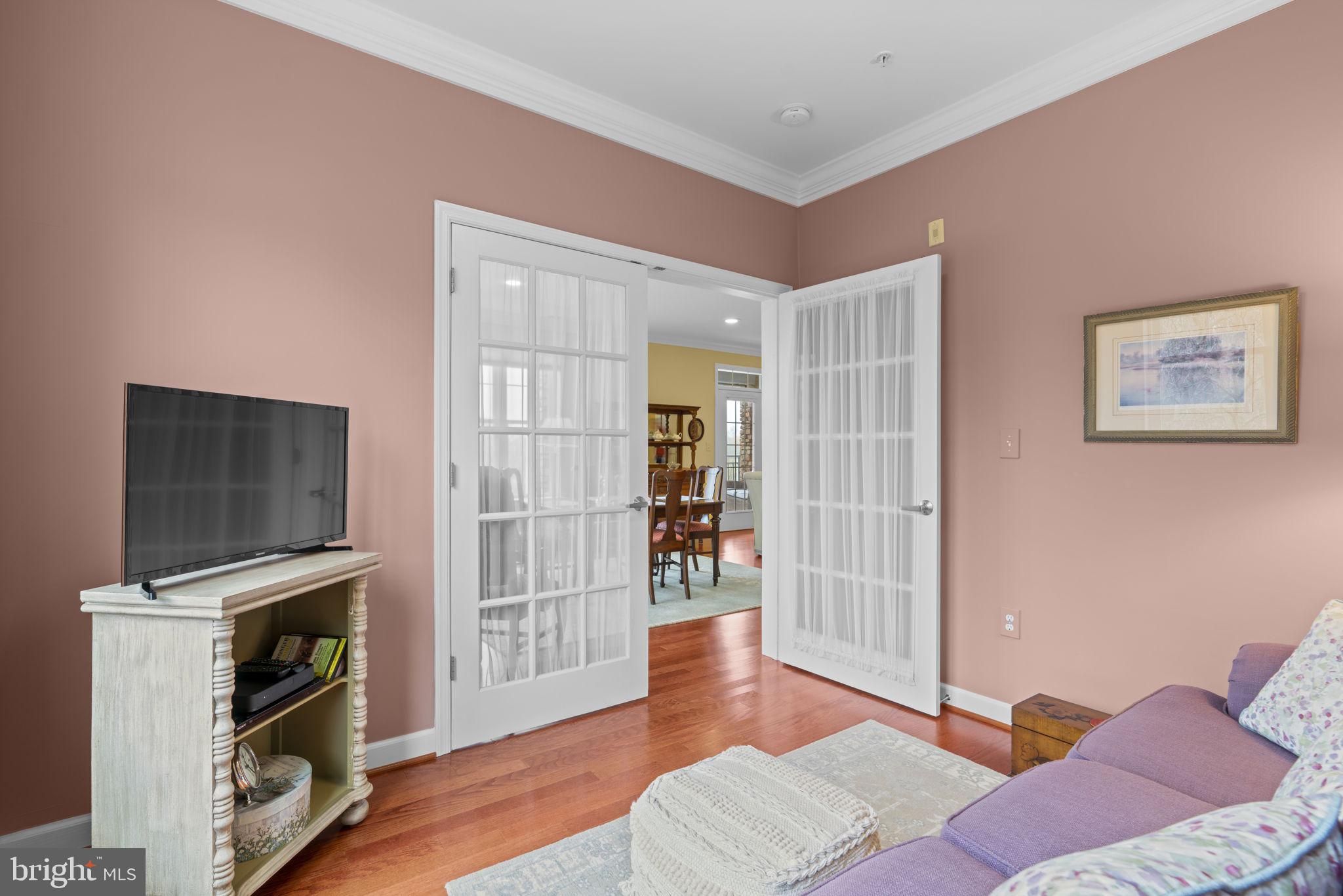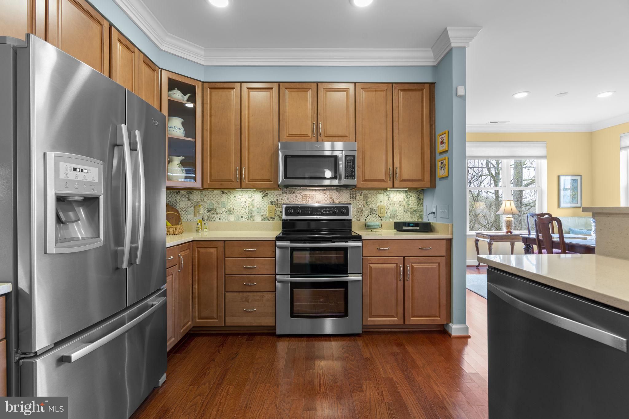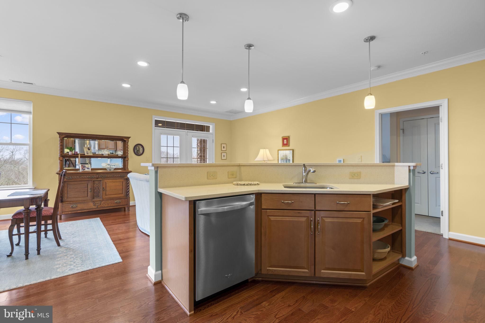 Welcome to 17 Clay Lodge Lane #304, a beautifully maintained condo located in the desirable 55+ community of Patapsco Overlook. Situated on the third floor, this home offers the perfect combination of comfort, convenience, and low-maintenance living, all within an active and welcoming community setting. Inside, you’ll find a thoughtfully designed one-level layout featuring an open-concept kitchen, living room, and dining area—ideal for both everyday living and entertaining. The kitchen is well-appointed with stainless steel appliances, including a French door refrigerator and double oven range, along with quartz countertops, a mosaic tile backsplash, and abundant cabinet space to keep everything organized. The main living area features engineered hardwood flooring, recessed lighting, and crown molding, creating a warm and inviting atmosphere. Just off the dining room, French doors lead to a versatile den that can easily function as a home office, reading room, or hobby space. The spacious primary suite offers a comfortable retreat, complete with plush carpeting, a large walk-in closet, and three additional closets—providing exceptional storage options. The attached primary bathroom features a dual vanity, a tub/shower combination, and a separate stall shower for added convenience. A second bedroom and a full hall bathroom with a stall shower offer comfortable accommodations for guests. Step outside through French doors to your private balcony, where you can unwind while enjoying peaceful tree-lined views and beautiful sunsets in the evenings. Additional conveniences include an in-unit laundry closet, a dedicated one-car garage, and a separate storage unit. Residents of Patapsco Overlook enjoy access to a shared clubhouse with an exercise room, as well as an active condo association that fosters a connected community. Ideally located, this home offers easy access to both Catonsville and Ellicott City, where you’ll find a variety of nearby dining, shopping, and entertainment options. If you’re seeking easy living with thoughtful features and a strong sense of community, this well-cared-for condo is ready to welcome you home.