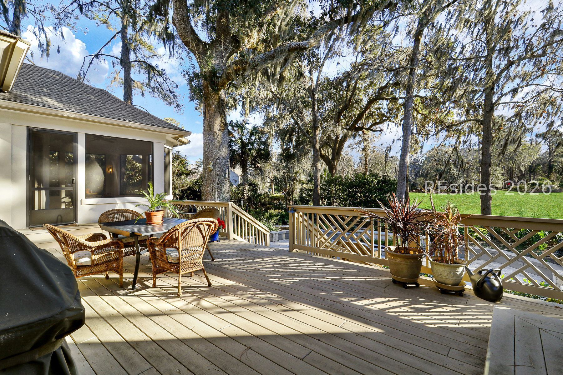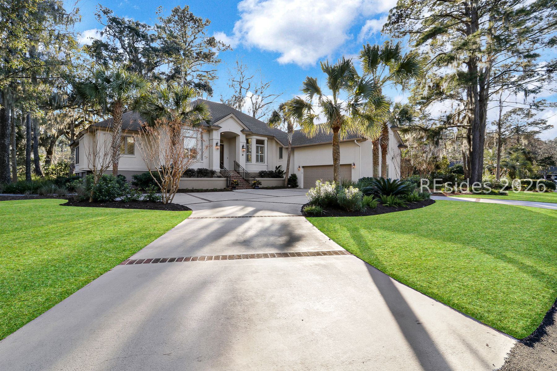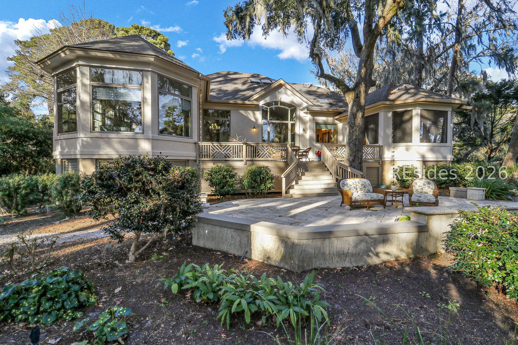 Enjoy serene golf course living with sweeping views of the 7th green in the Country Club of Hilton Head. This light-filled 4BR, 4.5BA home features large windows, Brazilian cherry flooring, custom window treatments, and an open layout ideal for everyday living and entertaining.Recent updates include a 2023 roof, interior and exterior paint (2023-2024), induction cooktop (2023), new LVP flooring in the family room, updated thermostats, spray-foam insulation, water heater (2023), Sentricon system, landscape lighting, and a redesigned outdoor patio (2024).The kitchen offers granite countertops, kraftmaid cherry cabinetry, premium appliances, and a large walk-in pantry, opening to the family room with marble fireplace and golf views. The owner's suite features a spa-style bath and screened porch, while three guest ensuites provide comfort and privacy. Outdoor living includes a deck, stone patio with gas firepit, and beautifully landscaped grounds.This thoughtfully updated golf-course home offers comfort, style, and exceptional views-an ideal opportunity to start enjoying the Low Country lifestyle today!