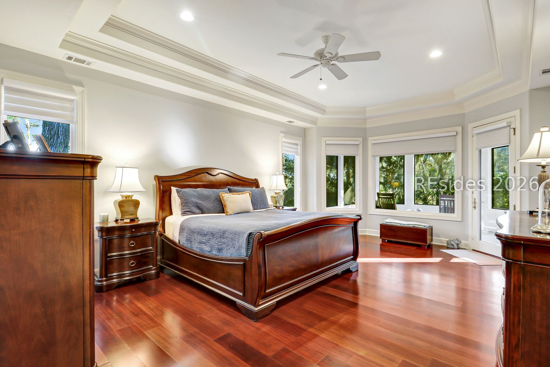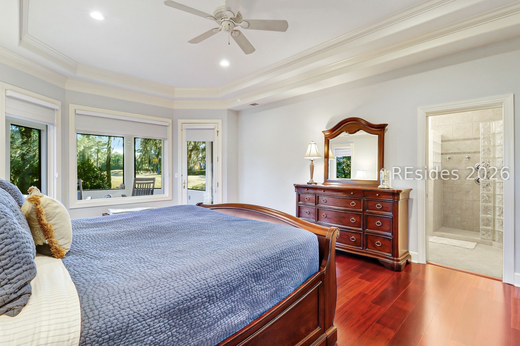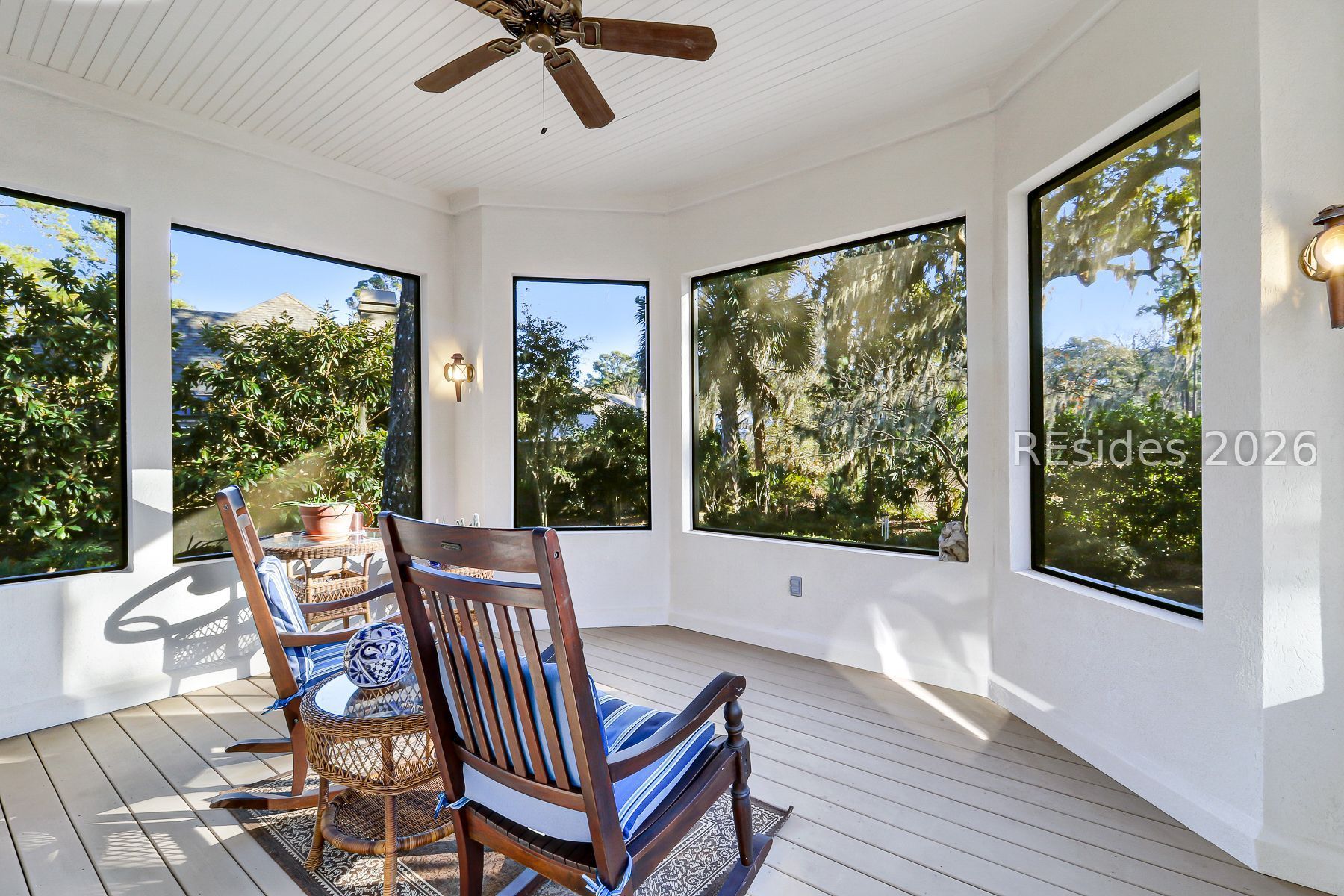 Enjoy serene golf course living with sweeping views of the 7th green in the Country Club of Hilton Head. This light-filled 4BR, 4.5BA home features large windows, Brazilian cherry flooring, custom window treatments, and an open layout ideal for everyday living and entertaining.Recent updates include a 2023 roof, interior and exterior paint (2023-2024), induction cooktop (2023), new LVP flooring in the family room, updated thermostats, spray-foam insulation, water heater (2023), Sentricon system, landscape lighting, and a redesigned outdoor patio (2024).The kitchen offers granite countertops, kraftmaid cherry cabinetry, premium appliances, and a large walk-in pantry, opening to the family room with marble fireplace and golf views. The owner's suite features a spa-style bath and screened porch, while three guest ensuites provide comfort and privacy. Outdoor living includes a deck, stone patio with gas firepit, and beautifully landscaped grounds.This thoughtfully updated golf-course home offers comfort, style, and exceptional views-an ideal opportunity to start enjoying the Low Country lifestyle today!