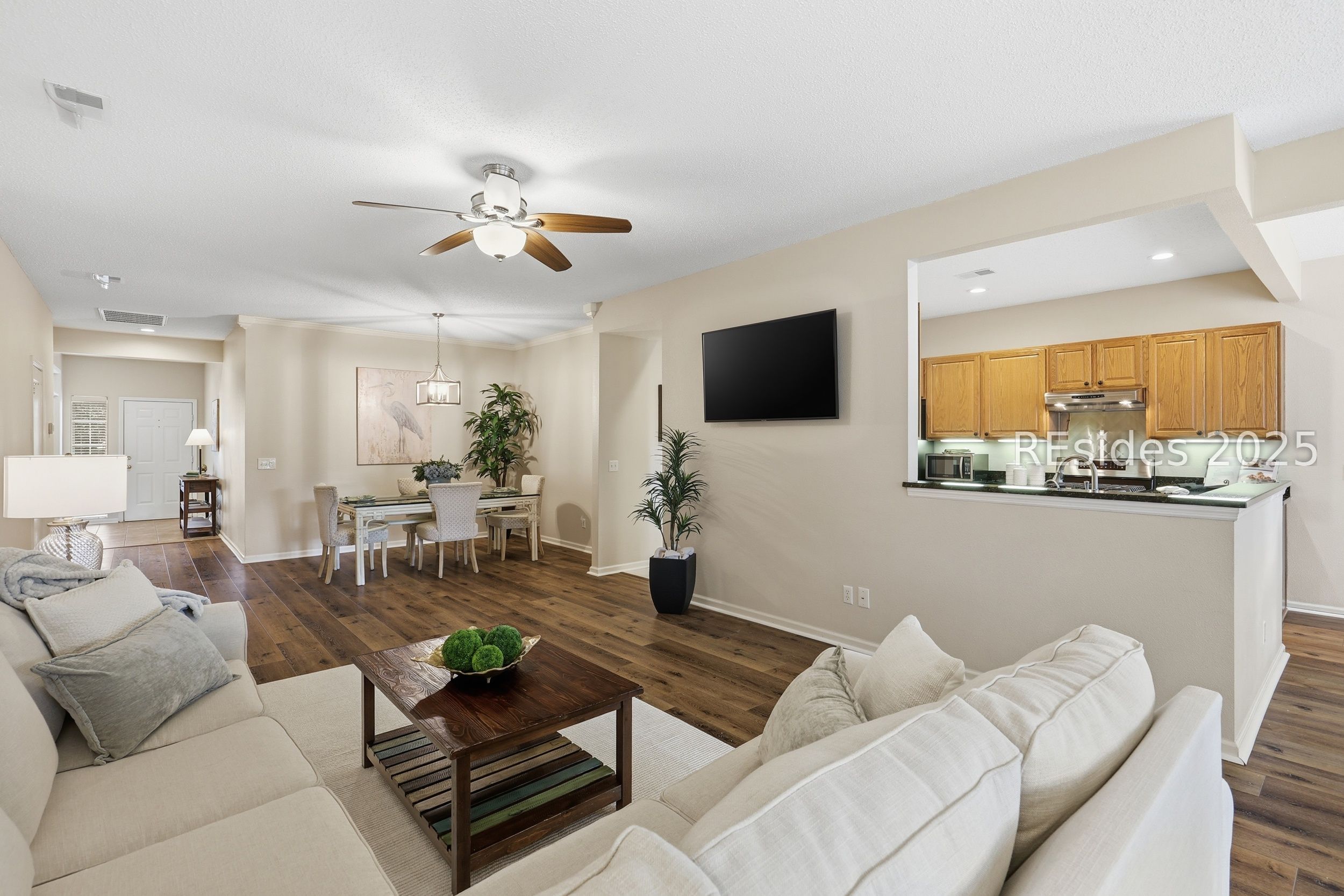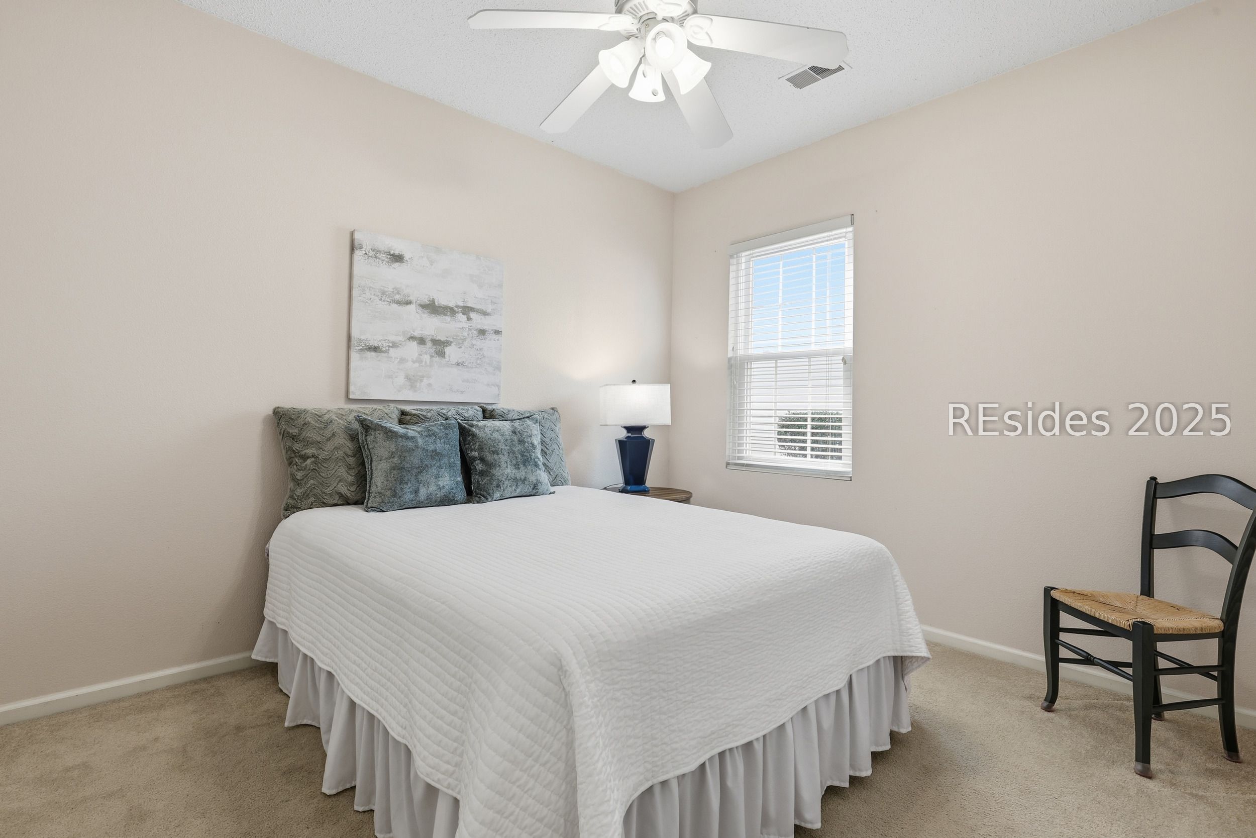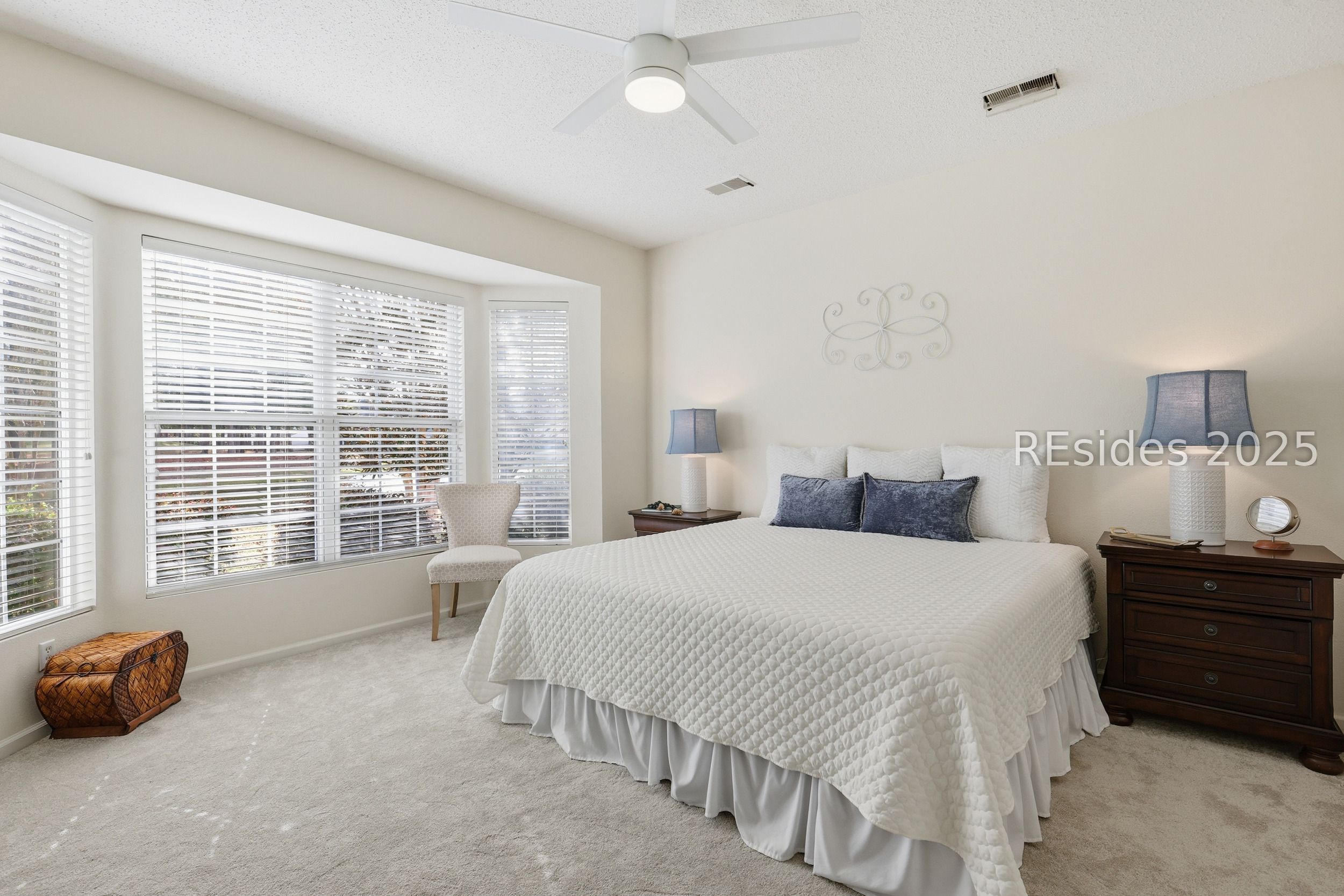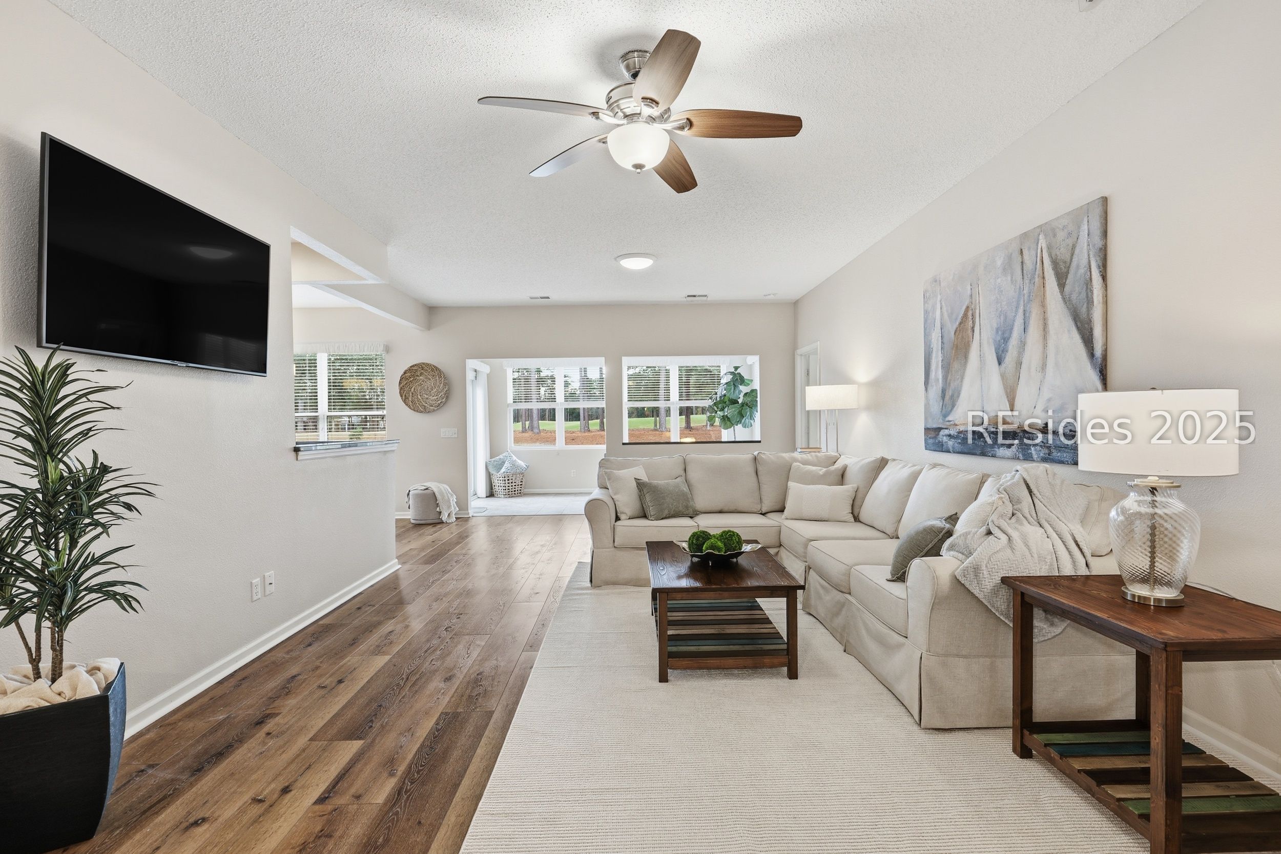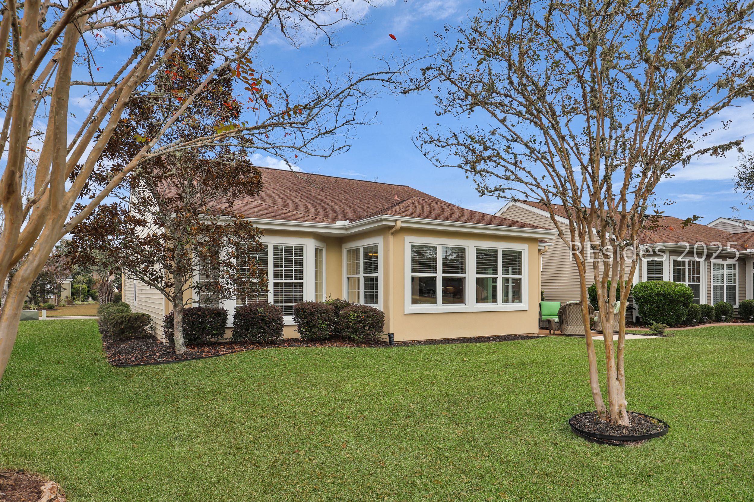 What a View! This immaculate property overlooks a stunning Lagoon and Golf Course and has the perfect floorplan: 2 Bedrooms, 2 Bathrooms, Den/Office (or 3rd Bedroom), Dining Area, Living Room, Large Kitchen w granite counters, gas range and stainless steel appliances and an Eating Area, Carolina Room, Laundry Room w Mud Sink, Extended 2-car Garage, Attic Storage w Pull Down Ladder, Recessed LED lighting, Window Blinds, Ceiling Fans. Exterior features include a storm door, Gutters with Downspouts. This beautifully maintained home has been well cared for with improvements and regular maintenance - Roof 2016, HVAC 2017, Engineered Vinyl Floors (since 2019), New Master Bath (since 2019), Granite Counters, Oak Cabinets, Gas Range, Stainless Appliances and updated light fixtures. Turn-key, and ready for its next owner! Start enjoying the Sun City Lifestyle where you will find something exciting to do daily from pickleball, golf, fitness! Additional amenities include on-site dining options, RV and boat storage, and a secure gated setting with easy access to Hilton Heads pristine beaches, Historic Savannah, and Charleston. Conveniently located near shopping, dining, and healthcare nearby. Plus, Sun City is on the rise with a brand-new, multimillion-dollar resort-style community center currently being built with even more Amenities!