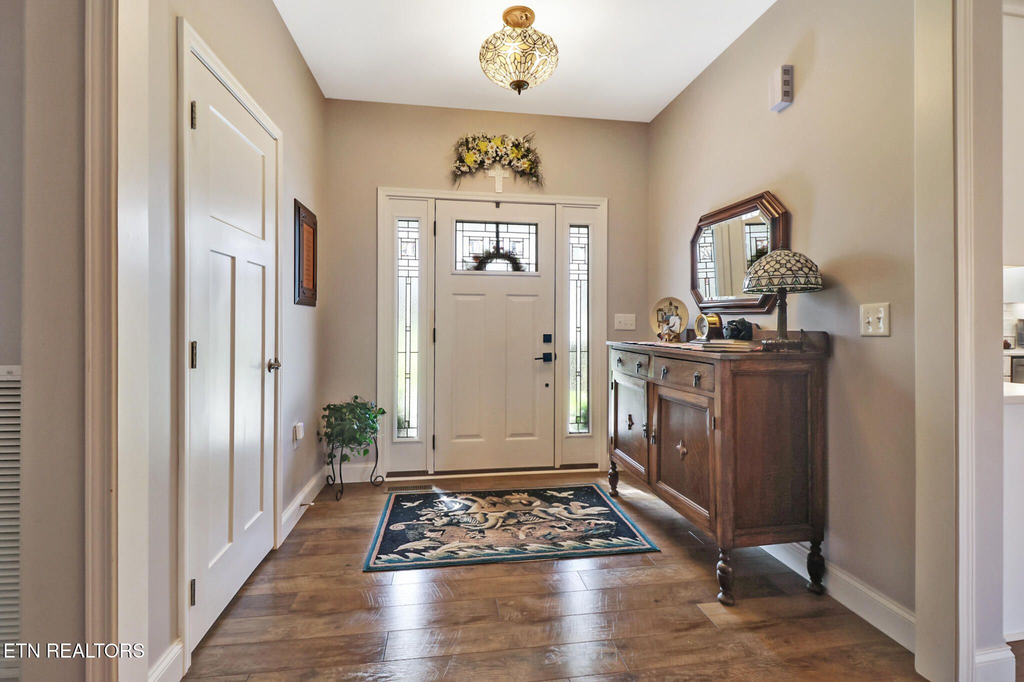 Tucked away at the end of a quiet cul-de-sac and bordered by two vacant lots, this bright, custom-built home offers exceptional privacy and a peaceful setting. A covered front porch welcomes you inside to a foyer that opens into a bright, open-concept layout featuring a great room with a trey ceiling and electric fireplace, a formal dining area, and an expansive kitchen complete with a large island, breakfast bar, and quartz countertops--perfect for both everyday living and entertaining. Seamless engineered hardwood flooring runs throughout the main living areas, with tile in the bathrooms for added durability. The kitchen is thoughtfully designed with abundant cabinetry, pull-out shelves, soft-close drawers, and stainless steel appliances, along with a conveniently located pantry across from the spacious laundry room which includes a washer and dryer. Enjoy year-round relaxation in the tranquil three-season sunroom, which opens onto a deck overlooking the natural beauty of the backyard. The generous primary suite features an en-suite bath with dual vanities, a tiled walk-in shower, and a large walk-in closet. Two additional bedrooms--one equipped with a Murphy bed--and a guest bath are situated on the opposite side of the home for added privacy. Additional highlights include a hot tub area adjacent to a walk-in crawl space with a concrete slab, offering excellent storage options. As a bonus, the vacant lot next door at 19 Leinster is included with the property at no extra cost.