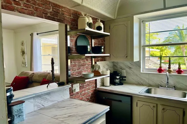 - Entry Level Living Area, Florida Room, Living/Dining Room, Blinds, Tub Shower, Primary Downstairs