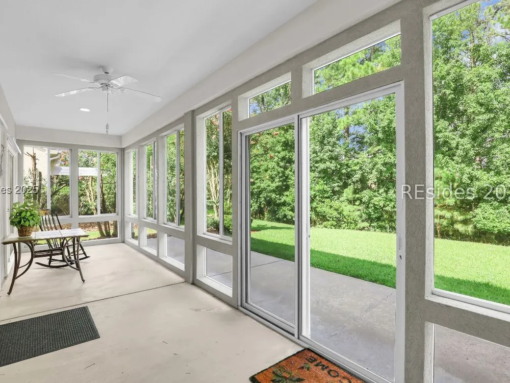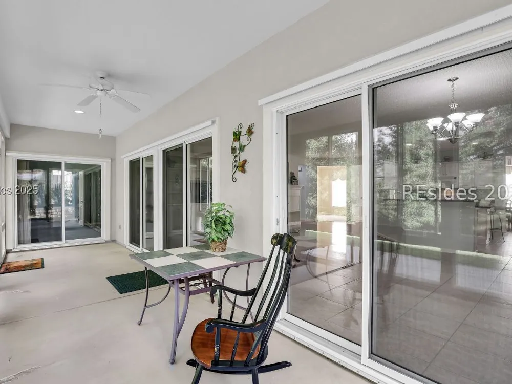 Welcome to Your Perfect Lowcountry Retreat! Nestled on a peaceful street in Sun City, this beautifully maintained Del Webb Chestnut model offers the ideal blend of comfort, style, and peace of mind. Thoughtfully cared for by its original owner, this home boasts key upgrades including: newer roof (2020), HVAC system serviced and replaced (2021), hot water heater (2022), and like-new washer and dryer (2024).Enjoy everyday convenience with a 4-foot extended garage, hurricane shutters, and an enclosed patio for year-round enjoyment, plus an additional patio space perfect for grilling and outdoor dining. All of this is framed by a lush, professionally landscaped backyard designed for privacy and relaxation.Located just moments from the sought-after Hidden Cypress amenities including golf, fitness center, pool, restaurant, dog park, pickleball courts, softball fields, and even a state-of-the-art woodshop. Live the lifestyle you deserve in one of the most celebrated active adult communities in the country. This home is the perfect starting point for your next chapter.