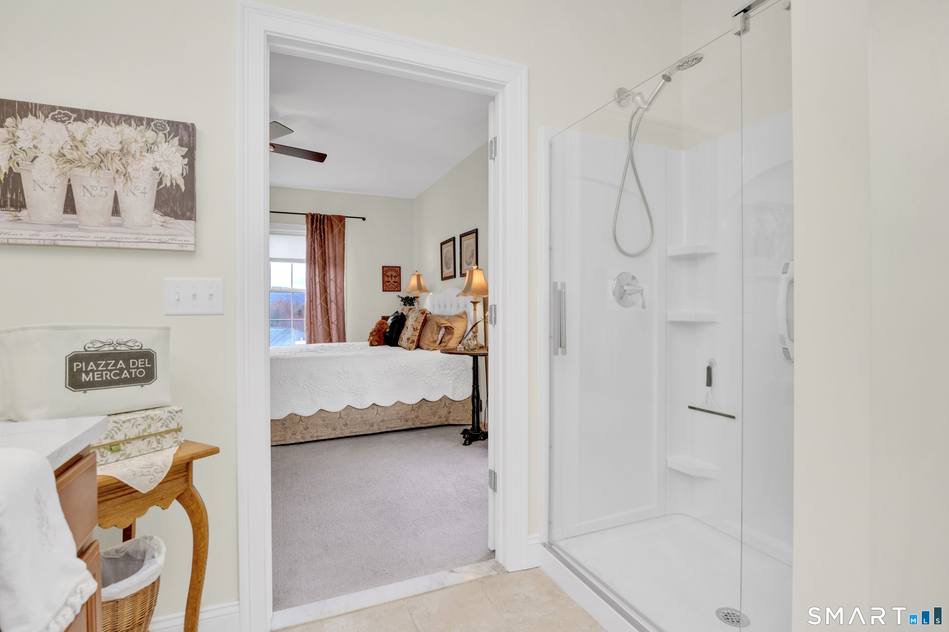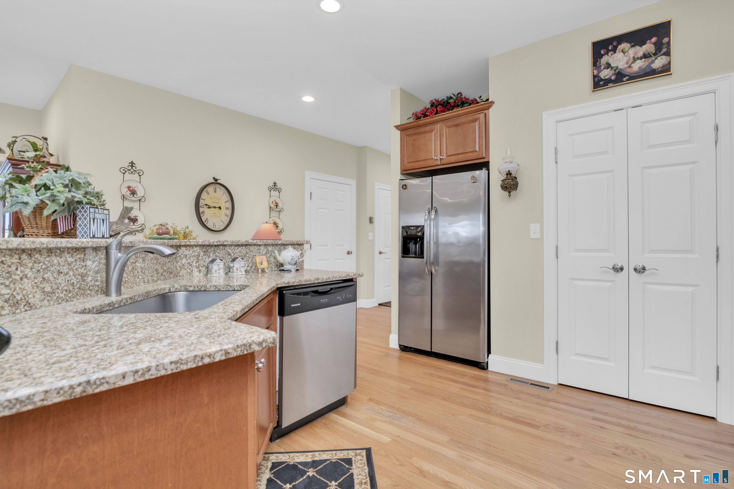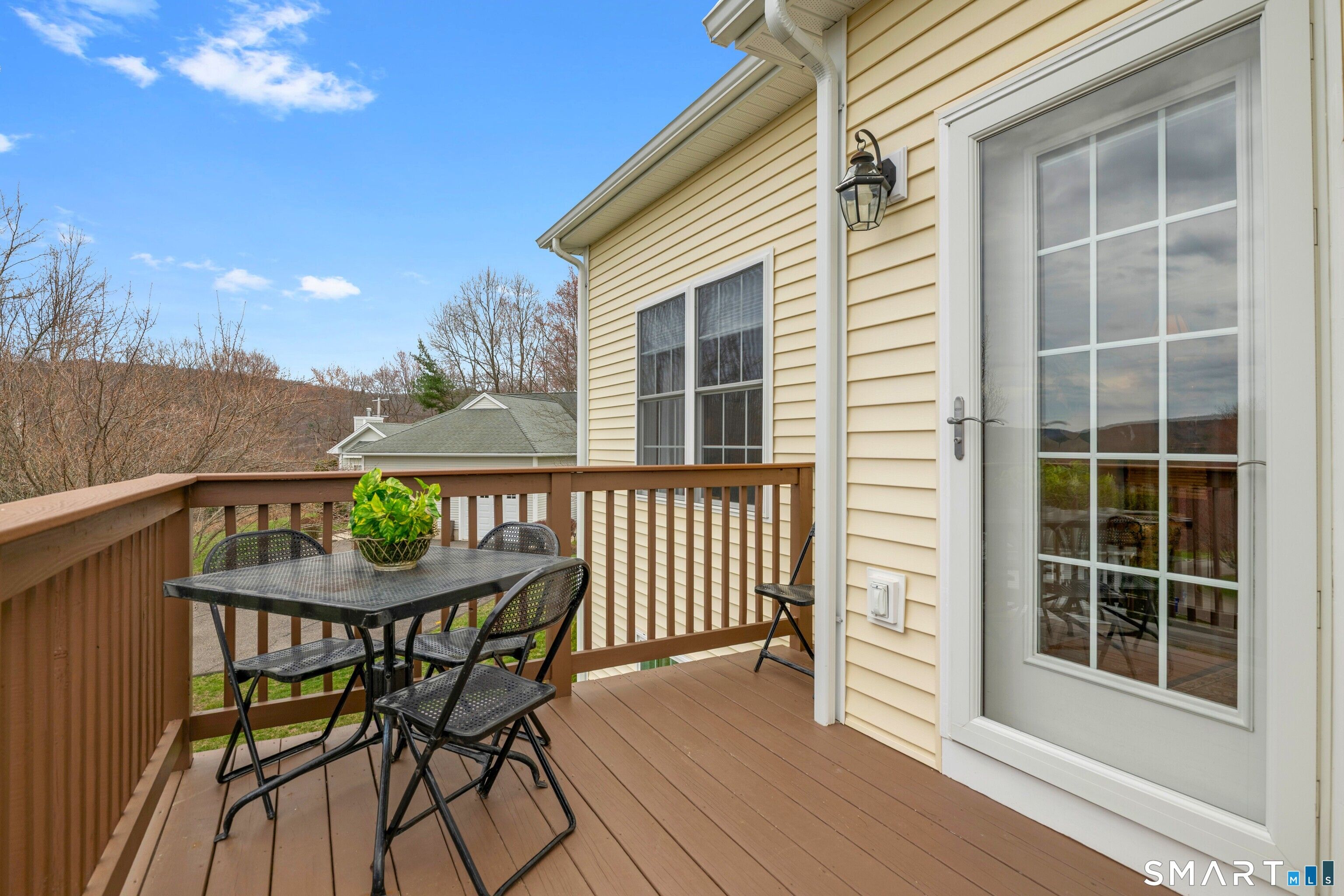 Impeccably maintained and upgraded end-unit ranch in a sought-after 55+ community, offering the ease of single-level living and a bright, open floor plan. Built 2016, this well-maintained home features 2 bedrooms, 2 full baths, and 1,474 square feet of comfortable living space on the main level. The kitchen, dining and living spaces boast gleaming hardwood floors, lots of bright recessed lighting, and flow seamlessly as you move about. This home is ideally positioned to maximize natural light pouring in, and the view from the private deck is breathtaking! Kitchen is equipped with granite countertops, ample cabinetry, spacious pantry, and modern appliances. The primary bedroom offers a walk-in closet and wall-to-wall carpeting, while the second bedroom provides flexible space for guests or a home office. Additional highlights include main-level laundry, central A/C, natural gas heat and hot water, public utilities, and a two-car garage. The beautifully finished walk-out basement with roughed-in bath provides additional living space and an adjoining storage area. This community features a clubhouse and low-maintenance living with monthly HOA covering grounds care, snow removal, trash, and property management. This is a home you'll take great pride in owning, in a community you'll feel great about. Beacon Falls offers outstanding parks and outdoor recreation, the security of in-town first responders just minutes away, and is the perfect commute via Routes 8/42/63/84. Come see