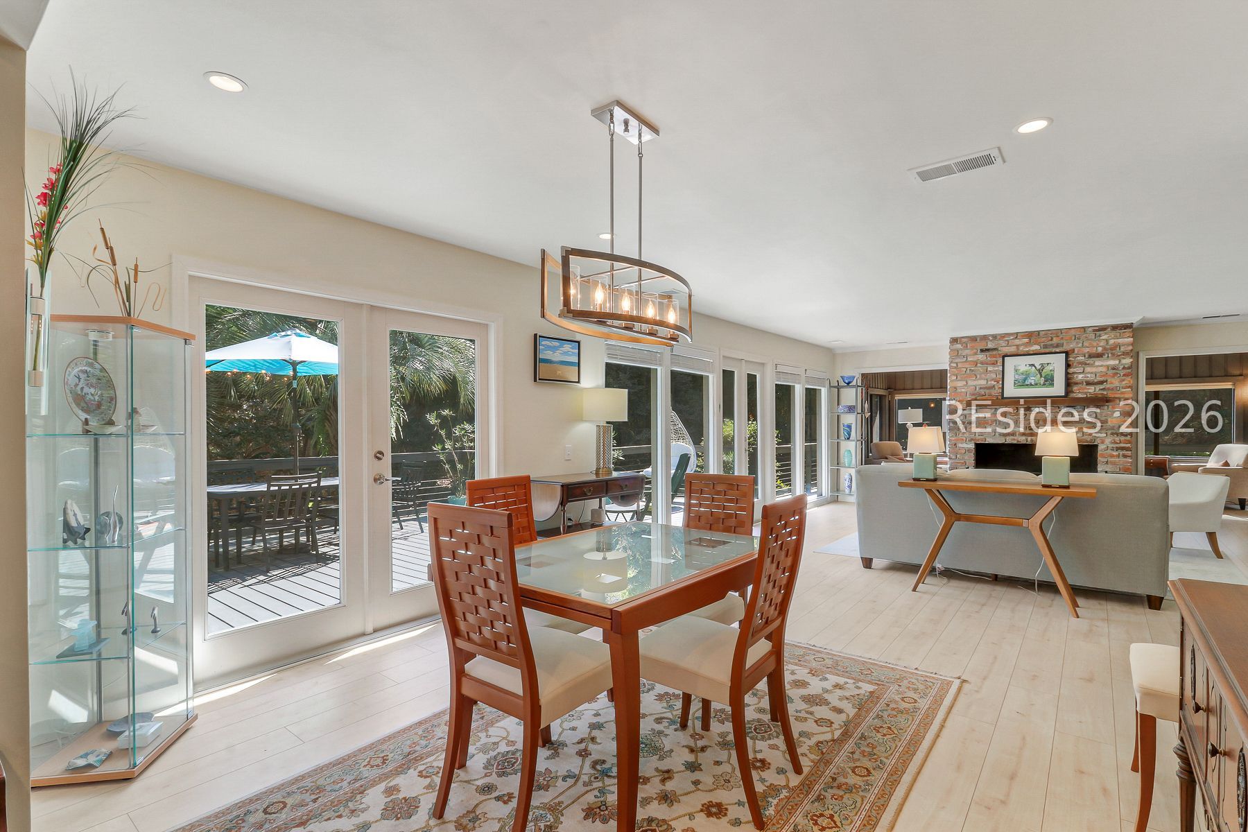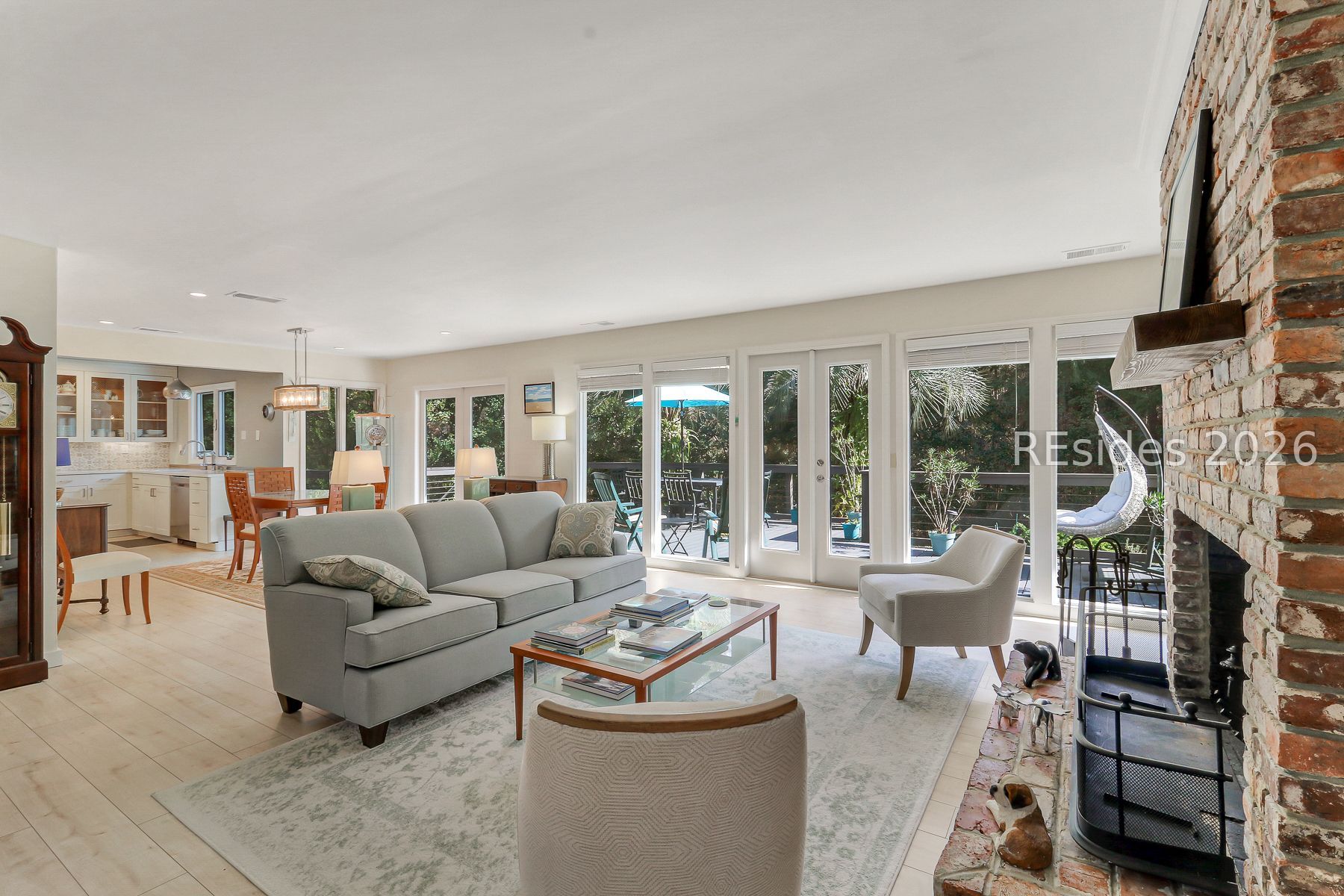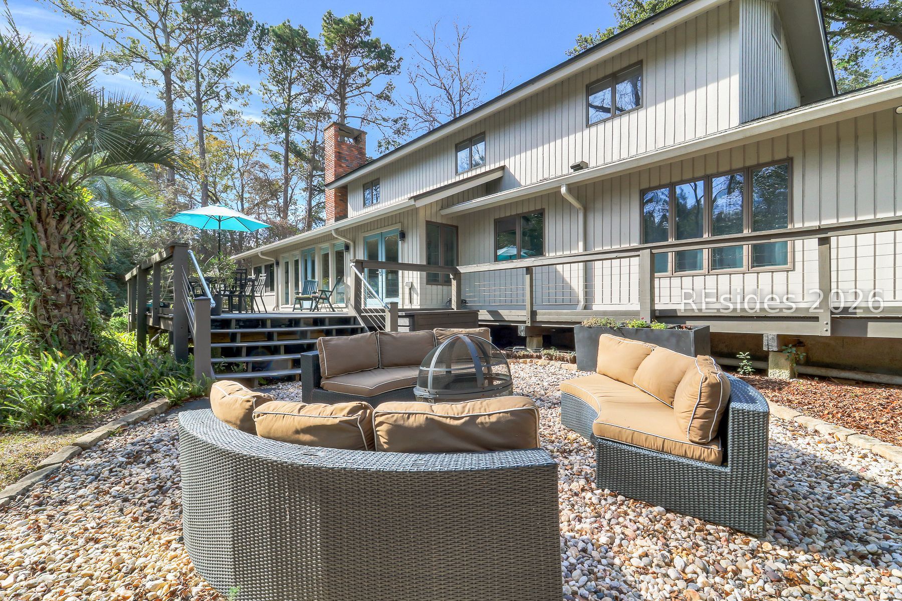 17 Salt Wind Way offers contemporary Lowcountry living with an open, light-filled floor plan and sought after 1st floor primary suite. Designed for both comfort and connection to nature, the home features an expansive wrap-around deck with private access for the primary - perfect for relaxing or entertaining amid the serene, wooded setting. There is an expansive fire pit area. Inside you'll find updated kitchen with a gas range, updated bathroom, warm hard surface flooring and a classic masonry fireplace anchoring the main living area. The flexible layout includes three bedrooms, a flex room ideal for a 4th bedroom or home office. There also is a den or media space. Set on a private, full-size pie-shaped wooded lot, 17 Salt Wind Way feels like a retreat, yet it's just a short distance to Hilton Head Plantation's Dolphin Head Beach Park and playground, the sandy beach of Pine Island and scenic waters of the Port Royal Sound. Welcome home to 17 Salt Wind Way.