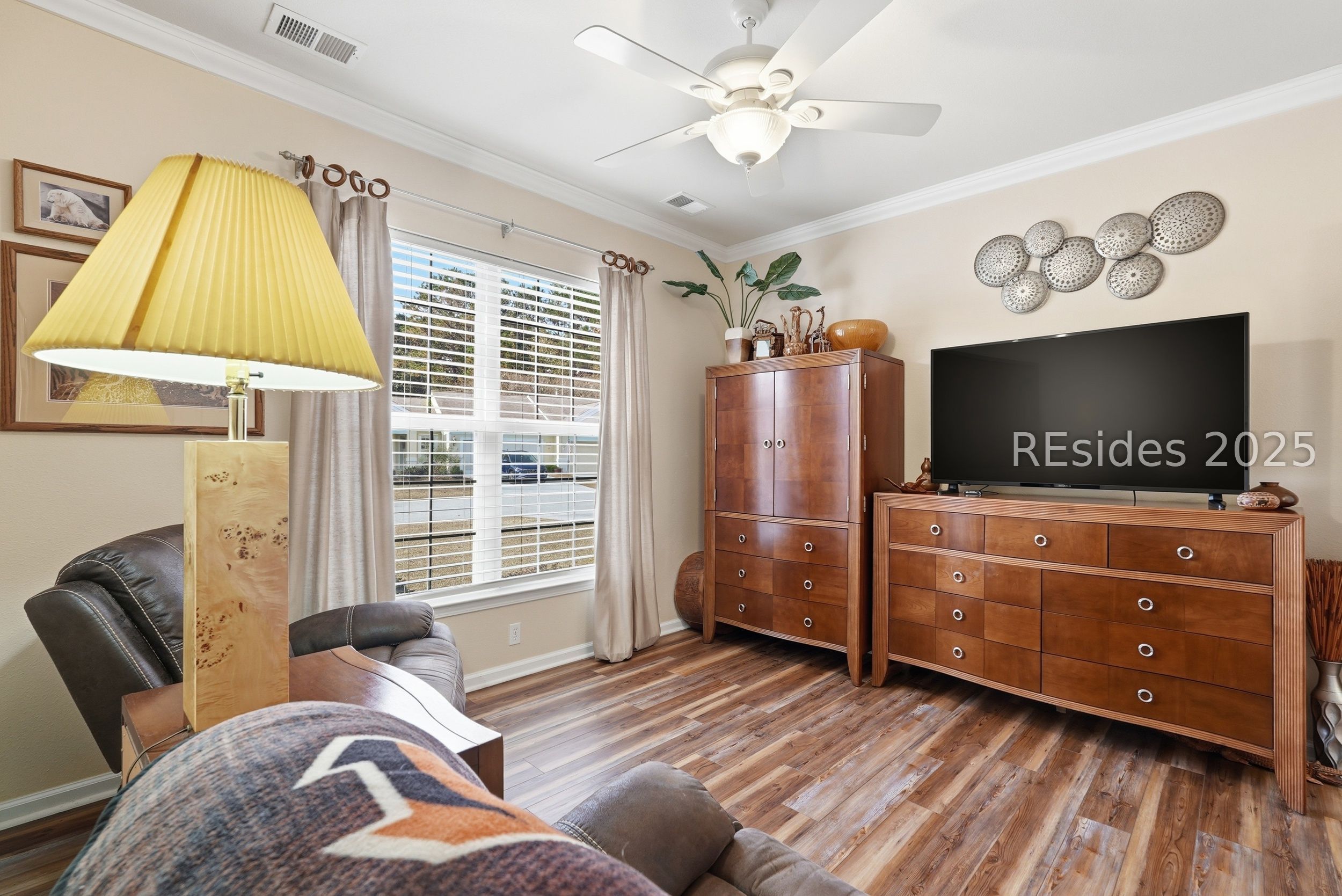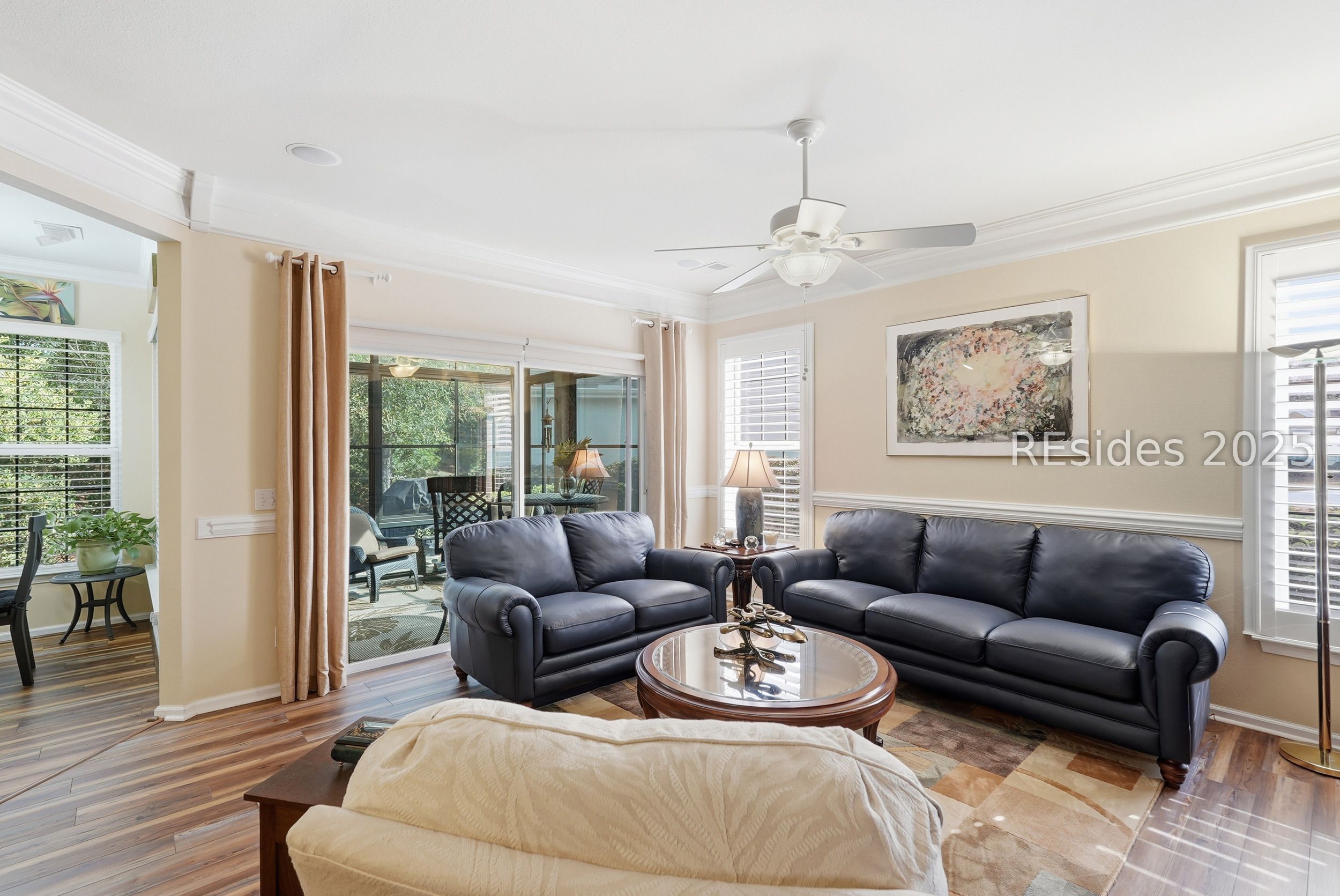 Located in the highly sought-after Sun City Hilton Head, this beautifully updated Wren Villa offers the perfect blend of comfort, convenience, and Lowcountry lifestyle. Just moments from community amenities, on-site restaurants, and nearby retail, this 2BD/2BA villa with an office/flex room is designed for easy living. As an end unit, the home enjoys an expansive open side yard and a private, peaceful backyard. Inside, you'll find thoughtful upgrades throughout, including LVP flooring (2025), granite kitchen countertops (2025), stainless steel appliances (2023), and an indoor washer/dryer. Additional touches such as crown molding, chair rail, plantation shutters on select windows, and high-strength window film elevate both comfort and efficiency. Bathrooms shine with new vanity tops, faucets, and mirrors (2025). Exterior improvements include Leaf Filter gutter guards (2024).Relax year-round in the fabulous enclosed lanai with fiberglass windows, or unwind on the expanded paver patio-ideal for enjoying Sun City's tranquil setting. Villa living also includes lawn care, irrigation, exterior insurance, roof reserve, power washing, and more for low-maintenance living. Living in Sun City Hilton Head means access to an unmatched array of resort-style amenities, including three 18-hole golf courses, multiple fitness centers, indoor and outdoor pools, over 100 clubs and social groups, pickleball, tennis, bocce, softball, woodworking, arts & crafts studios, dog parks, miles of walking trails, and community events throughout the year. Whether you're seeking recreation, relaxation, or new friendships, Sun City offers endless opportunities to enjoy the best of active Lowcountry living.
