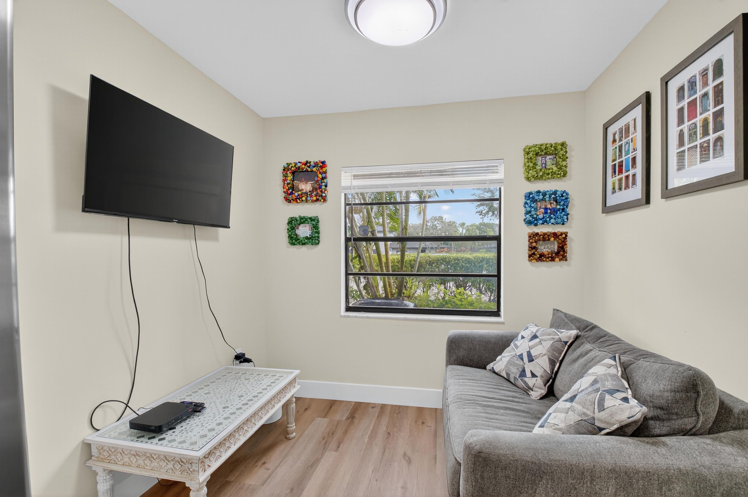 Discover this inviting TOTALLY RENOVATED 2-bedroom, 2-bath condo located in the desirable Hunters Run Country Club. Open Floor Plan, Quartz Counters, Stainless Appliances. LED Lighting Throughout. This light-filled residence offers an open living and dining area, a spacious primary suite, and a screened-in balcony with serene golf and lake views. Custom Pavered Patio For Outdoor Entertaining. Perfect for year-round living or a seasonal retreat, this home provides access to world-class amenities including three championship golf courses, tennis and pickleball courts, resort-style pools, fitness center, spa, and multiple dining venues. Experience the best of South Florida country club living in this beautifully maintained community.