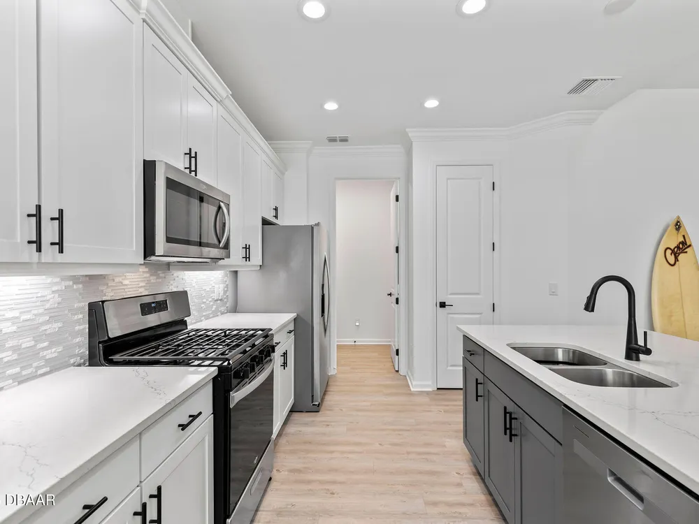 Discover your dream home in Latitude Daytona Beach, a premier 55+ community that offers the perfect blend of relaxation and adventure! This charming 2-bedroom, 2-bathroom home features a den/flex room and an open-concept layout that flows seamlessly from room to room. The chef's kitchen boasts stunning quartz countertops and a gas range, ideal for cooking and entertaining. Set in a prime location with added privacy, this home also comes with a 2-car garage. Step outside to enjoy world-class amenities, including resort-style pools, a state-of-the-art fitness center with an indoor lap pool, and a lively restaurant and bar. The bandshell with live entertainment, Last Mango Theater, dog park, pickleball courts, and bocce ball provide endless options for entertainment. Plus, with the gorgeous private beach club and transportation service, you're all set to live your best life at Latitude Margaritaville! With a full social calendar of events, the fun never stops.
