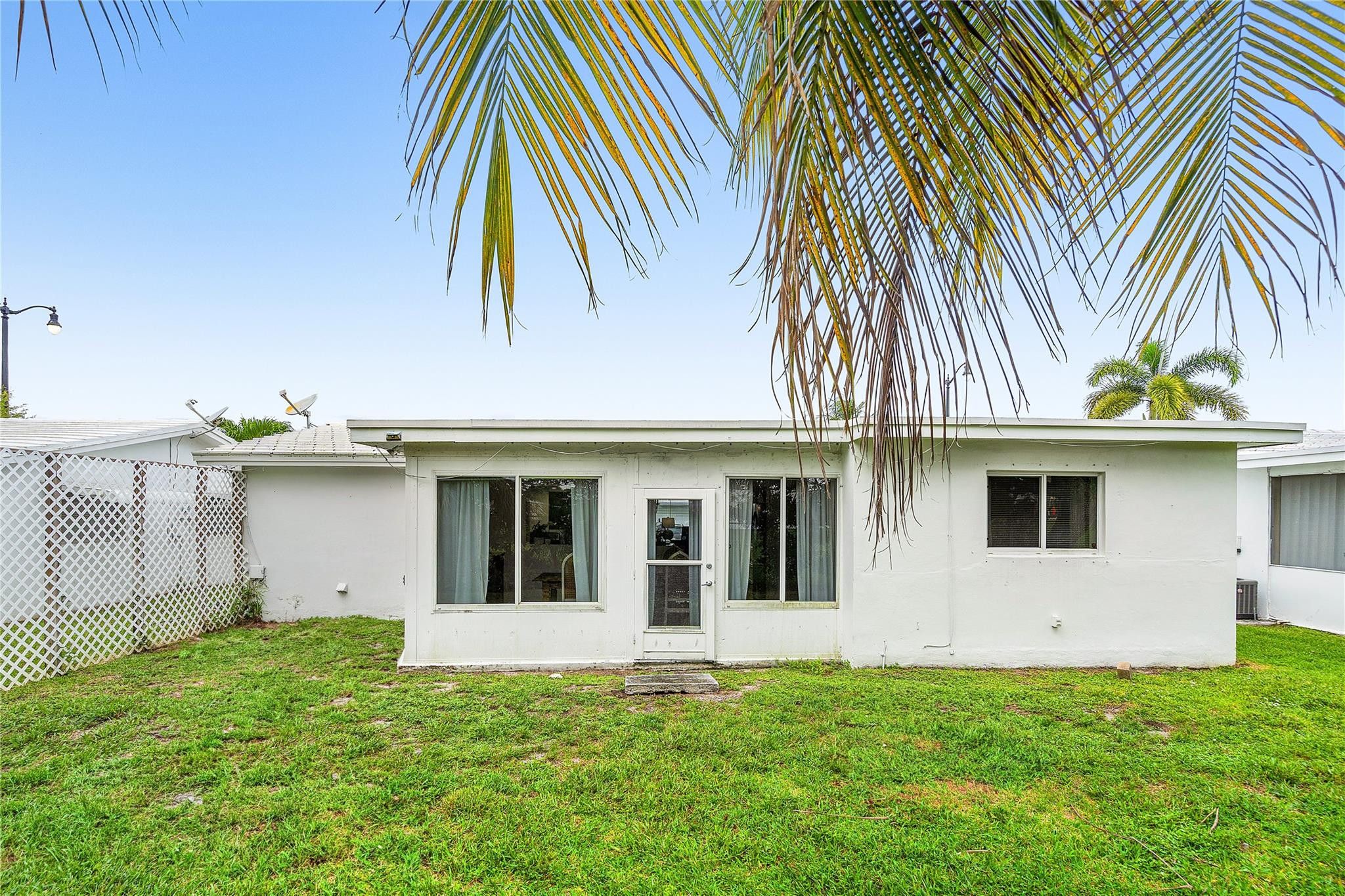 Stunning and airy two bedrooms. One bath-one car garage home. Backyard open to lots of greenery and one of the very few homes in this community without a house located behind property. Roof replaced in 2015. No land lease. Located in Leisureville just3 miles from the beach with easy access to shopping, dining,and I-95. Verfied 55+ community east of 95 featuring free golf, on a 9 hole par, 3 course. Maintenance fee includes exterior house painting, water, lawn card, and shuttle service. Two pools, two clubhouses, walking and biking trails. This is a well maintained pet friendly community.