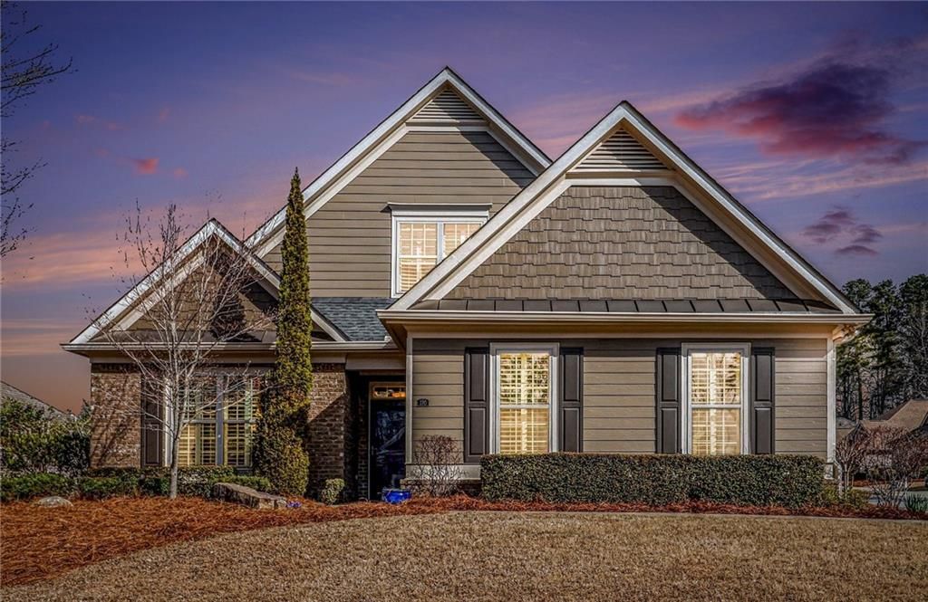 Lovely Craftsman style former model home in the Gallery Section of the Orchards at East Cherokee offers maintenance free living in this 55 plus private community.  Situated on a large corner lot with a rare side entry 3 car garage.  This home features many upgrades, plantation shutters throughout, upgraded electrical panel, California Closet w/chandelier in Master Suite, Newer Stainless appliances, is wheelchair accessible and offers a bright open floorplan with hardwood floors on the main, fireplace seating area, dining area and expansive kitchen island. A relaxing Sunroom is heated and cooled and leads out to the outdoor patio. The kitchen features plenty of counter space and cabinetry as well as 2 pantry storage areas.  The Master Suite w/Trey ceiling and a guest bedroom or home office with private bath access are located on the first floor with a secondary Master sized bedroom upstairs with a private bath. The laundry room is located on the first floor and can be conveniently accessed from the Master walk in closet or the main living area. There is a walk-in Attic storage room upstairs. The Orchards is a wonderful community with a clubhouse, pool, fitness center and scheduled activities and includes dwelling yard maintenance, exterior house painting and trash removal. Located in desirable Hickory Flat with dining, shopping, library and other options close by and easy access from Roswell, Woodstock and Canton.