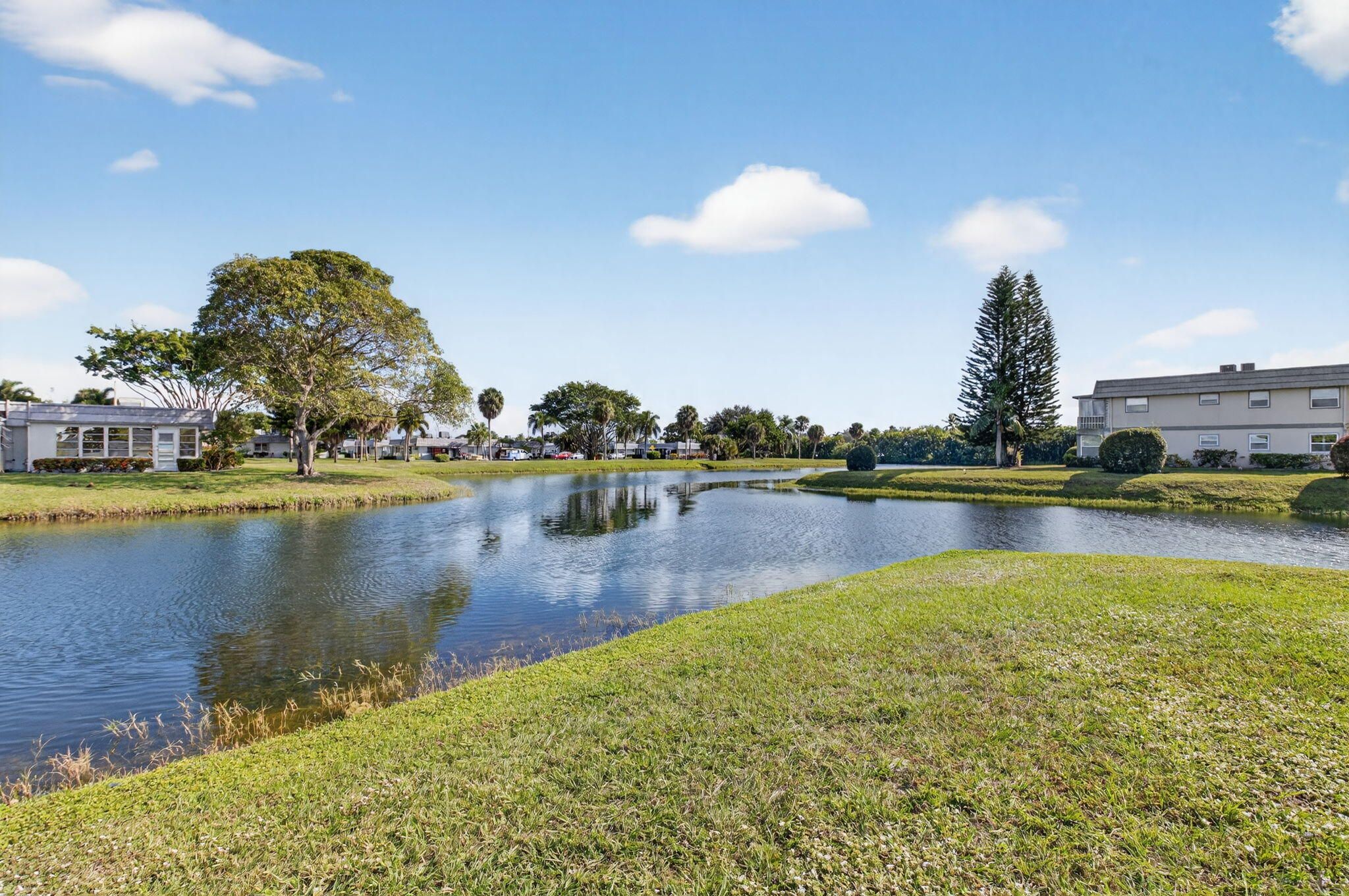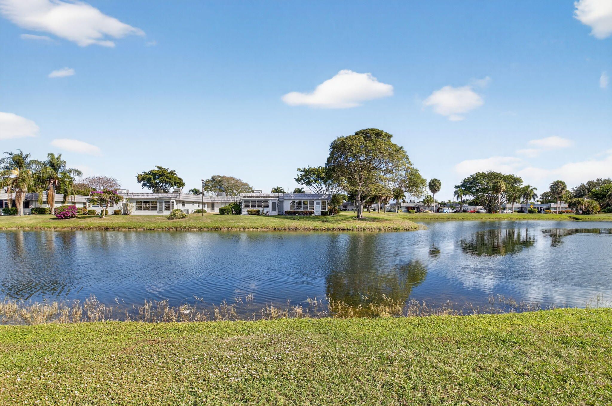 Light-filled, cozy corner condo-villa offering one of the most inviting villa-style opportunities currently available in the sought-after Valencia section of Kings Point. Windows on three sides create an airy feel throughout the home. Just outside the front entrance a few steps to the right, a landscaped common area offers scenic water views and frequent wildlife sightings. This 1-bedroom, 1.5-bath residence features an updated kitchen with island, updated baths, new laminate flooring, updated lighting and doors, and an enclosed Florida room with porcelain flooring and a full-size washer and dryer. A/C replaced April 2021 with air purifier. Furnishings negotiable.Residents enjoy extensive community amenities. Minutes to shopping, dining, downtown Delray Beach, and the ocean.