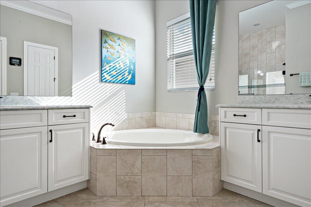 - Built-in Features, Entrance Foyer, High Ceilings, Pantry, Walk-In Closet(s), Split Bedrooms, Garden Tub/Roman Tub, Impact Glass, Eat-in Kitchen, Separate/Formal Dining Room, Dual Sinks, Separate Shower, Soaking Tub