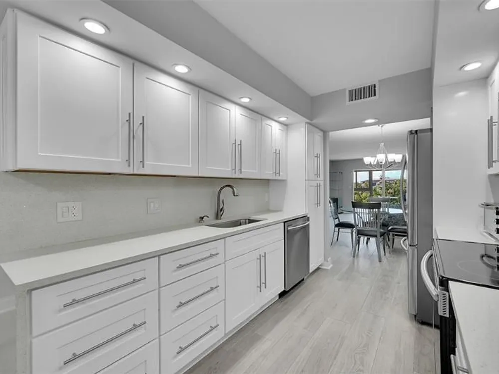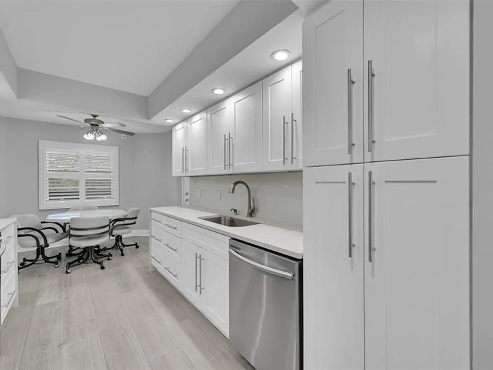 Live the ultimate luxury lifestyle in this exquisite 2BR/2BA gated residence, fully redesigned to perfection. Enjoy breathtaking lake and fountain views through floor-to-ceiling hurricane impact glass. The open layout features porcelain wood plank floors, a chef’s kitchen with Samsung stainless appliances, waterfall quartz counters, and designer backsplashes. Spa-like baths boast frameless showers and floor-to-ceiling tile. Custom walk-in California closets, smooth ceilings, crown moldings, and newer electric, plumbing, A/C, and water heater make this a true move-in-ready gem. Washer/Dryer in the unit and Nothing left untouched. The amenities are Bar none with Community club house, shows, exercise classes and so much more.