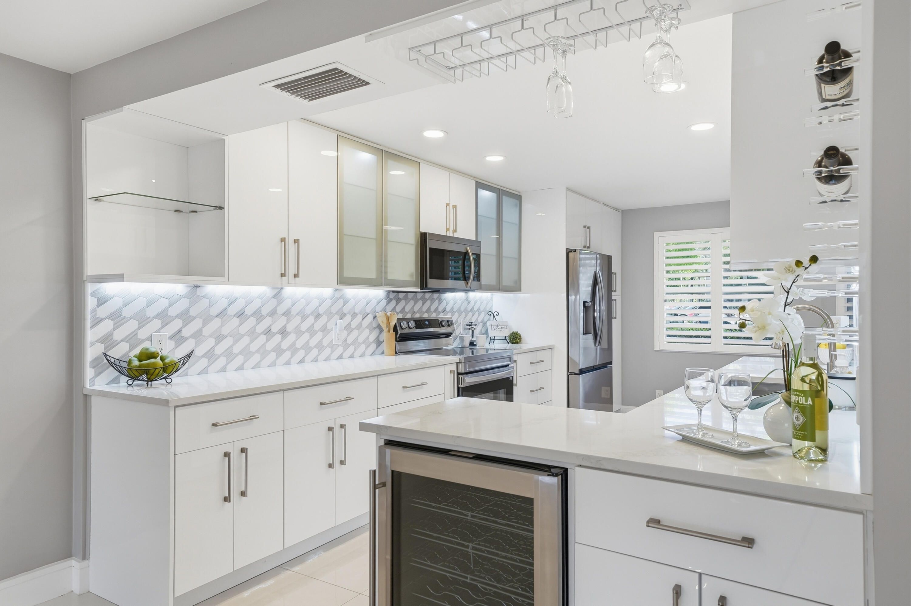 Step into luxury with this fully remodeled 1st-floor 2BR/2BA condo in Wynmoor; a premier 55+ active community. Everything is NEW! 2025 A/C, 2024 stainless steel appliances, impact windows with plantation shutters and sleek tile flooring throughout. The designer kitchen boasts quartz countertops and custom lighting. Enjoy serene lake views from your living room, enclosed patio or spacious primary suite. Oversized walk-in shower, dual sinks, & custom closet. Full-size washer/dryer in unit. Parking right outside your door. Resort-style amenities include golf, pools, fitness center, pickleball, billiard hall, theater, dining, ballroom, classes, activities, tennis, walking trails & BBQ area. On site maintenance staff, transportation and 24/7 gated security. Turn-key living in Coconut Creek!