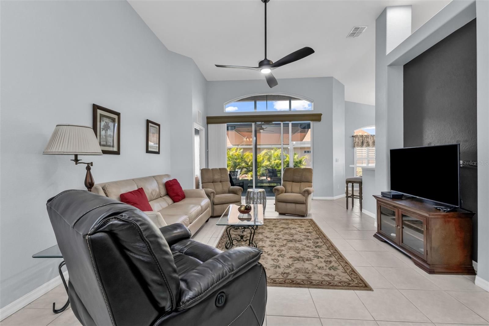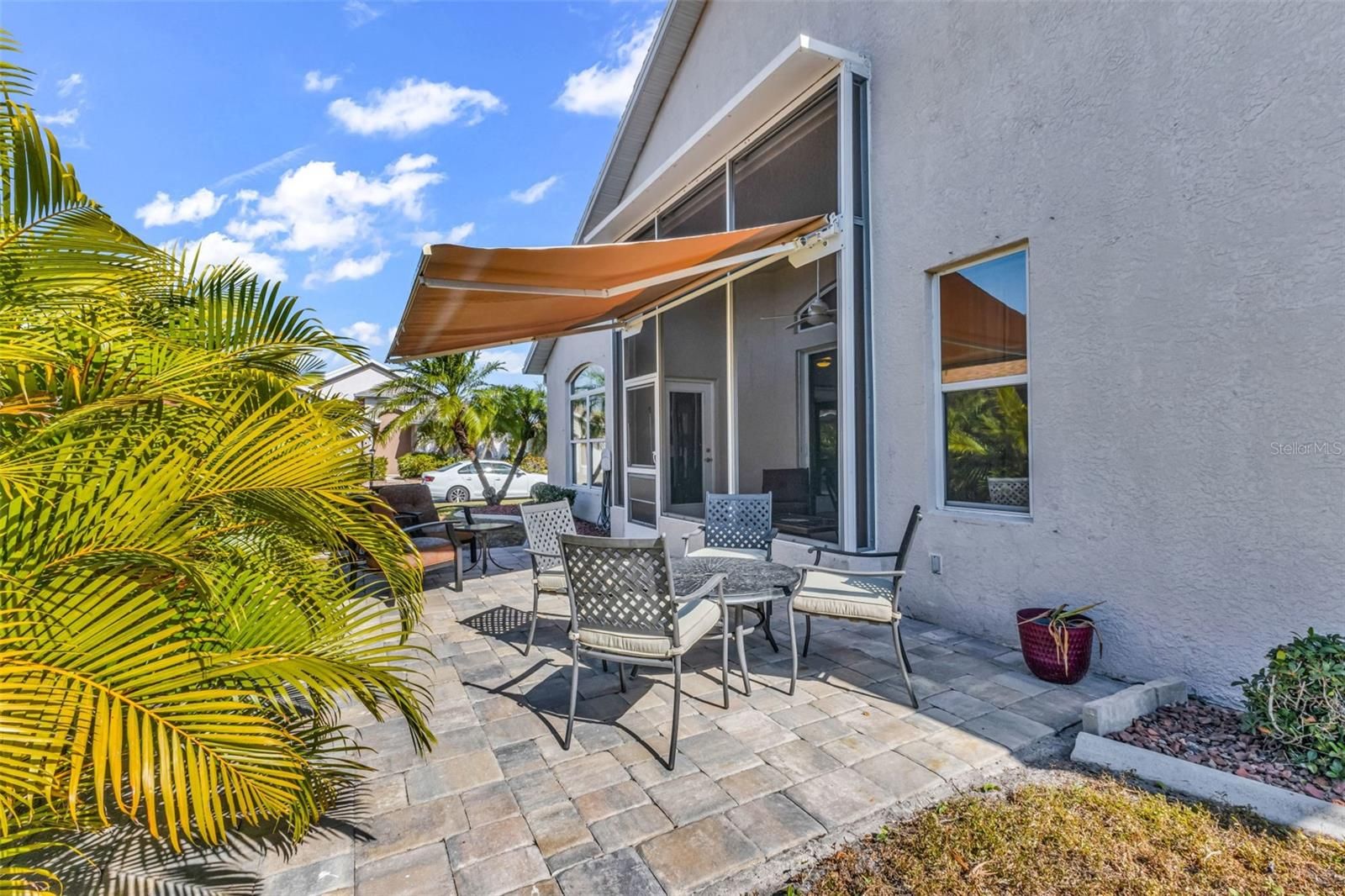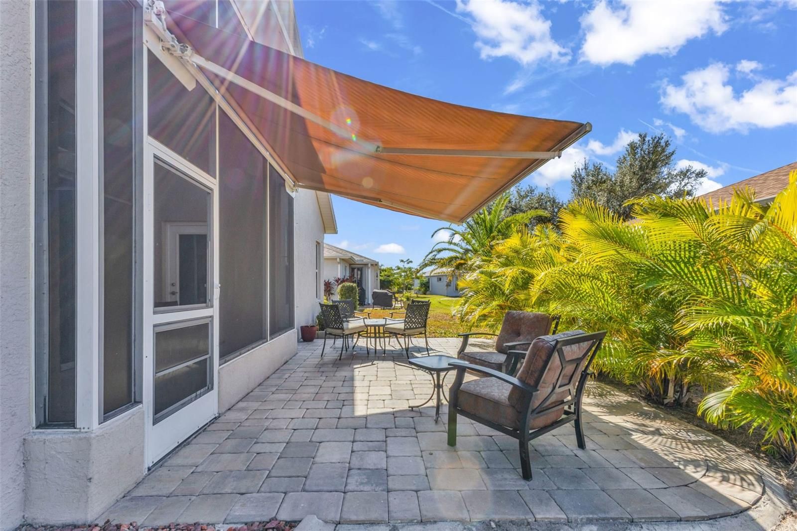 Great value with this AMAZING ASHTON floor plan with a house that feels like NEW in the gated golf course/active resort of Kings Gate, a 55+ community that is NOT in a flood zone and DOES NOT need flood insurance. LARGE CORNER LOT in central location of community. This FULLY FURNISHED home features new fans, new switches, new lighting, freshly painted, Roof from 2022, AC 2025, new PAVER PATIO and AWNING for PRIVATE backyard. The desirable ASHTON floorplan features towering 12 foot high ceilings with a massive kitchen providing plenty of counter space and cabinet space - with additional sink on the island. The large living room interacts nicely with the dining room, kitchen, lanai and paver patio. This house provides a generous amount of natural daylight. The master bedroom is in the back left of the home with the guest bedroom in the front left of the home - providing plenty of privacy for you and your guests. The dual sinks, large walk in closet, and separate tub and shower make the master bath highly functional. The den in between the two bedrooms has pocket doors that allow you to use the room as a private office, 2nd TV room, and/or 3rd bedroom if needed. And if you haven't been to Kings Gate before - you're going to love the options for activity (Olympic size heated swimming pool and spa, tennis courts, pickle ball, lawn bowling, shuffle board, bocce, horseshoes, gym, billiards, library, euchre, bingo, bridge, Texas hold em, poker, mahjong and more). The onsite Lions Den restaurant and bar is super convenient and also offers Tuesday night Karaoke and monthly trivia contests. Many residents love the fact that they are just a golf cart ride away from the Winn Dixie shopping plaza that provides you access to grocery store, drug store, bank, restaurants and shopping. Want to explore outside of Kings Gate - your minutes away from the restaurants and shops of downtown Punta Gorda and Fisherman's village (and the new SUNSEEKER RESORT). And if you want to explore more of Florida's fun spots you’re near I75 to quickly head north or south. An AWESOME home that looks and feels new in a PREMIER gated community needs to be on your list. Call today for a private showing and a golf cart tour of the community/amenities.