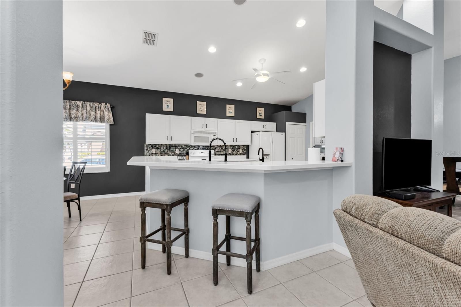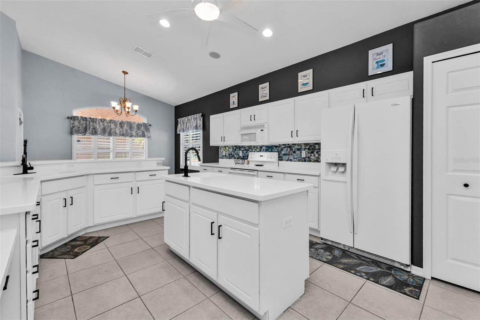 - Ceiling Fan(s), Eat-in Kitchen, High Ceilings, Living/Dining Room, Solid Surface Counters, Solid-Wood Cabinets, Walk-In Closet(s), Window Treatments