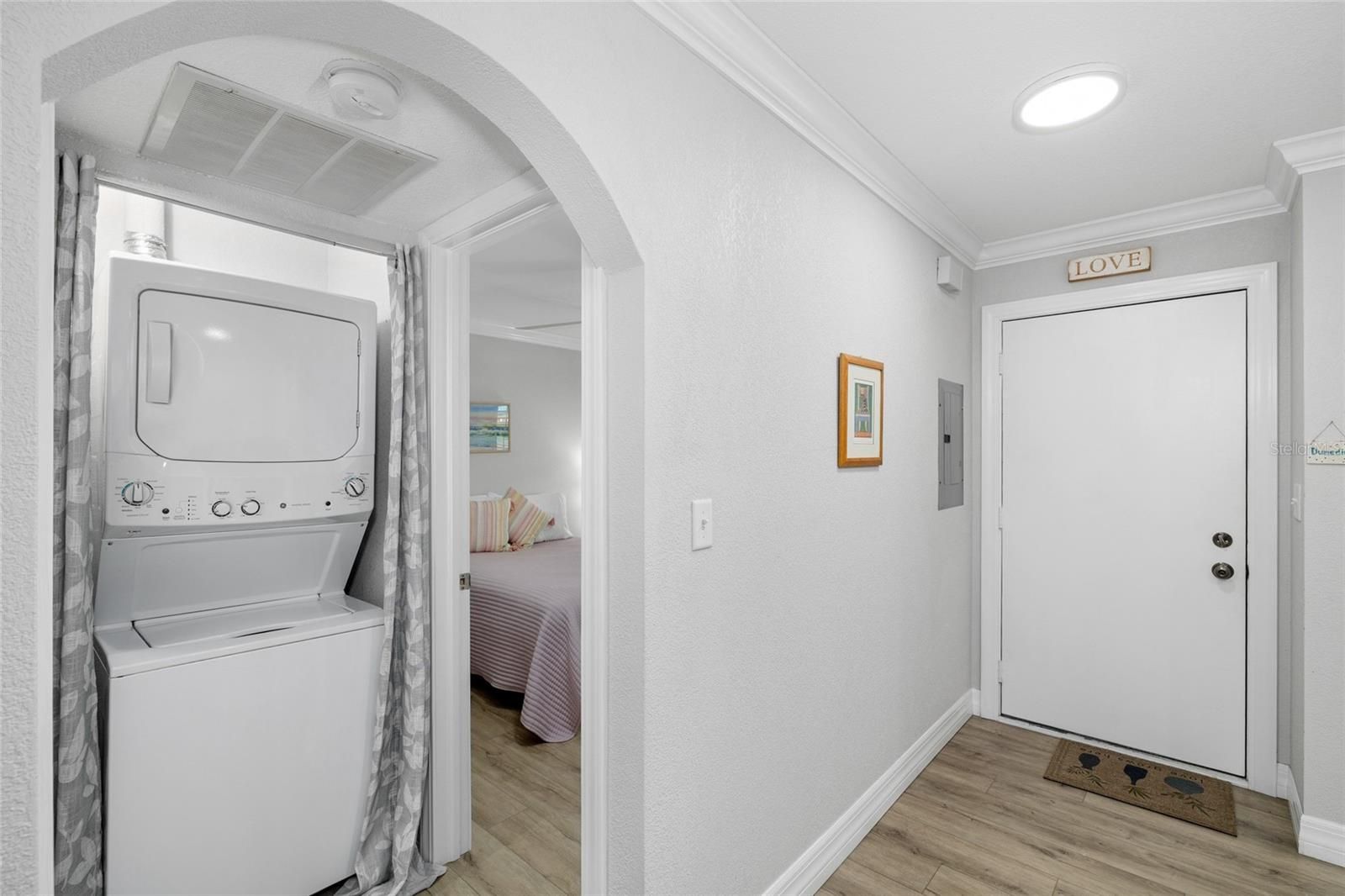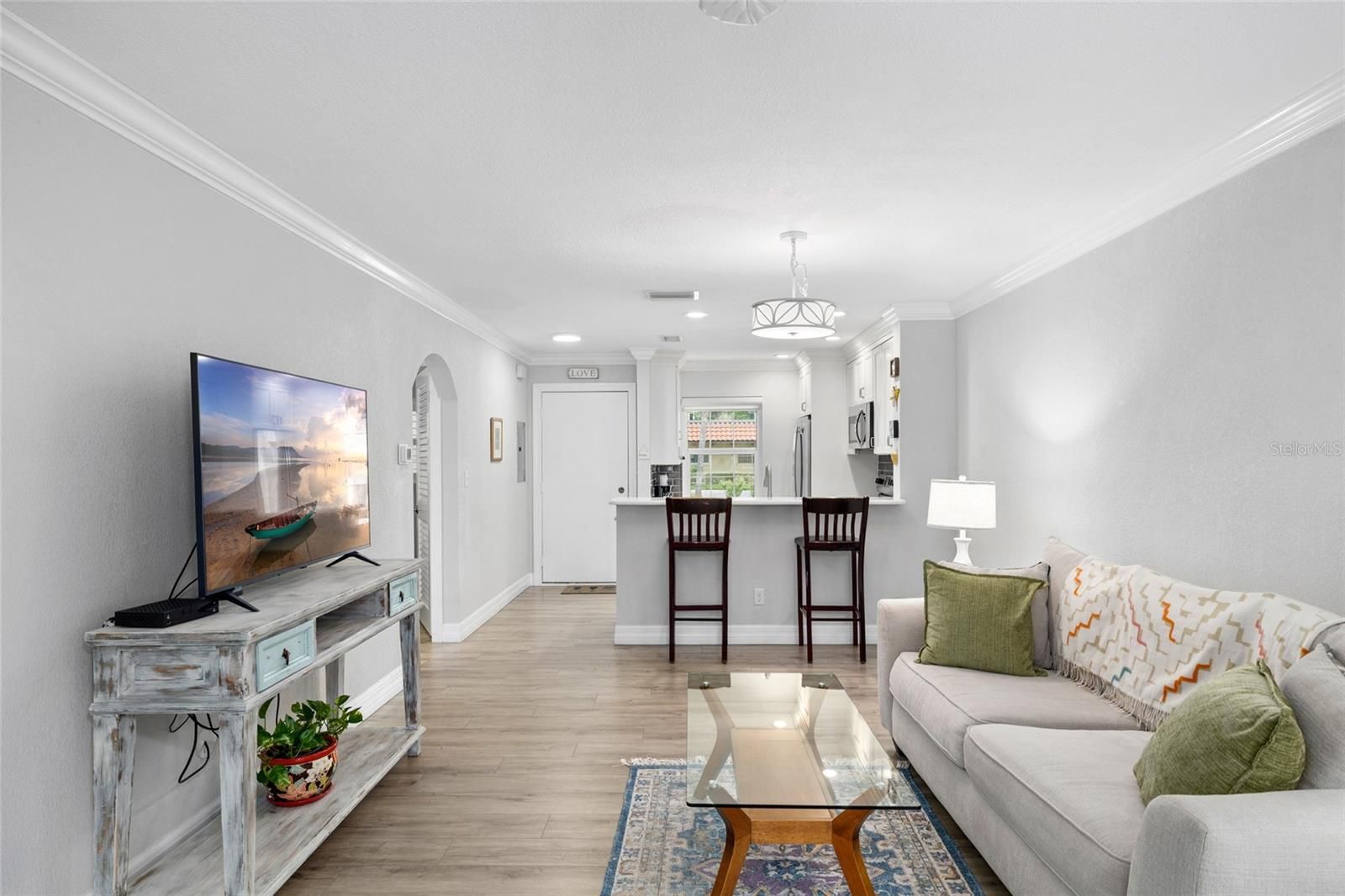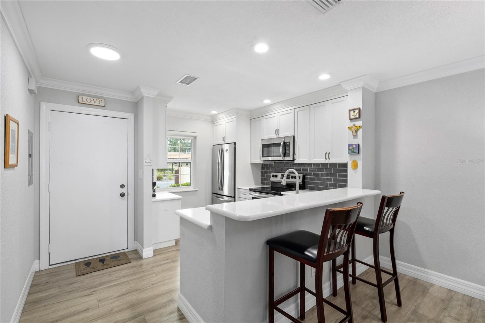 Welcome to your remodeled 2-bedroom, 1.5-bath villa in the sought-after 55+ community of Pinehurst Village, ideally located just 1.5 miles from vibrant downtown Dunedin and 4 miles from the sugar sands of Honeymoon Island State Park. This residence has been stylishly updated with crown molding, 5" baseboards, and luxury vinyl plank flooring throughout. The kitchen dazzles with quartz countertops, stainless steel appliances, white cabinetry, a subway tile backsplash, and a custom pantry, while both bathrooms feature custom vanities, including a spa-inspired walk-in shower with dual shower heads in the main bath. Plantation shutters and remote-controlled shades dress every window, and the split-bedroom plan enhances privacy. A convenient washer and dryer are located inside the unit, and the home’s position along the south perimeter wall means no rear neighbors, offering peaceful surroundings and extra privacy rarely found in condo living. Recent upgrades include HVAC (2021), updated electrical panel (2020), and a roof replaced by the association in 2023. An assigned covered carport and ample guest parking add to the ease of living. The clubhouse, heated pool, shuffleboard courts, and picnic area are just steps away. Pinehurst Village is celebrated for its lush grounds, active social calendar, and wide-ranging amenities, while monthly maintenance covers nearly everything including water, sewer, trash, exterior maintenance, lawn care, cable, internet, and escrow reserves, making life feel virtually maintenance free. With nearby festivals, restaurants, breweries, boutiques, golf courses, the Pinellas Trail, and TD Ballpark for Blue Jays spring training, this villa invites you to embrace the very best of the Florida lifestyle, whether year-round or seasonal. Reach out to book a showing!