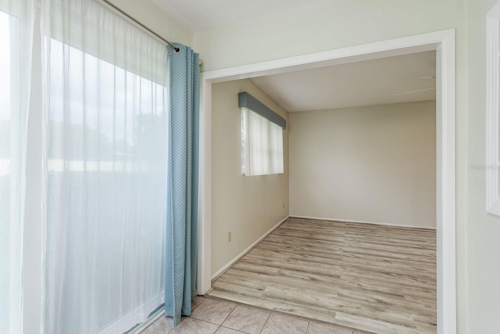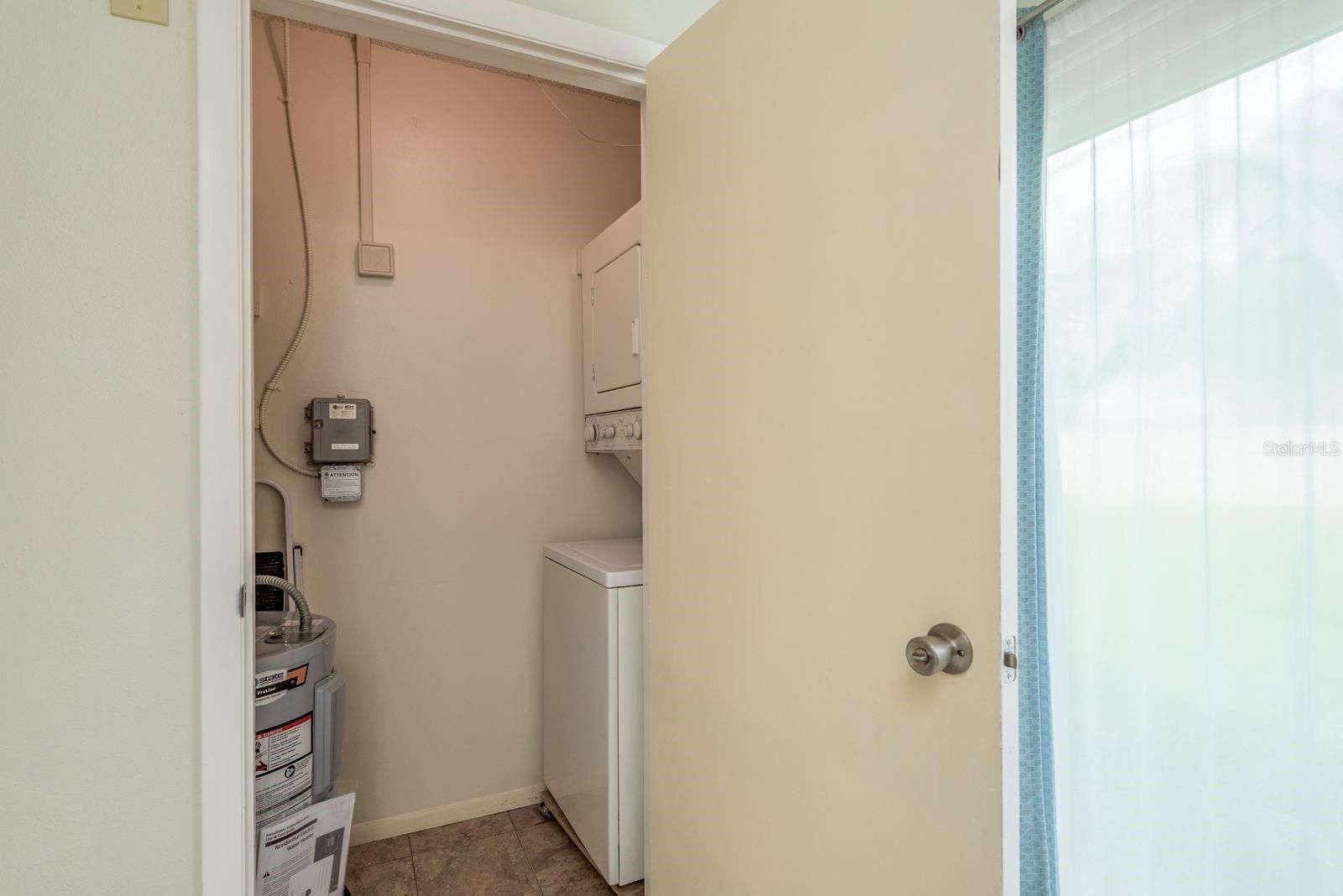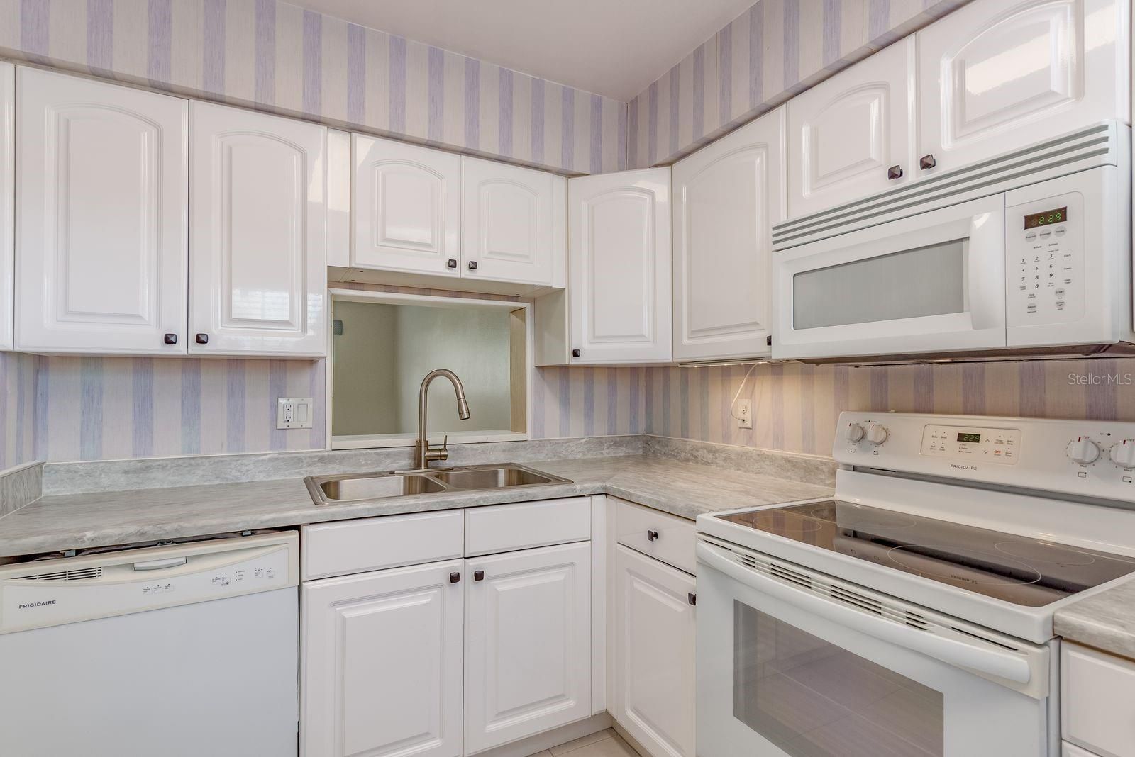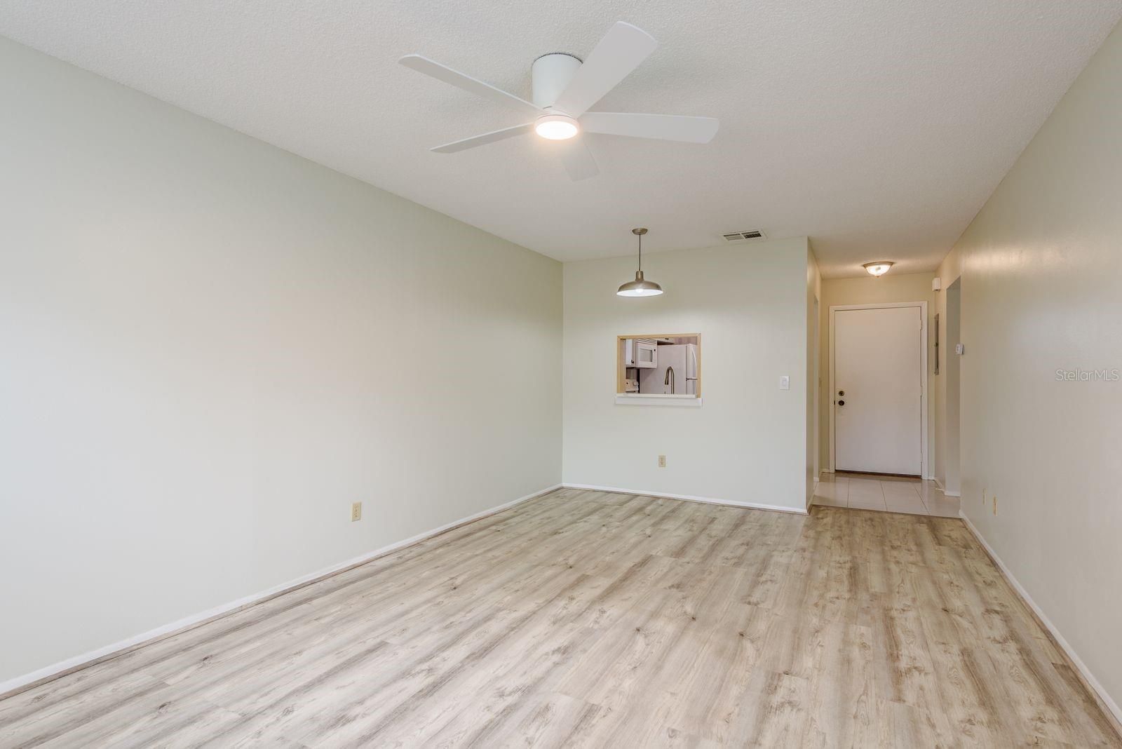 One or more photo(s) has been virtually staged. Welcome to this beautifully maintained 1-bedroom, 1-bath villa style condo located in the sought-after Pinehurst Village, a manicured 55+ community offering a maintenance-free lifestyle in the heart of Dunedin. Tucked away at the end of a quiet cul-de-sac, this unit provides both privacy and tranquility, with a serene backyard green space view from the enclosed bonus room. Inside, you'll find numerous recent updates including luxury vinyl flooring throughout, hurricane-impact windows and sliding door, new countertops and appliances, a recently installed hot water heater, a renovated bathroom, upgraded electrical panel, newer fans/lighting, and kitchen sink/faucet. The roof was replaced in 2024, and the in-unit laundry closet with washer and dryer adds extra convenience. The HVAC system is maintained bi-annually. Freshly painted interior! The attic is easily accessible for storage and has recent added insulation! Your assigned covered parking spot is located directly in front of the unit, making access easy and hassle-free. Community amenities include a heated pool, clubhouse, shuffleboard courts, and an outdoor grilling area with picnic tables, ideal for gatherings and socializing with neighbors. This prime location places you just minutes from downtown Dunedin, the Dunedin Marina, Community Center, Dunedin Fine Arts Center (DFAC), TD Ballpark featuring Toronto Blue Jays Spring Training, and the scenic Dunedin Causeway leading to Honeymoon Island State Park. Whether you're seeking a seasonal retreat or a full-time Florida residence, this move-in ready villa offers the best of easy living and coastal charm.