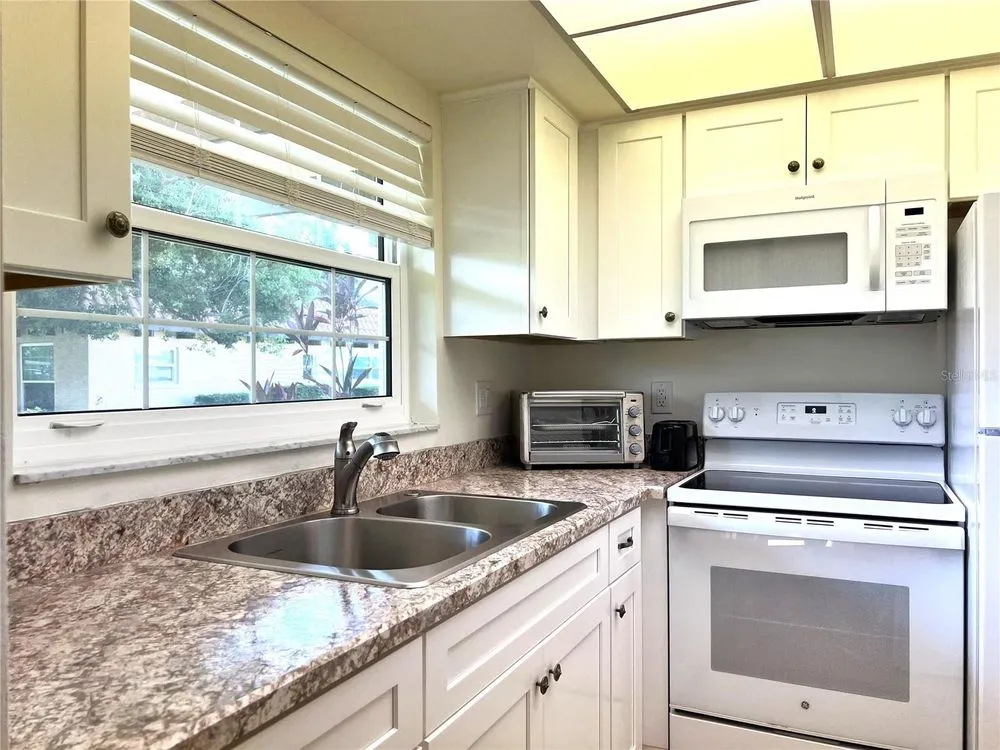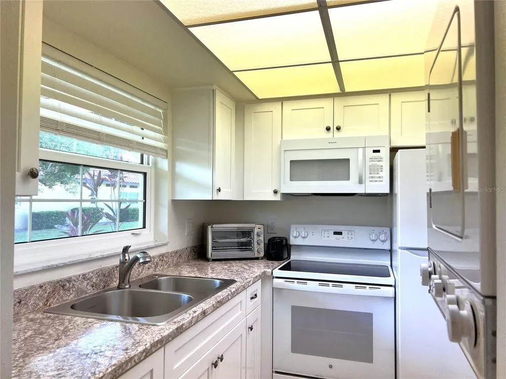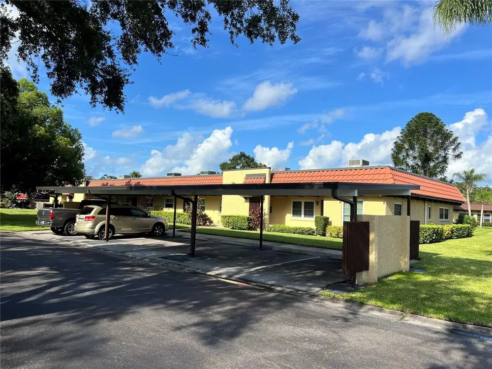 Fantastic Value! Plus, condo fees paid through the end of 2025! Welcome to Pinehurst Village, a very well-maintained 55+ community in Dunedin FL. Just minutes from the Intercoastal waterfront parks, marina, and downtown Dunedin, this 1 bedroom 1 bath villa is perfectly situated for someone looking for tranquility and easy access to everything beautiful historic Dunedin has to offer. This meticulously cared for villa offers updated impact windows, an updated electrical panel, in-unit washer and dryer, a bonus Florida room and a designated covered parking space. The open floorplan flows from the dining room, through the living room and into the Florida room and the east/west direction allows plenty of sunlight to fill the space. The large bedroom offers two closets for added storage space. There are additional closets in the bathroom and living room as well. The kitchen offers plenty of cabinet space, ample natural lighting, a built-in closet pantry and your indoor washer/dryer unit. The community is equipped with a club house, an oversized heated swimming pool, shuffleboard courts and an outdoor community grilling area for large gatherings. The lush greenery and mature trees make Pinehurst Village scenic and peaceful place to live. Located just blocks from the Dunedin Fine Arts Center, Dunedin Showcase Theater, Highlander Park, and a few minutes from waterfront parks and the Pinellas Trail. Walk, bike and enjoy the Dunedin waterfront! Take advantage of outings with friends and family in downtown Dunedin at one of the many restaurants, shops, and breweries or take in one of the annual Dunedin festivals. All of this within 2 miles of your front door. Don't miss out on this villa and make it your winter spot or year-round residence.
