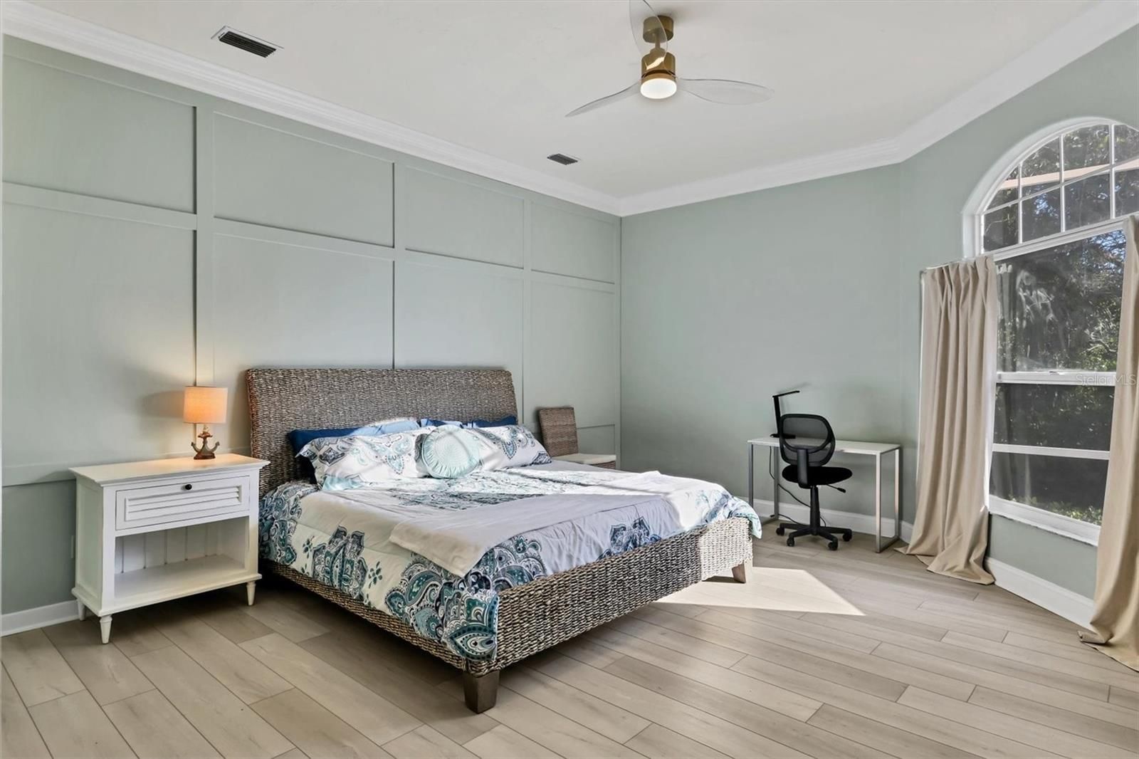 - Ceiling Fan(s), Eat-in Kitchen, High Ceilings, Living/Dining Room, Main Level Primary, Thermostat