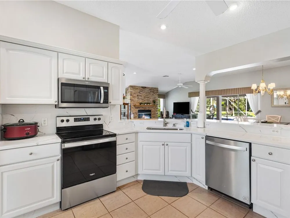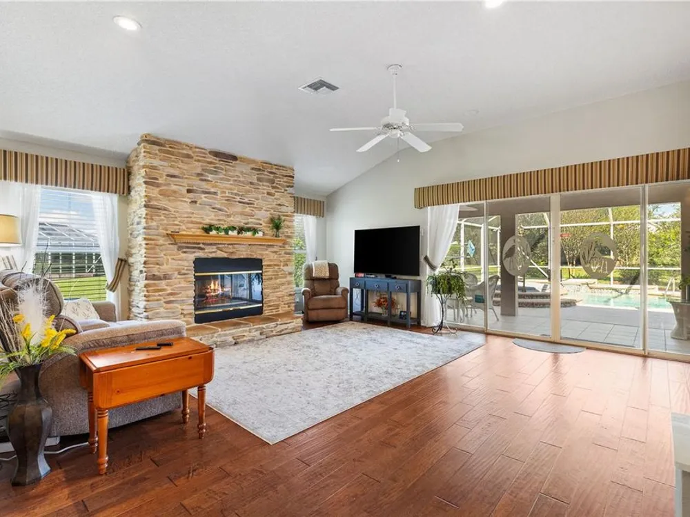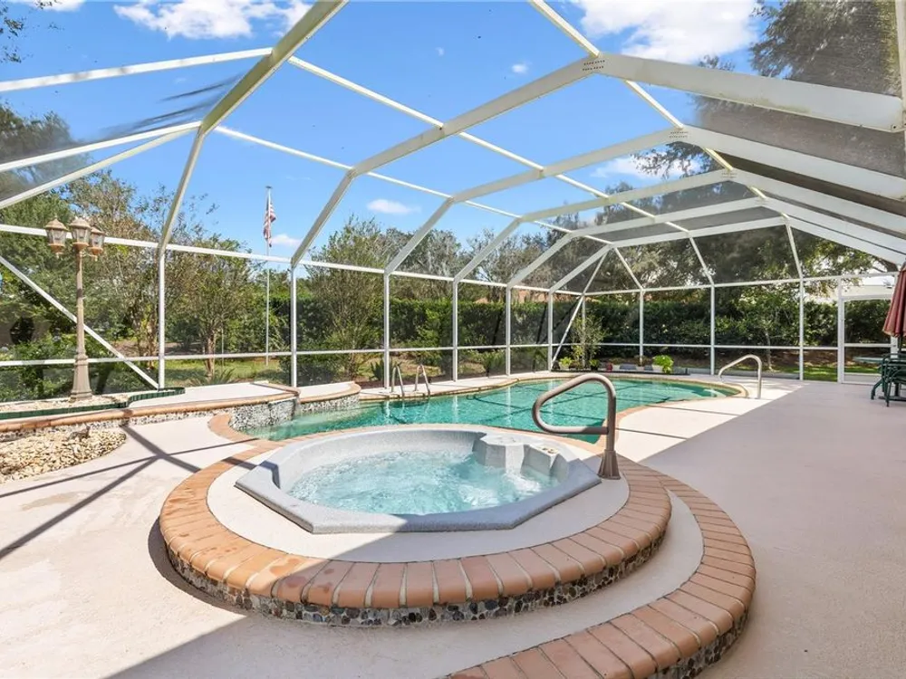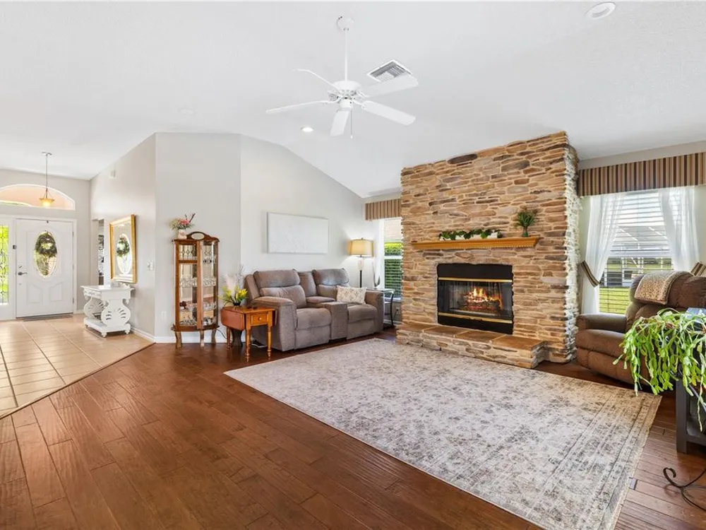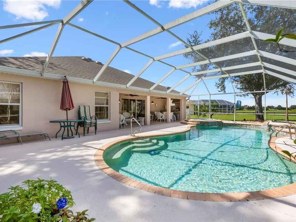 NO BOND | OVERSIZED LOT | SALTWATER POOL & INGROUND SPA | FURNISHED on a Cul de Sac. This stunning 3/2 GARDENIA FLOORPLAN HOME in The Village of Woodbury on an oversized lot offers privacy, space, and direct views of the Turtle Preserve. Recent upgrades include a NEW ROOF (2021), A/C (2024) . The backyard features a gas-heated saltwater pool with spa, NEW POOL PUMP (2025), POOL HEATER (2023), and SUMMER KITCHEN QUARTZ countertops and backsplash, STAINLESS STEEL appliances, a large breakfast bar, and pull-out shelving in the kitchen. The living area offers a GAS FIREPLACE, engineered hardwood floors, and vaulted ceilings. The primary suite includes two walk-in closets, a linen closet, new carpet (2024), and a renovated en-suite bath with quartz counters, dual sinks, and tiled walk-in shower. A split floor plan ensures guest privacy with two additional bedrooms and an updated bath. Smart-home features include a Wi-Fi thermostat and garage door opener. Additional highlights: INTERIOR LAUNDRY, attic storage, GUTTERS, new interior paint (2021) Lawn and pool service are prepaid through February 2026. Located near the First Responders Rec Center, Nancy Lopez Country Club, Mulberry Grove Rec Center, Chatham Rec Center, shopping, dining, grocery stores, and the VA Center. This home combines privacy, convenience, and upgrades for true Florida living. Video tour on YouTube