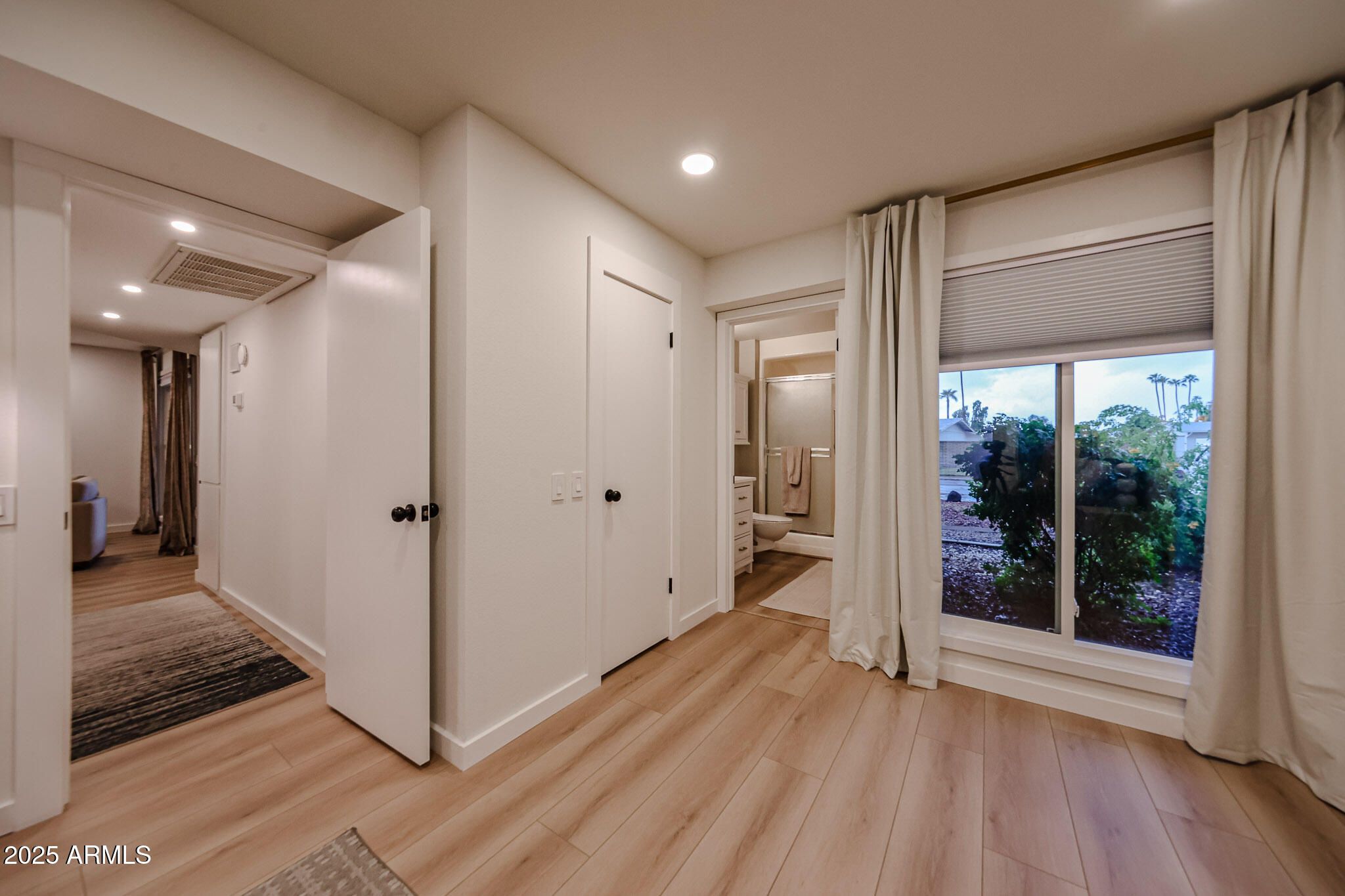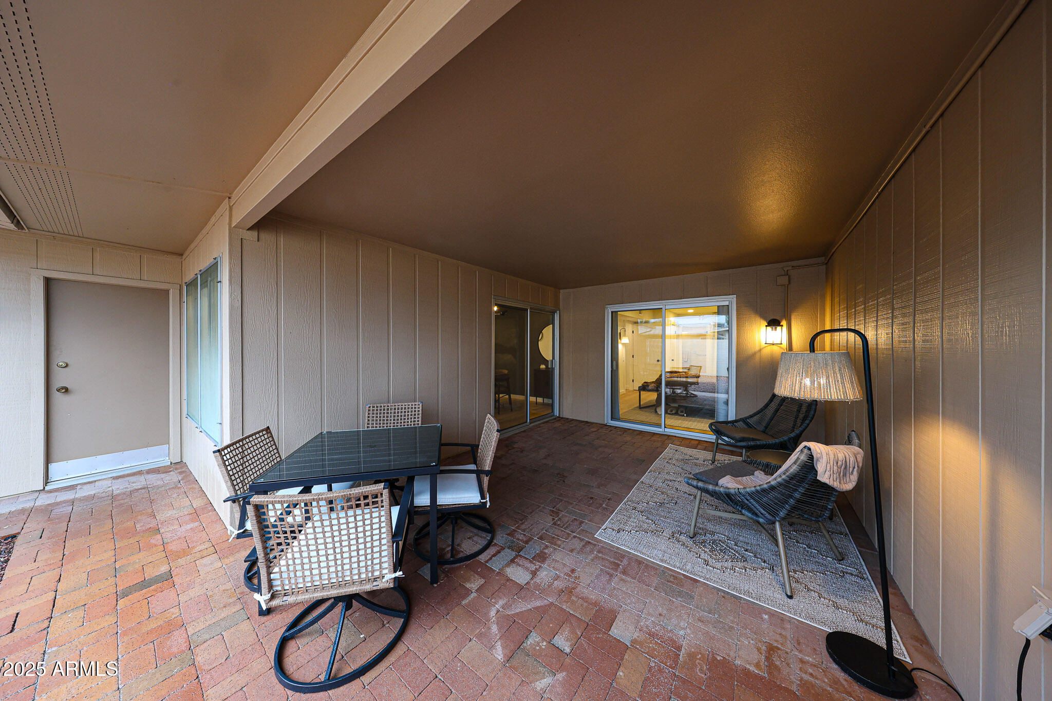 Beautiful patio home. with great outdoor space. New HVAC in 2024. New roof (HOA) 2021. New energy efficient windows in LR and both BRs 2024. New high-end waterproof rigid core luxury vinyl flooring in 2025. Spectacular upgraded lighting, trim and outlets/switches 2024. New window treatments including power shades 2025. Bathrooms updated in 2025. New WiFi garage door opener 2025. One-year home warranty included. HOA covers roof, ext maint, garbage, water, sewer, and pest control. Within RCSC area which includes 7 rec centers. Bell and Marinette centers are very close. Multiple golf courses. Exciting location near Arrowhead mall and P83 entertainment district. 55+ community. 2 pets allowed 40 lb limit. NO RENTALS. Owner/Agent licensed Realtors in Arizona.