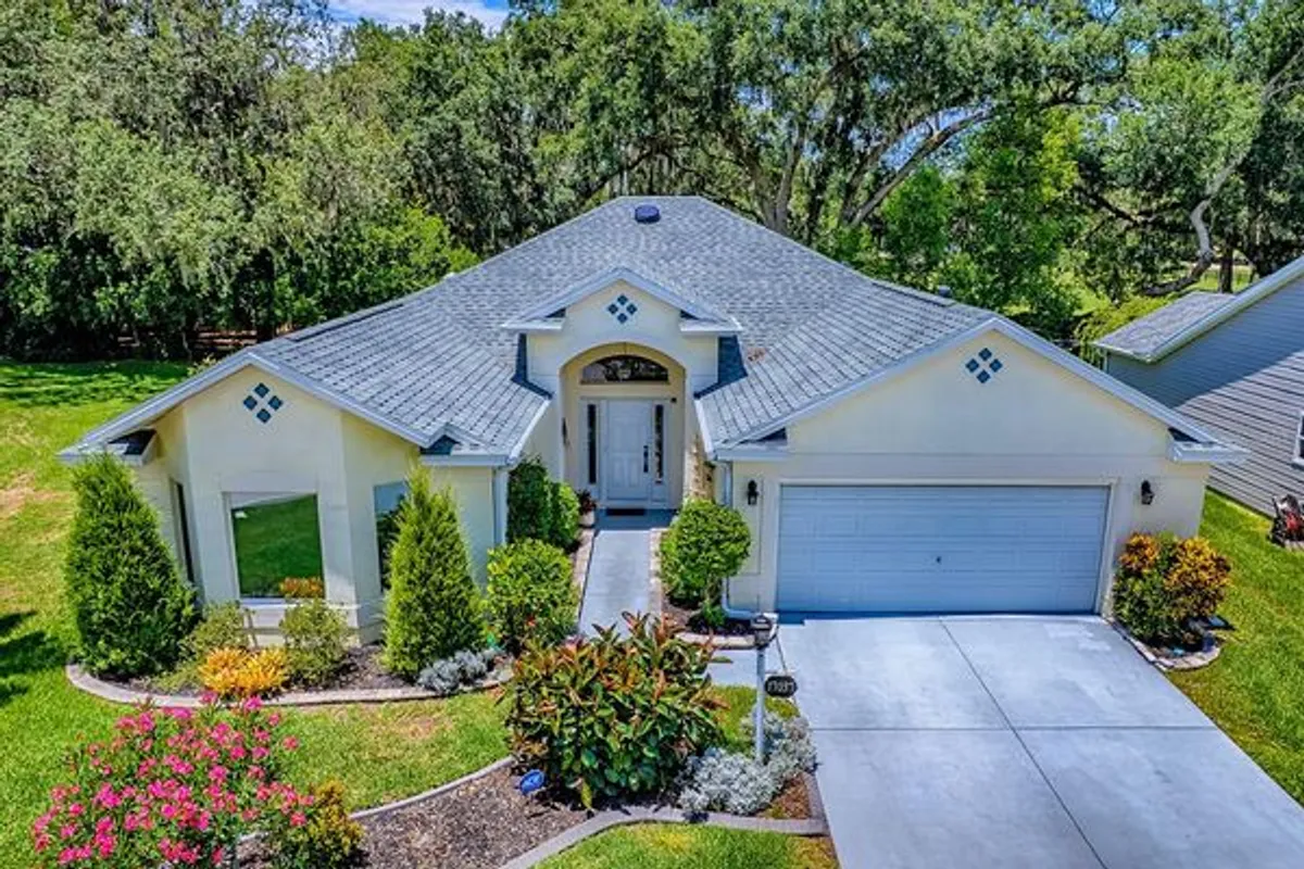 New Price!! New Staging & Photos! ~•New ROOF 2021•~ Live Oaks & Peaceful Paths – A Nature-Lover’s Dream in The Villages. Tucked away on a QUIET CUL-DE-SAC in Calumet Grove, this 3 bed 2 bath CUSTOM LANTANA offers comfort, style, and a VIEW you’ll NEVER TIRE OF! The PRIVATE backyard has access to a SCENIC path and VIEW of a PASTURE—complete with GRAZING HORSES—while Live Oak trees provide shade and beauty. (The house backs up to Chatham Acres Luxury Estates.) You'll also see PLENTY of Beautiful BUTTERFLIES! Enjoy the OPEN layout with VOLUME ceilings, BULL-NOSE corners, and DIAGONAL TILE flooring (freshly STEAM cleaned) throughout (no carpet). The spacious kitchen features CORIAN solid-surface counters, white raised-panel cabinets, tiled-front breakfast bar with pendant lighting, plus a RARE LARGE WALK-IN CLOSET PANTRY! PLENTY of PULL-OUT Shelves in the ABUNDANT Cabinets. GAS HOOKUP behind the electric stove. Stainless FRIDGE NEW in 2022. Step into the ENCLOSED LANAI with a FABULOUS VIEW, or out to the LARGE PATIO with GRILL and FIRE PIT—perfect for entertaining, relaxing and STARGAZING. There’s ROOM for a POOL on the west side. The primary suite features a VERY LARGE walk-in closet, and en-suite bath. The BRIGHT primary bathroom has DUAL sinks, a WALK-IN shower AND a SOAKING TUB w/Jets. BOTH guest bedrooms have built-in closets and tile flooring. The large front guest room has BAY windows. The second guest room has TWO BUILT-IN closets. Very LARGE INDOOR laundry room w/LG ThinQ Washer & Dryer. EXPANDED garage, PULL-DOWN attic access stairs in the garage. ROLL-DOWN GARAGE SCREEN. WHOLE-HOUSE water filter system—this home checks all the boxes! The LOW BOND payoff ($2,425) makes it even more attractive. Other features: CENTRAL VACUUM system, WHOLE-HOUSE water filter system, Fresh INTERIOR PAINT in Great Room. Call today for a Private Showing. Great location that is easy in and out of The Villages w/light traffic even in Peak Season! Close to the FABULOUS, NEW “First Responders” Recreation Center with Walk-in Pool, Pitch-N-Putt Golf Course, PICKLEBALL, and MORE! Close to Nancy Lopez Country Club, Several Pools (Adult & Family) and Mulberry Grove Rec Center. Shopping, Banking, Restaurants and the VA Center are nearby! Tax line reflects property taxes only, and is estimated. Bond Assessment is $394.54/year. (LOW Bond Payoff is $2,425.36.) Current Maintenance Assessment is $856.71/year. Current Fire Dept. $199.91/year. Note: Square footage information is taken from the Public Record and is deemed reliable, but not guaranteed. Room and garage dimensions are approximate and estimated: buyer to verify. ~••BE SURE TO SEE THE 3D 360º MATTERPORT WALKTHROUGH TOUR AT VIDEO TOUR 2!•~ ~•And see the Custom-Made Floor Plan at the end of the Photos!•~