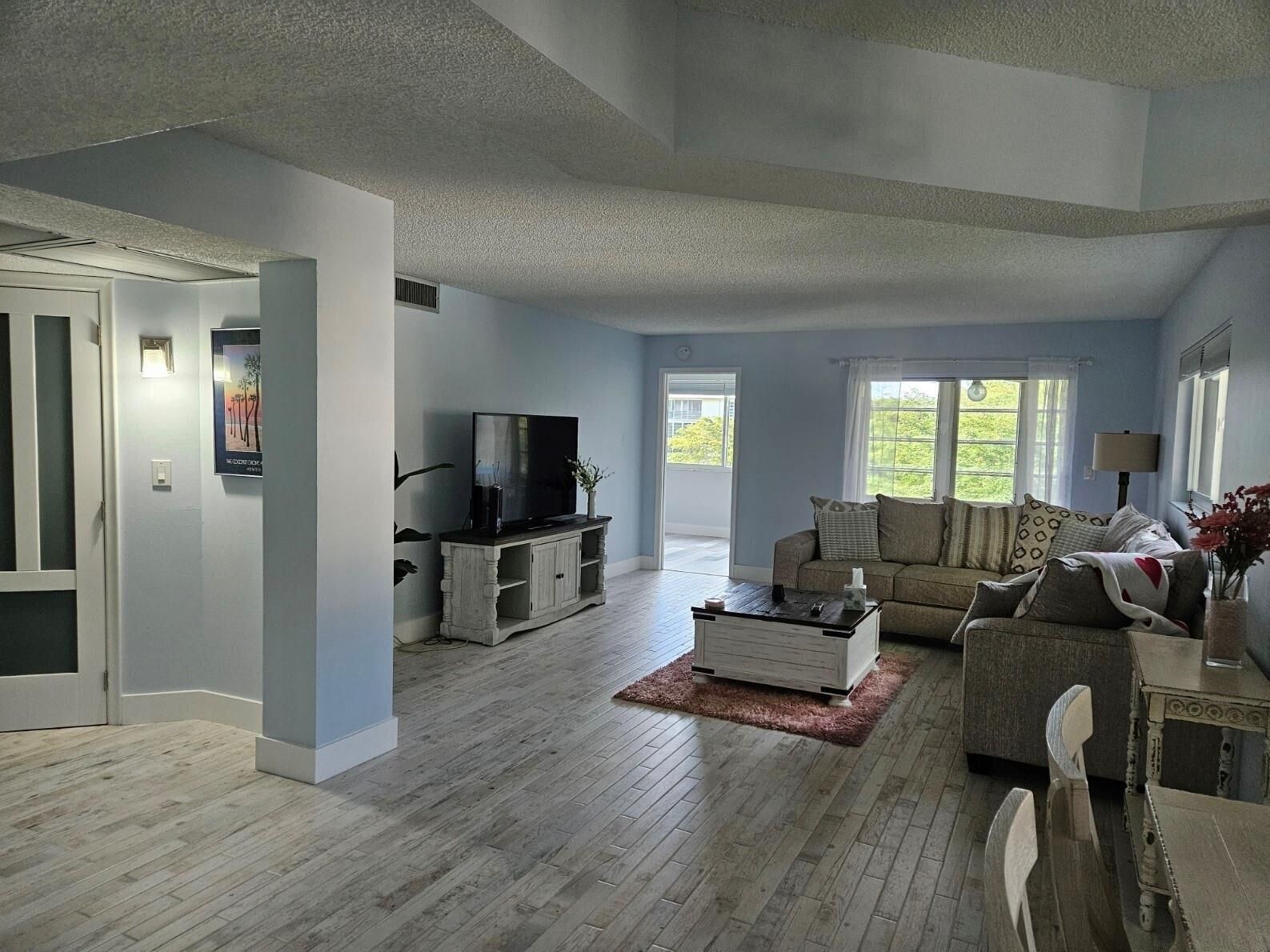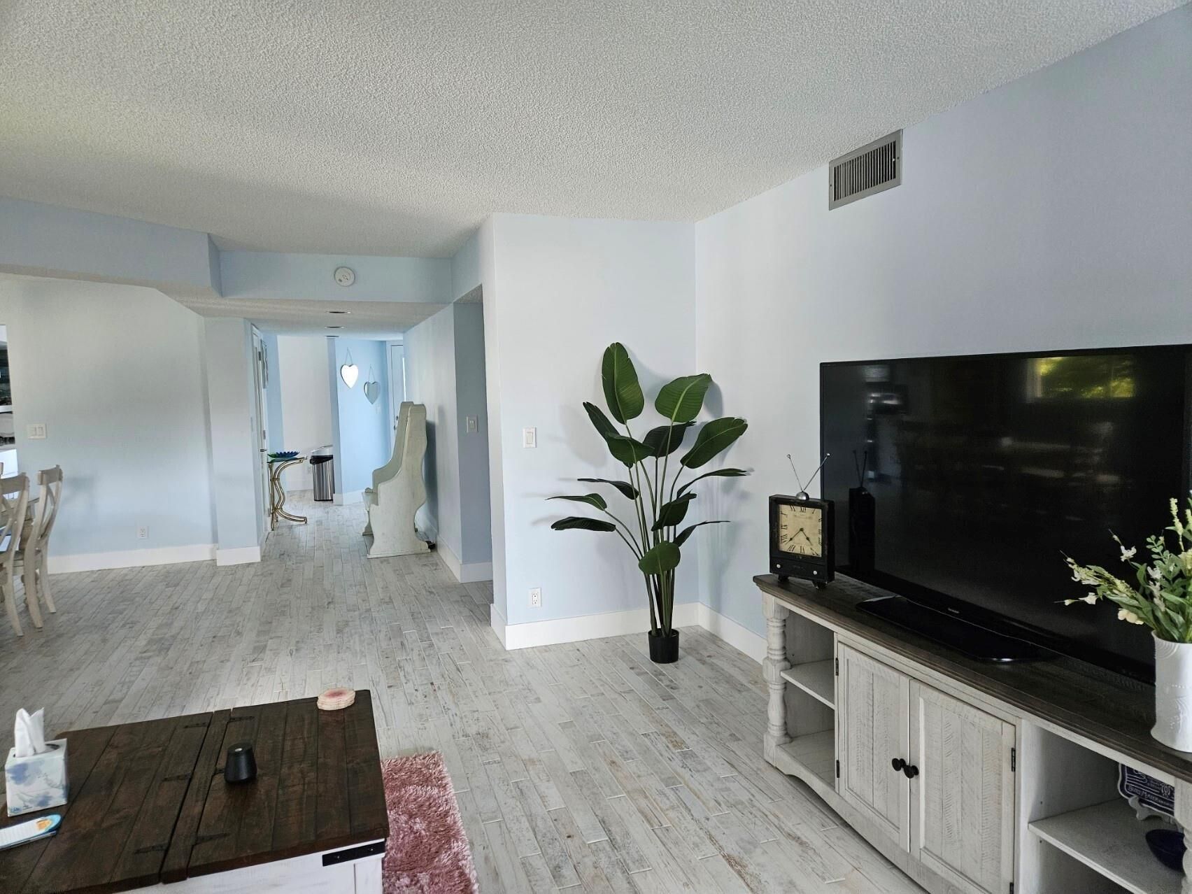 WOW,1 of a kind corner unit on a lake! HUGE Unit! Absolutely stunning w/an upgraded kitchen w/white shaker cabs, Italian Porcelain tile backsplash, Quartz countertops, GE SS kitchen suite. Gorgeous plank Porcelain tile floors in the living areas & luxury vinyl floors in the beds. Newer baseboards are real Pine wood 5.5". Newer IMPACT WINDOWS AND FRONT DOOR. Both bathrooms have been upgraded& new electrical outlets. All new HIGH END interior doors. This beautiful unit is light bright and airy with WINDOWS all along the side giving loads of light in each room. Enclosed patio could be an extra room. This is a Golf Course Comm w/ many clubs, fitness center, theater, tennis, pickeball. Roof is less than 2 yrs old, getting new catwalk, NO ASSESSMENTS!