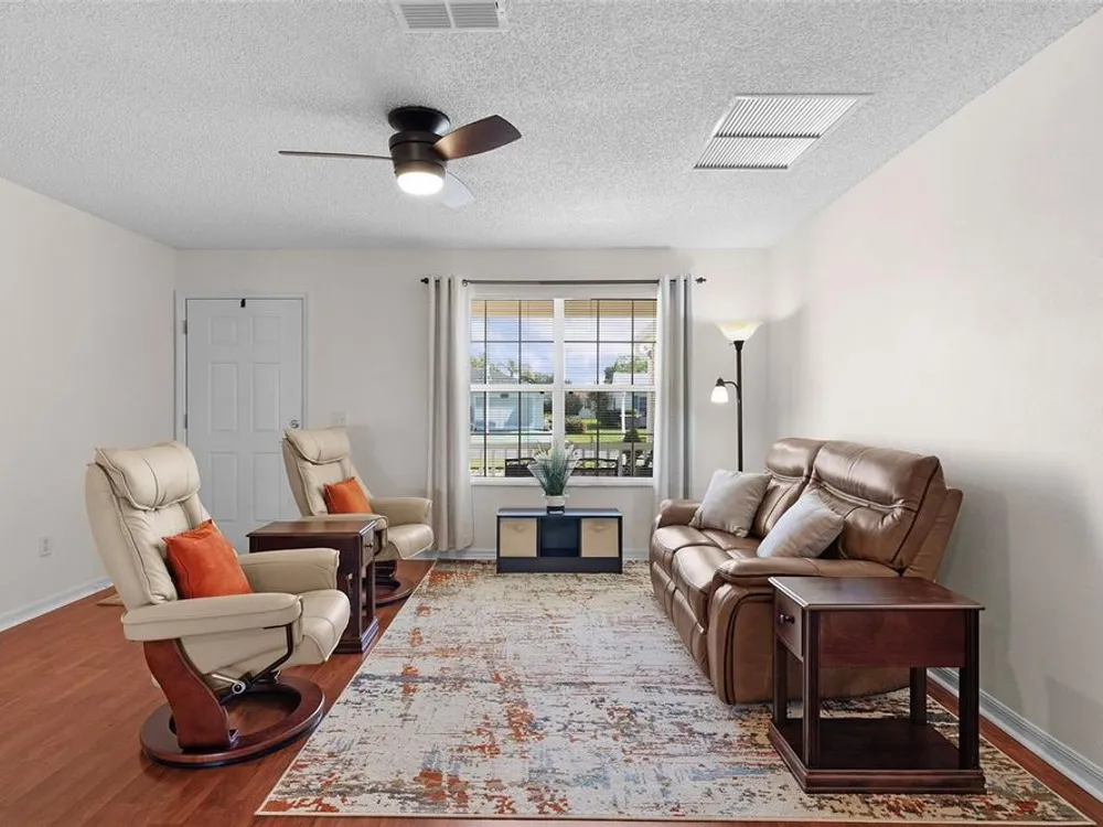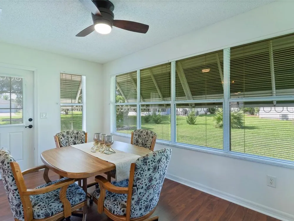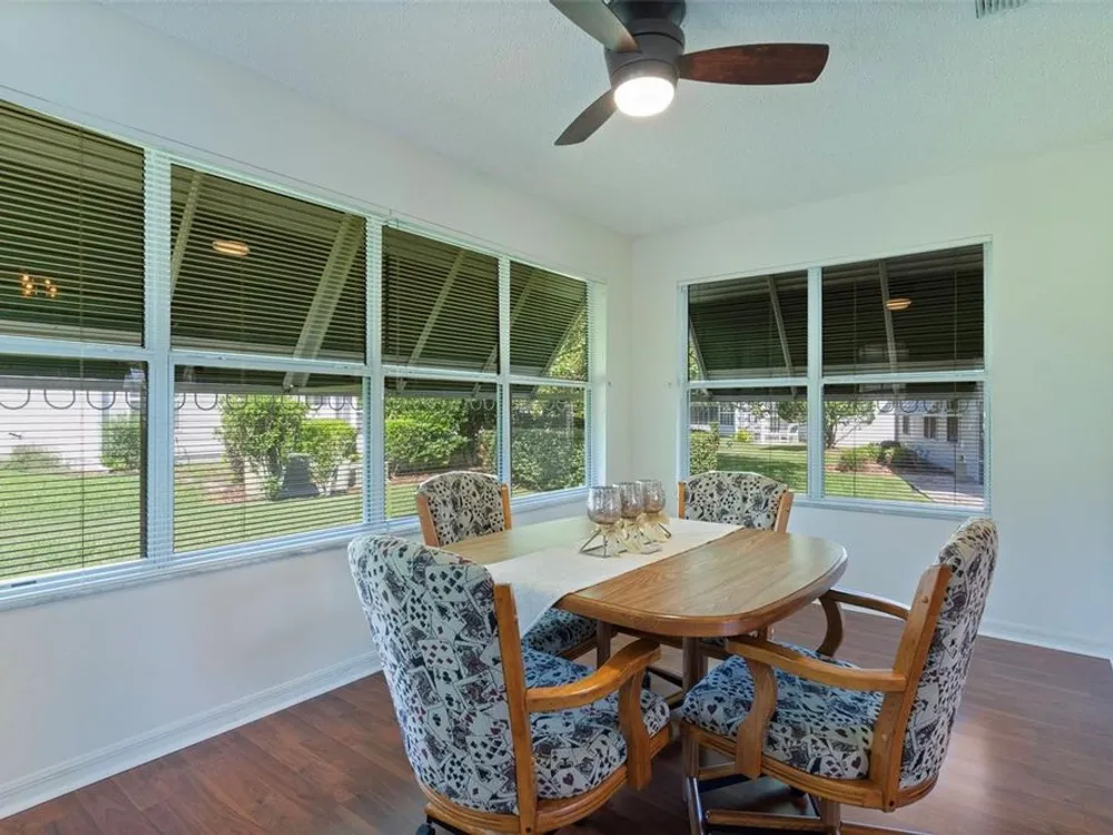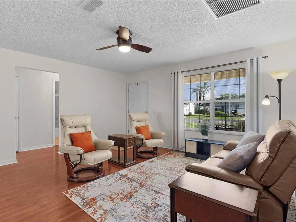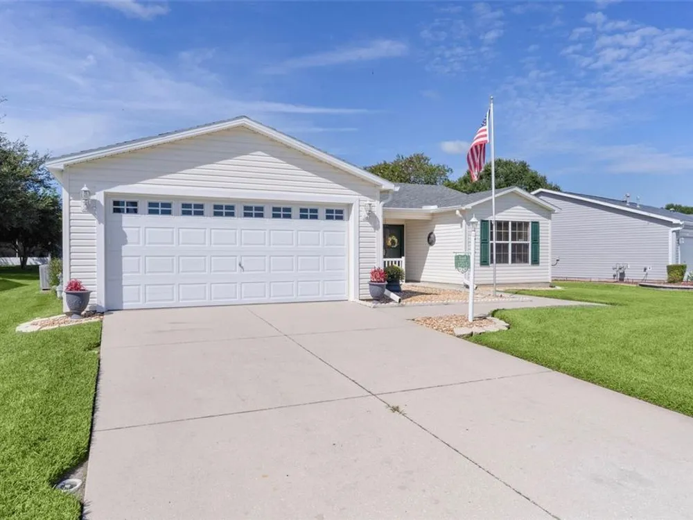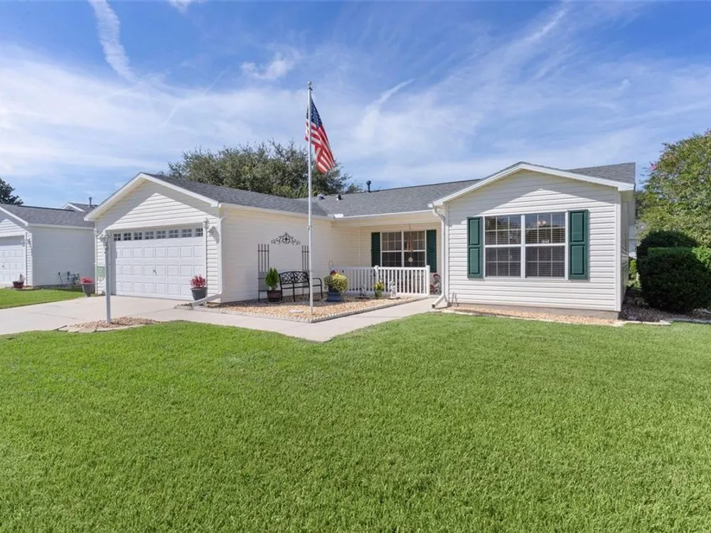 ~$10K PRICE REDUCTION~ ~NO BOND~ ~2020 ROOF~ ~2008 HVAC with NEW MOTOR~ ~FLORIDA ROOM~ Welcome to this charming 3/2 AMARILLO, tucked away in the Village of BELLE AIRE. An inviting front porch opens to a bright entryway and main living area with LAMINATE FLOORS and a new ceiling fan. The kitchen shines with a SOLAR TUBE for natural light, composite sink, upgraded light fixture and a versatile movable ISLAND—ideal for cooking or entertaining. The spacious primary suite offers cozy carpet, a WALK-IN CLOSET, ceiling fan, an UPDATED BATH with SOLAR TUBE, shower bench, NEW FAUCET, deep linen closet, and an oversized vanity with space for a second sink. Both guest rooms feature carpet; one includes a built-in closet and ceiling fan, while the other offers a WALK-IN CLOSET with built-ins. The guest bath provides a shower/tub combo with a NEW HANDHELD SHOWER HEAD, a deep linen closet plus an additional hall closet for storage. Relax in the 15x9 FLORIDA ROOM with ceiling fan, or step out to the back patio, or envision a FUTURE POOL. The INDOOR LAUNDRY ROOM includes a Maytag washer and dryer, cabinets, and ample storage. The hot water heater is a Rheem. Additional highlights are the 2-car garage with built-in workbench, attic stairs, and a SOLAR ATTIC FAN for energy efficiency. Lastly, there are hurricane shutters around the entire home to dampen the heat of the sun. This home is close to Glenview Country Club as well as the Savannah Center for wonderful entertainment. A quick golf cart ride will take you to either Spanish Springs Town Square or Southern Trace Shopping Center where you will find plenty of shopping, restaurants & medical. A perfect balance of comfort and function—this home is move-in ready and waiting for its next chapter!