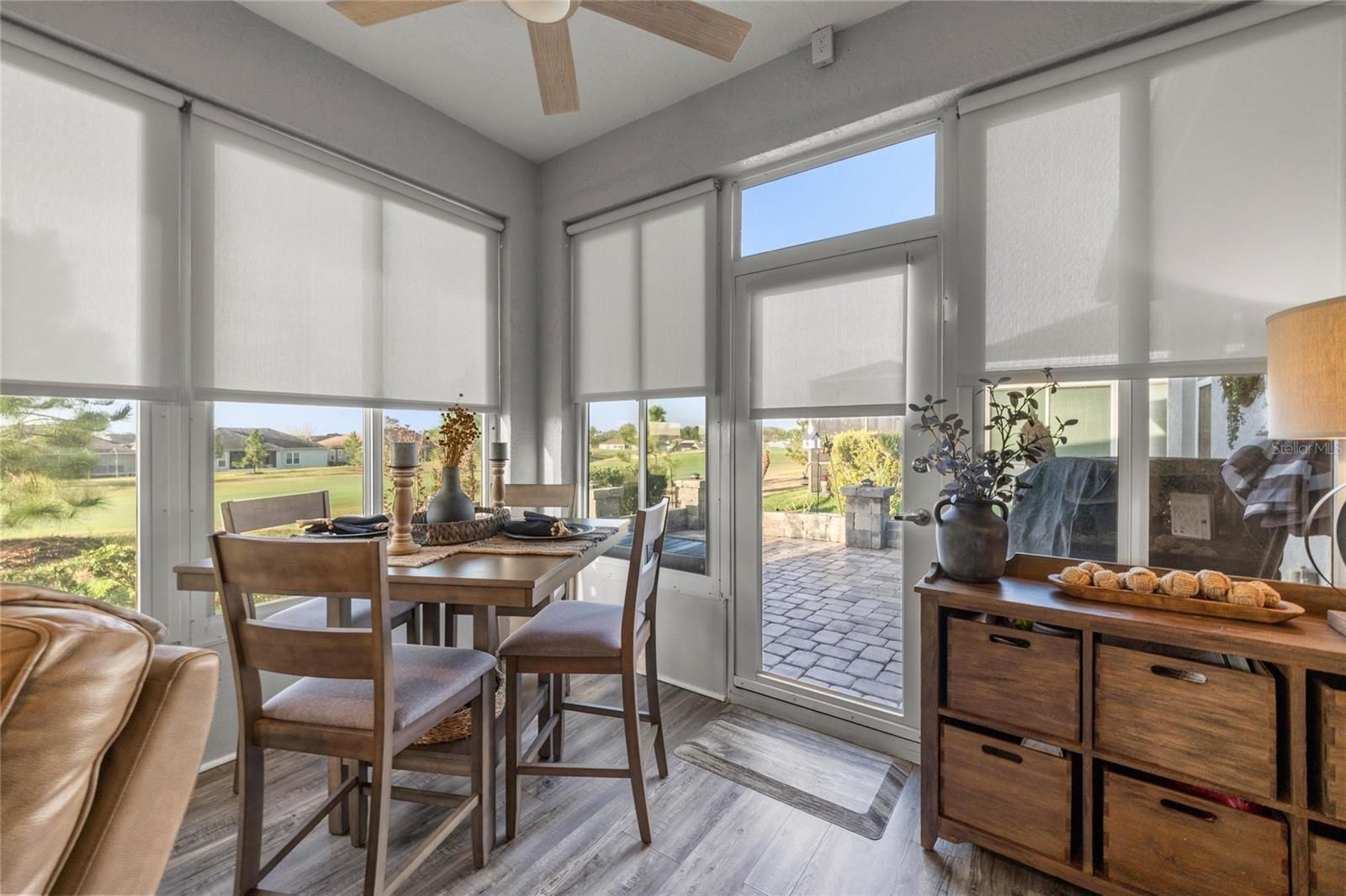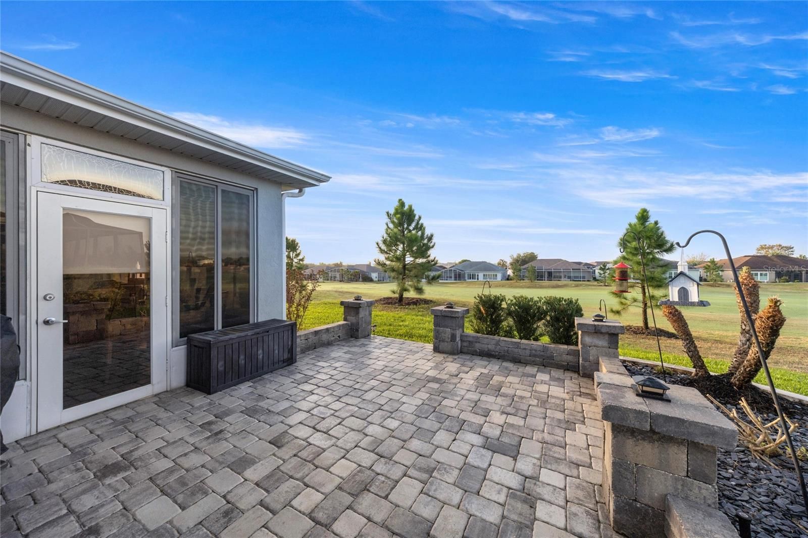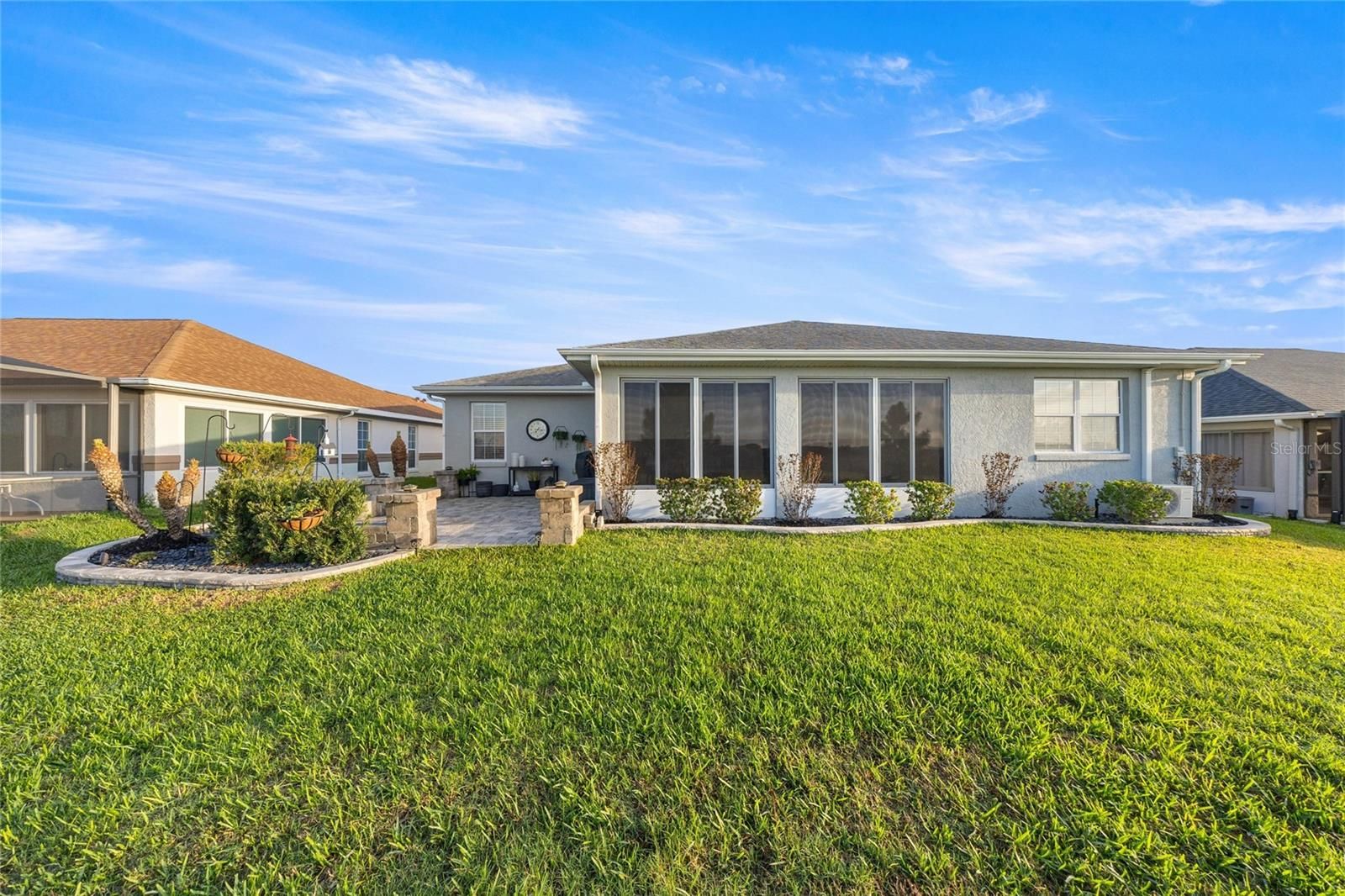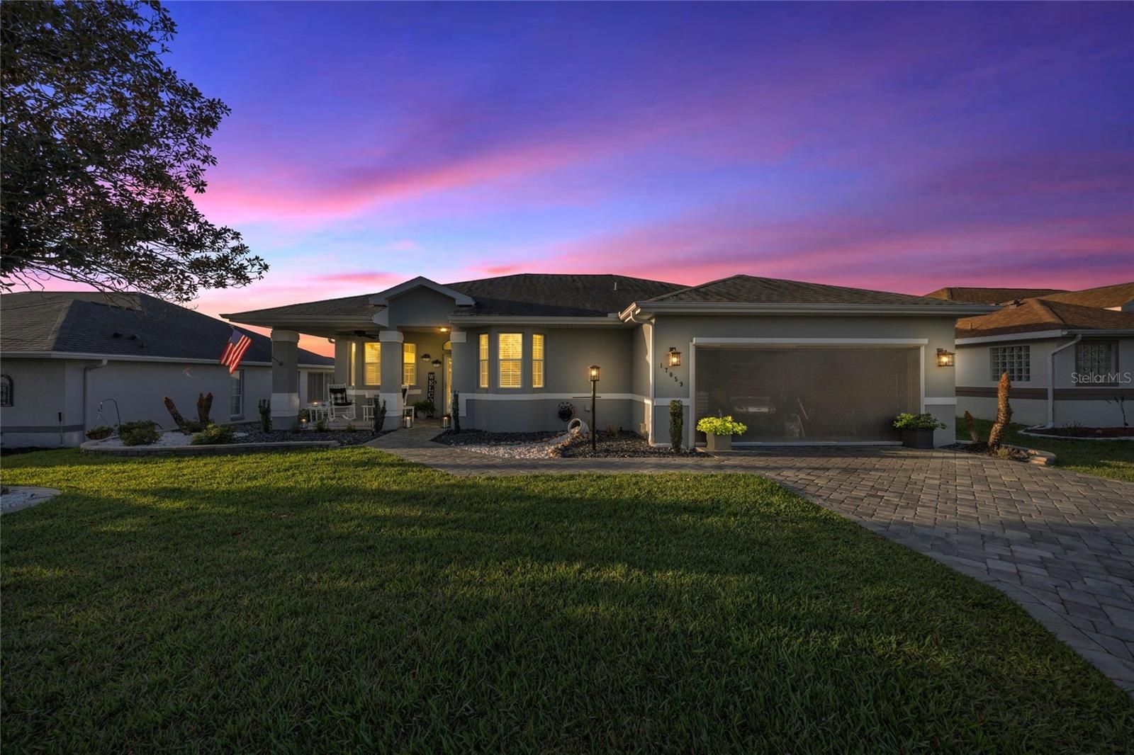 Welcome to 17059 SE 115th Terrace Road in Summerfield, Florida, a beautifully maintained 3-bedroom, 2-bathroom home offering just under 1,800 square feet located inside the gated Stonecrest, a sought-after active adult golf community just north of The Villages. Stonecrest is known for its vibrant lifestyle and amenities including golf, resort-style pools, pickleball and tennis courts, fitness facilities, clubhouse activities, and numerous social clubs, making it a popular destination for buyers seeking active adult homes in Summerfield and Marion County, Florida. Built in 1998 and thoughtfully updated throughout, this home backs directly to the golf course with no rear neighbors, offering privacy and peaceful views. The property welcomes you with updated landscaping, decorative rock beds, and a brick paver driveway leading to a charming brick paver front porch, creating an inviting first impression. Inside, the home features luxury vinyl flooring and abundant natural light, leading into a spacious living room highlighted by a tongue-and-groove accent wall, built-in bookcase, and electric fireplace that creates a warm focal point for everyday living. The recently remodeled kitchen offers quartz countertops, white shaker cabinets, stainless steel appliances, and both overhead and under-cabinet lighting, blending style and functionality. The eat-in kitchen overlooks the front of the home through a large window, creating a bright and welcoming place to enjoy meals while taking in views of the front yard. The Florida room provides additional flexible living space and features motorized blinds and a split-system (a/c), offering a comfortable space to relax while enjoying views of the golf course behind the home. The primary suite offers direct access to the Florida room and includes a beautifully updated bathroom with dual vanities, a standalone shower, and a built-in speaker integrated into the lighting. The primary closet features built-in shelving, and closets throughout the home include motion-activated lighting for added convenience. A split-bedroom floor plan provides privacy for guests, with two additional bedrooms located on the opposite side of the home. One guest bedroom features an oversized walk-in closet that has been creatively converted into a private office, offering flexible space for work or hobbies. A separate dining room adds additional room for gatherings and entertaining. Outdoor living continues with brick pavers extending around the home to a rear open patio, perfect for barbecues or entertaining while enjoying the golf course setting. Major updates include a roof and HVAC system installed in 2018 and a hot water heater replaced in 2021. Additional features include new interior and exterior paint, updated blinds, garage shelving for organization, a painted garage floor, generator wiring, and a 50-amp RV plug. Some furnishings may be negotiable. Located in Stonecrest in Summerfield, residents enjoy convenient access to golf, dining, shopping, medical facilities, and everyday services, all while enjoying the lifestyle that makes 55+ living in Marion County so desirable. If you’ve been searching for an updated golf course home in an active adult community near The Villages, 17059 SE 115th Terrace Road is a property worth seeing.