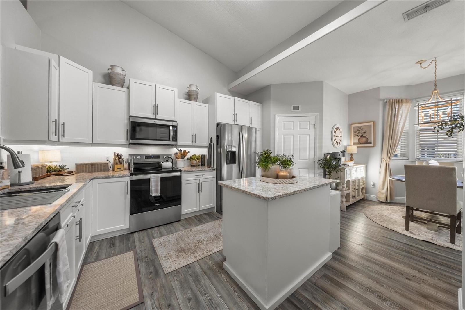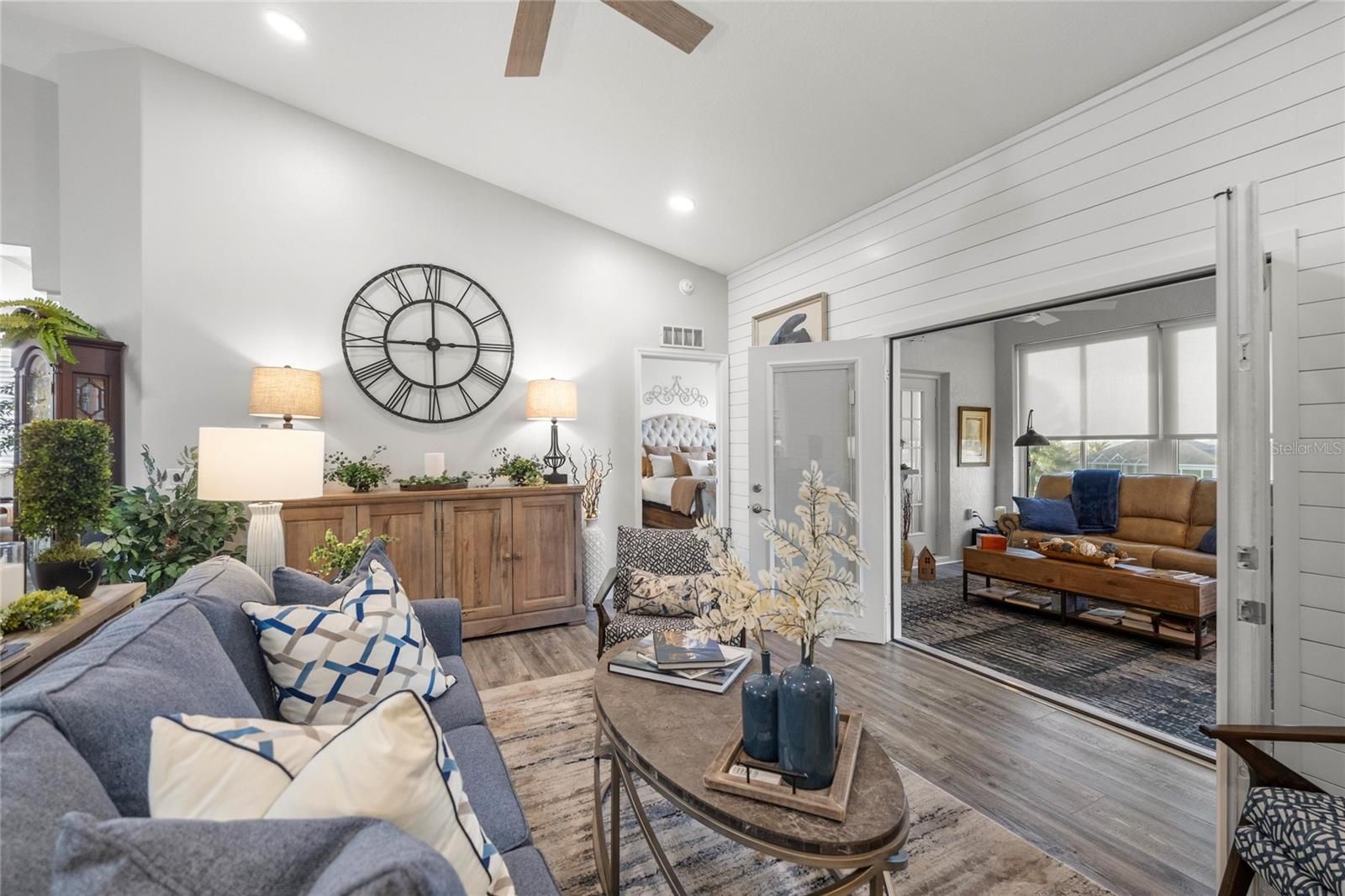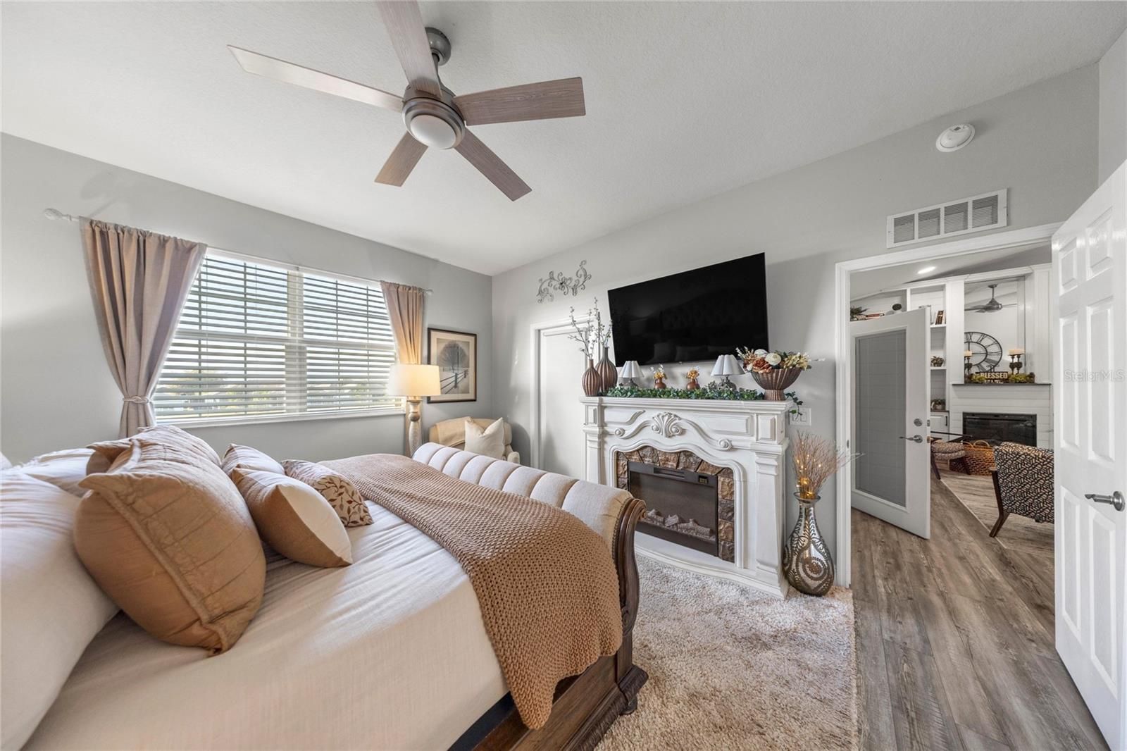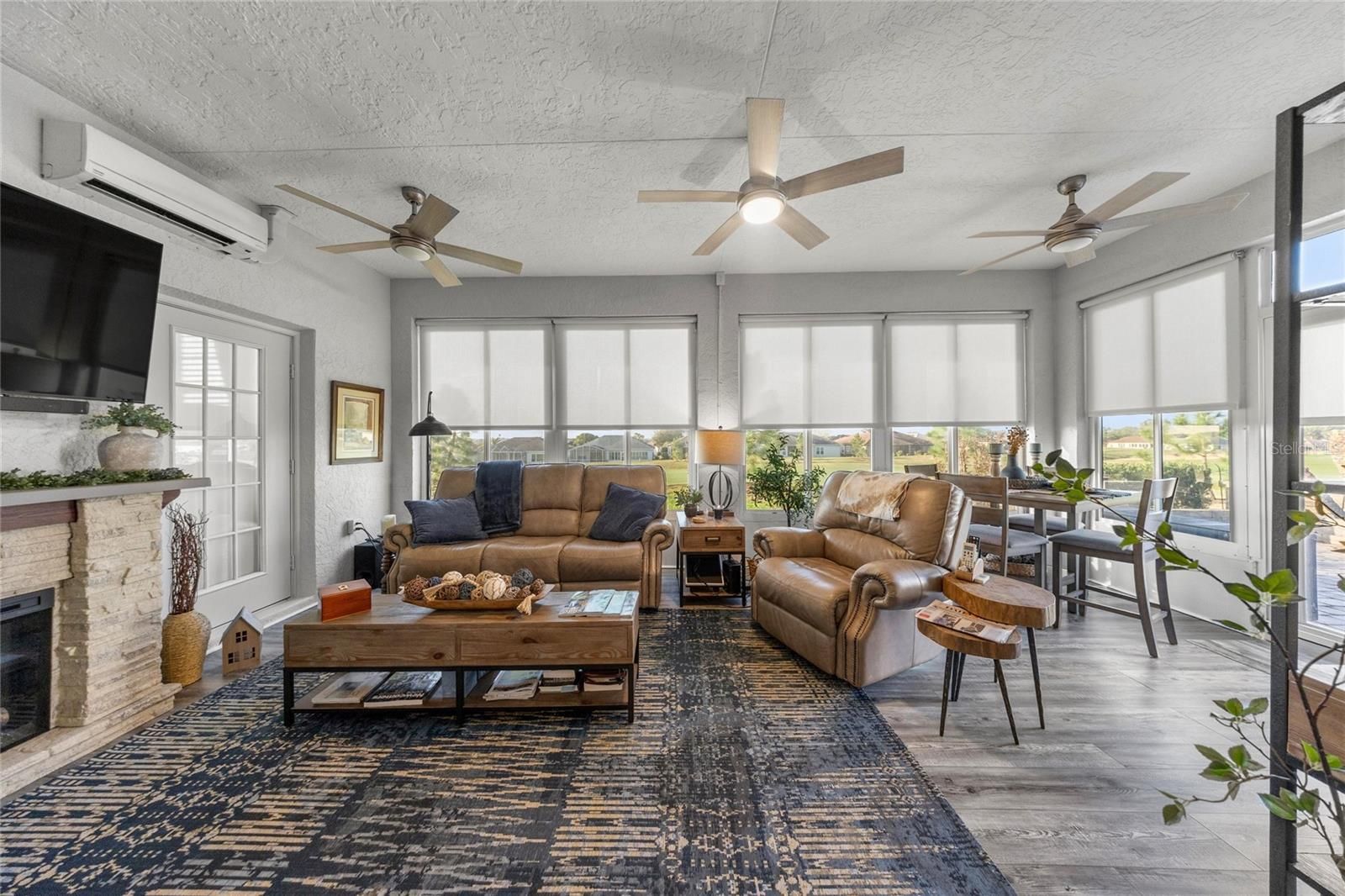 Welcome to 17059 SE 115th Terrace Road in Summerfield, Florida, a beautifully maintained 3-bedroom, 2-bathroom home offering just under 1,800 square feet located inside the gated Stonecrest, a sought-after active adult golf community just north of The Villages. Stonecrest is known for its vibrant lifestyle and amenities including golf, resort-style pools, pickleball and tennis courts, fitness facilities, clubhouse activities, and numerous social clubs, making it a popular destination for buyers seeking active adult homes in Summerfield and Marion County, Florida. Built in 1998 and thoughtfully updated throughout, this home backs directly to the golf course with no rear neighbors, offering privacy and peaceful views. The property welcomes you with updated landscaping, decorative rock beds, and a brick paver driveway leading to a charming brick paver front porch, creating an inviting first impression. Inside, the home features luxury vinyl flooring and abundant natural light, leading into a spacious living room highlighted by a tongue-and-groove accent wall, built-in bookcase, and electric fireplace that creates a warm focal point for everyday living. The recently remodeled kitchen offers quartz countertops, white shaker cabinets, stainless steel appliances, and both overhead and under-cabinet lighting, blending style and functionality. The eat-in kitchen overlooks the front of the home through a large window, creating a bright and welcoming place to enjoy meals while taking in views of the front yard. The Florida room provides additional flexible living space and features motorized blinds and a split-system (a/c), offering a comfortable space to relax while enjoying views of the golf course behind the home. The primary suite offers direct access to the Florida room and includes a beautifully updated bathroom with dual vanities, a standalone shower, and a built-in speaker integrated into the lighting. The primary closet features built-in shelving, and closets throughout the home include motion-activated lighting for added convenience. A split-bedroom floor plan provides privacy for guests, with two additional bedrooms located on the opposite side of the home. One guest bedroom features an oversized walk-in closet that has been creatively converted into a private office, offering flexible space for work or hobbies. A separate dining room adds additional room for gatherings and entertaining. Outdoor living continues with brick pavers extending around the home to a rear open patio, perfect for barbecues or entertaining while enjoying the golf course setting. Major updates include a roof and HVAC system installed in 2018 and a hot water heater replaced in 2021. Additional features include new interior and exterior paint, updated blinds, garage shelving for organization, a painted garage floor, generator wiring, and a 50-amp RV plug. Some furnishings may be negotiable. Located in Stonecrest in Summerfield, residents enjoy convenient access to golf, dining, shopping, medical facilities, and everyday services, all while enjoying the lifestyle that makes 55+ living in Marion County so desirable. If you’ve been searching for an updated golf course home in an active adult community near The Villages, 17059 SE 115th Terrace Road is a property worth seeing.