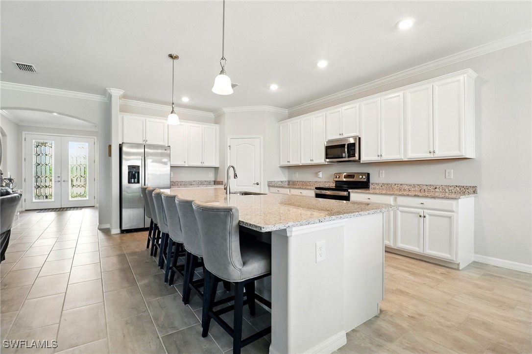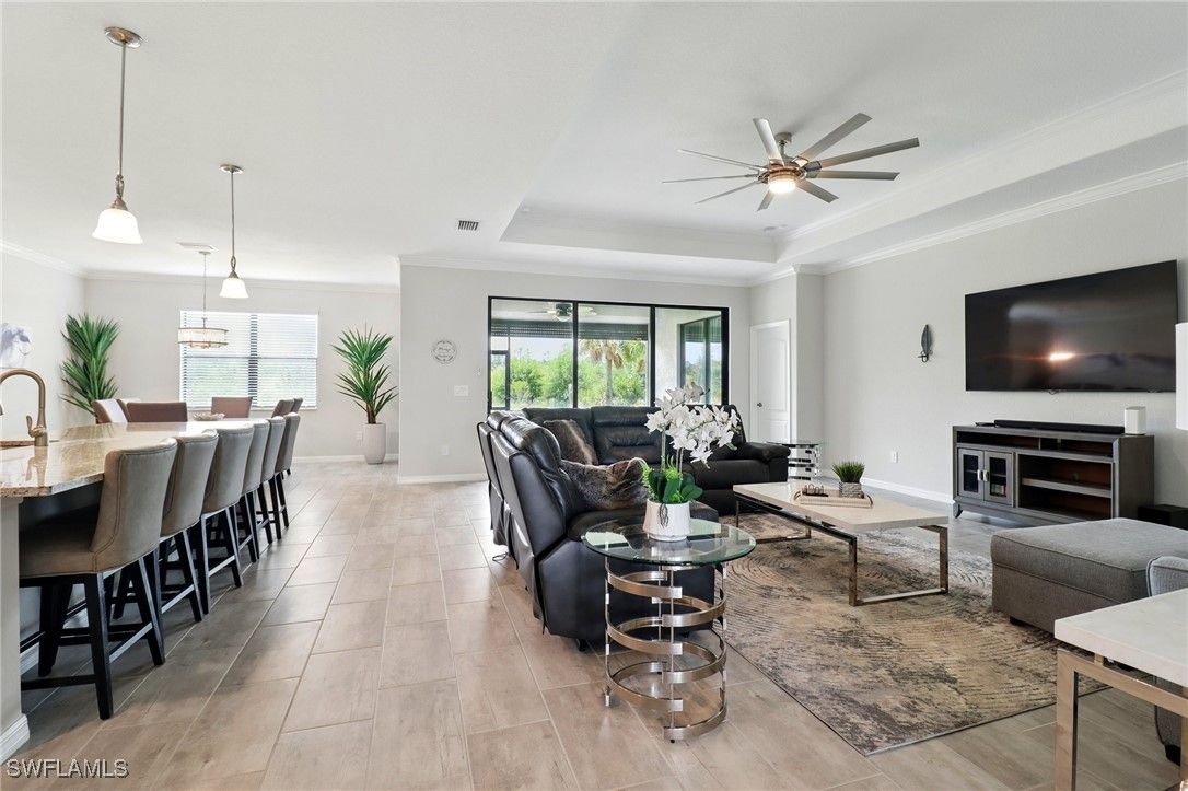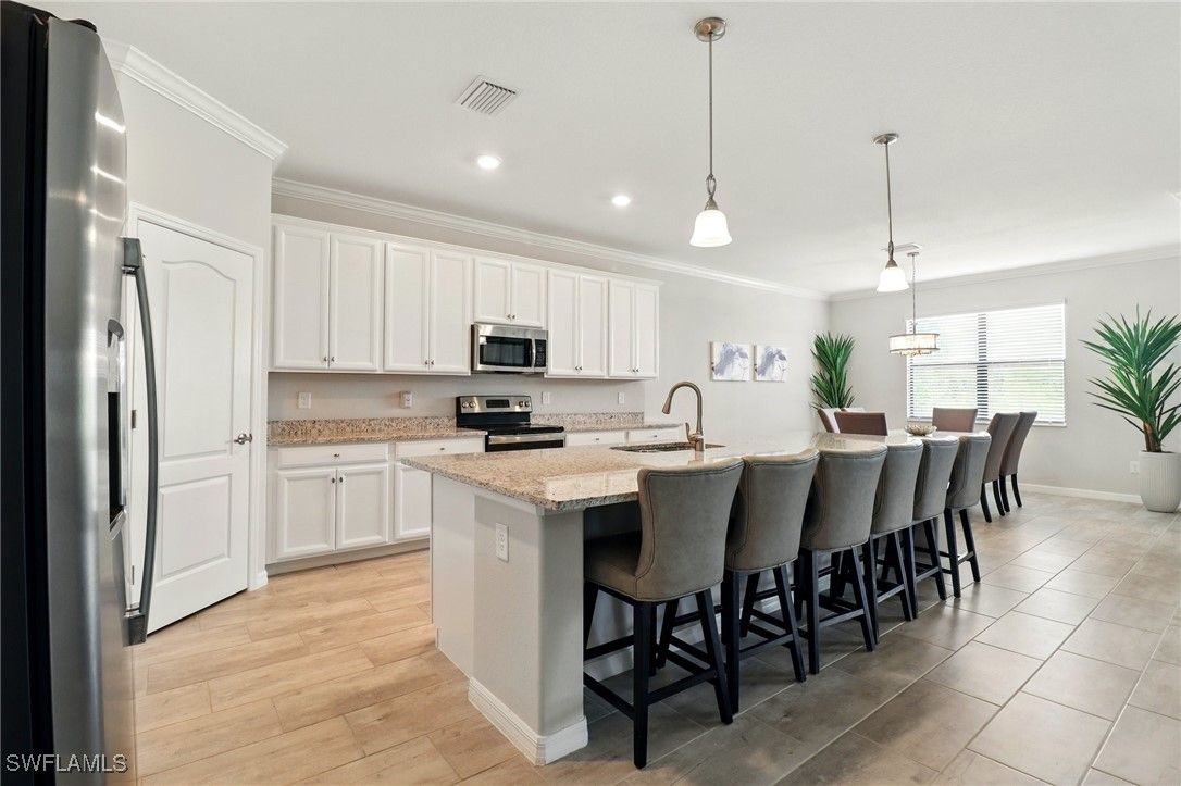 Now priced at $564,564 — one of the best values for a Summerville II in The Place at Corkscrew. Built in 2021, this 3-bedroom plus den, 3-bath home with a 3-car garage offers 2,444 sq ft of open-concept living with preserve views and flexible space — without paying new-construction pricing. The popular Summerville II floorplan features tile flooring throughout the main living areas, a bright gourmet kitchen with shaker-style white cabinetry, granite countertops, stainless steel appliances, and a large center island ideal for entertaining. The spacious great room opens to a screened lanai overlooking a preserve, offering privacy and room to design a custom pool to your preferences. Many buyers choose this floorplan specifically so they can design a custom pool to their preferences rather than paying for one they didn’t choose. The owner’s suite includes lanai access, dual walk-in closets, and a spa-style bath with dual sinks and a walk-in shower. Two additional bedrooms, a full guest bath, and a separate den provide excellent flexibility for guests, home office, or multi-generational living. Residents of The Place at Corkscrew enjoy resort-style amenities, including a grand clubhouse with restaurant and bar, resort pool with waterfalls and waterslide, fitness center, pickleball, tennis, bocce, dog park, and more. Conveniently located minutes from FGCU, Gulf Coast Town Center, RSW Airport, I-75, and US-41. Recently repositioned to reflect current market conditions. Easy to show.