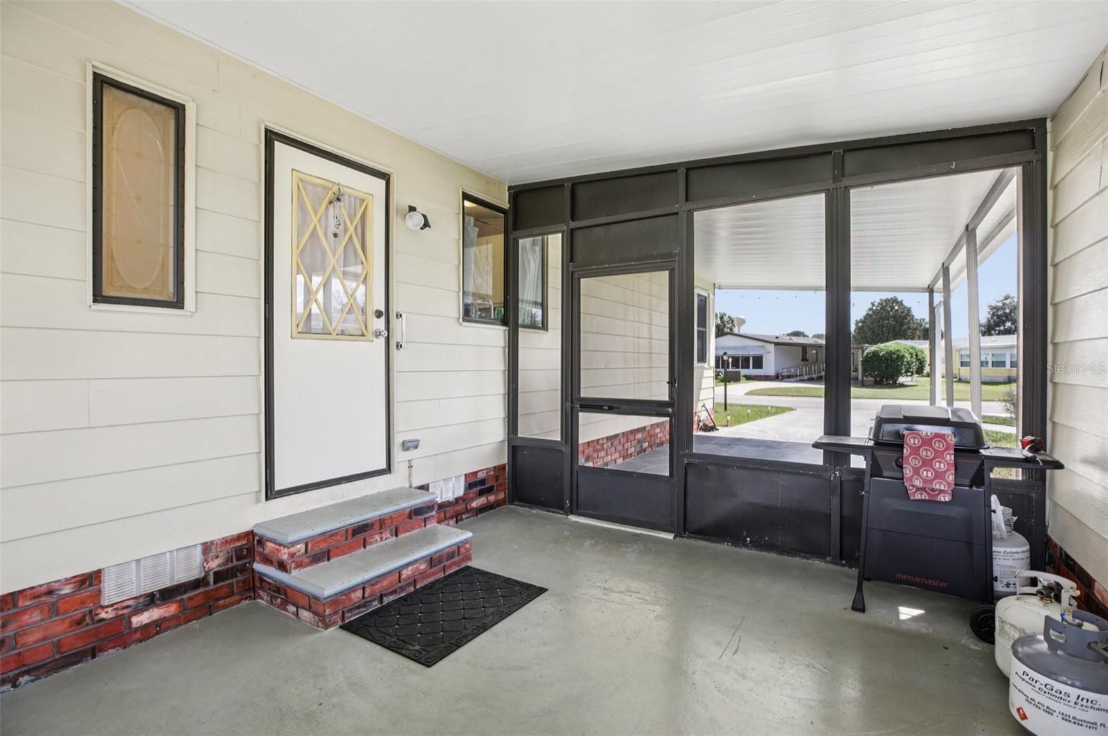 PRICE REDUCTION! ATTENTION GOLF LOVERS!!! Partially Furnished 2/2 GOLF FRONT HOME on a PIE-SHAPED LOT with a GOLF CART GARAGE on the Orange Blossom Championship Golf Course in The Villages!!! Surrounded by MATURE LANDSCAPING, this home is located on a PEACEFUL CUL-DE-SAC on the Historic Side of The Villages. Enjoy BREATHTAKING PANORAMIC VIEWS of one of THE most picturesque golf courses from your back patio or from the Florida Room which has a built-in wet bar and an electric fireplace. New, light gray laminate flooring throughout the home brightens up the entire living space. NO CARPET. There are also newer windows, a newer AC (2022) and water heater (2023). 2009 Yamaha Gas Golf Cart and some furniture are negotiable. Enjoy this piece of paradise and all the WORLD-CLASS AMENITIES that The Villages is famous for: golf, pickleball, tennis, pools, classes and activities at the recreation centers and nightly live entertainment to name just a few! Schedule your private showing today!