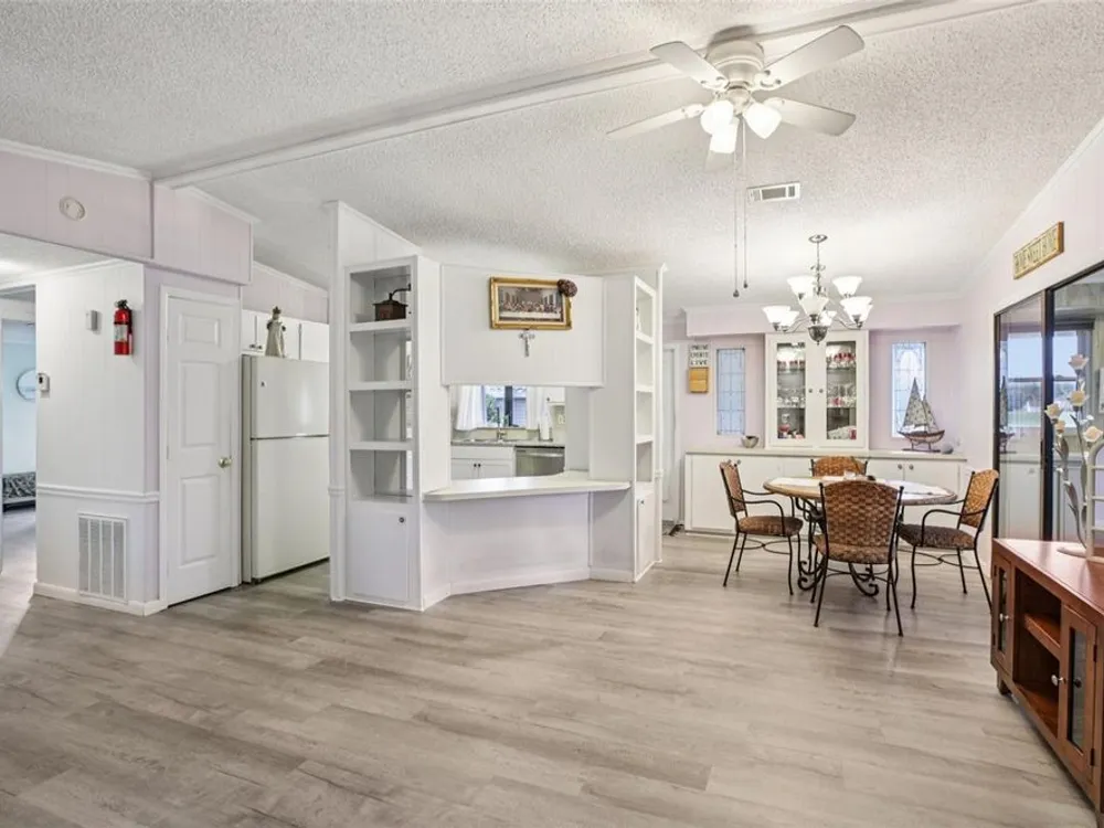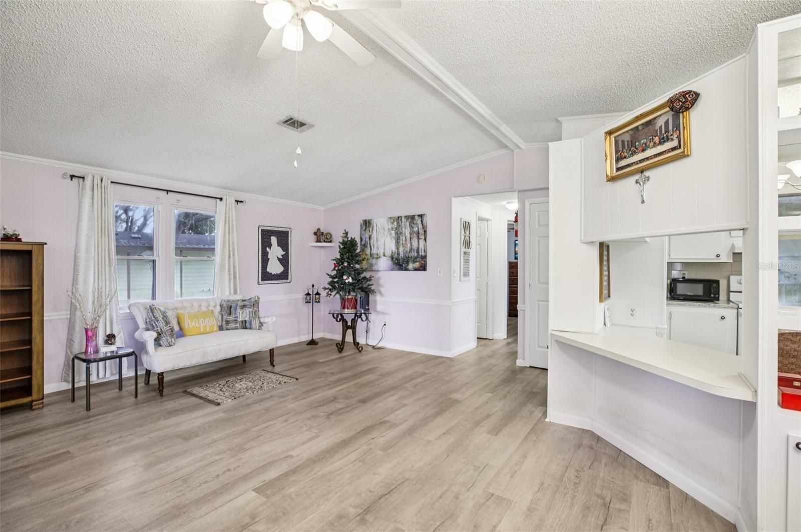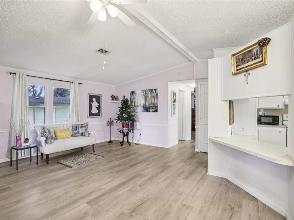 - Ceiling Fan(s), Crown Molding, High Ceilings, Living/Dining Room, Open Floorplan, Main Level Primary, Stone Counters, Thermostat, Walk-In Closet(s), Wet Bar, Window Treatments
