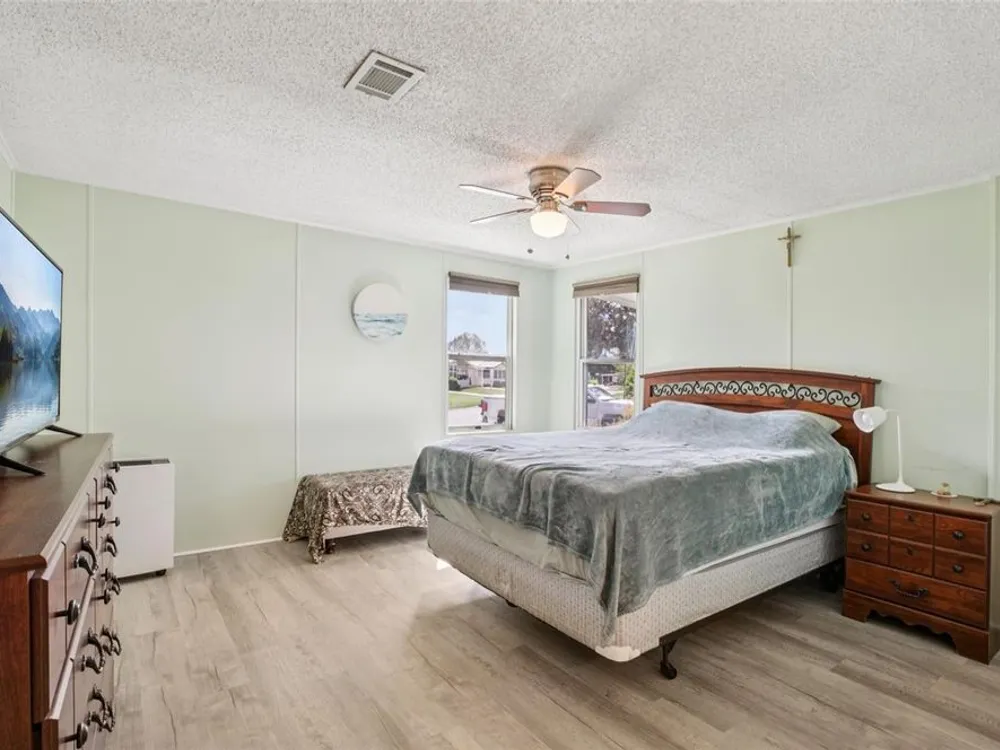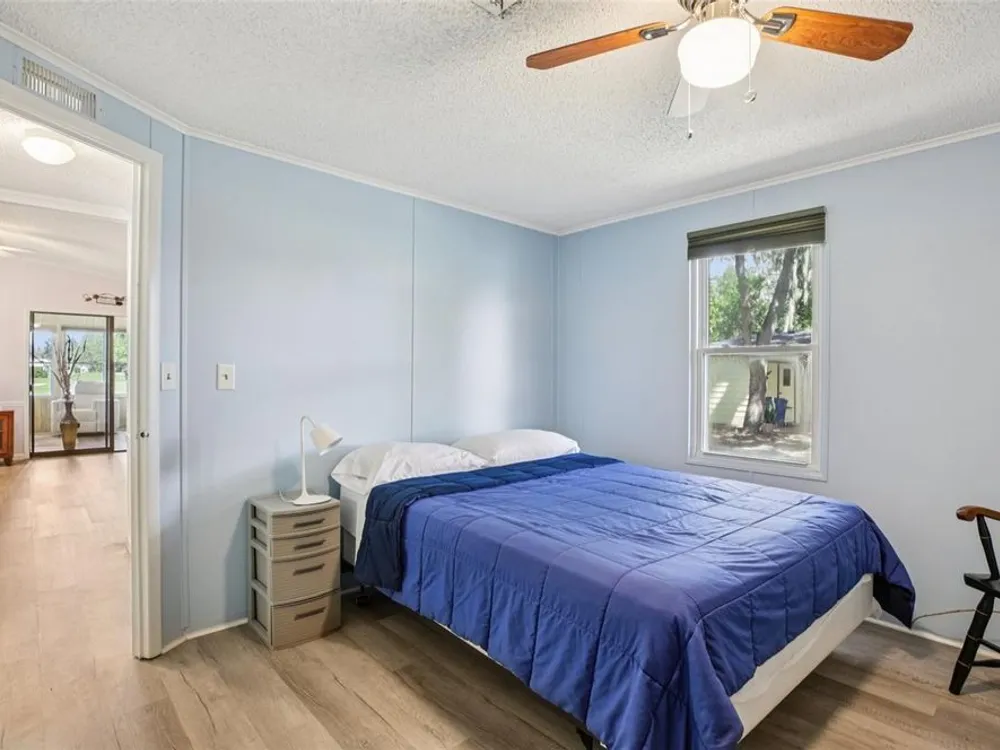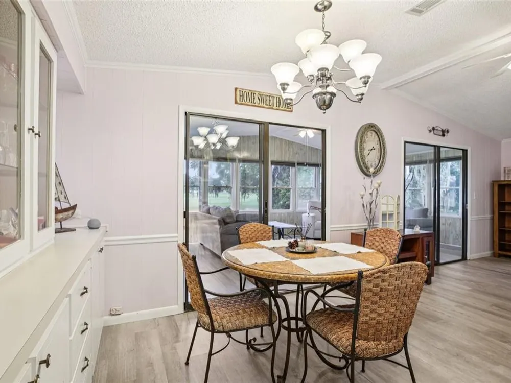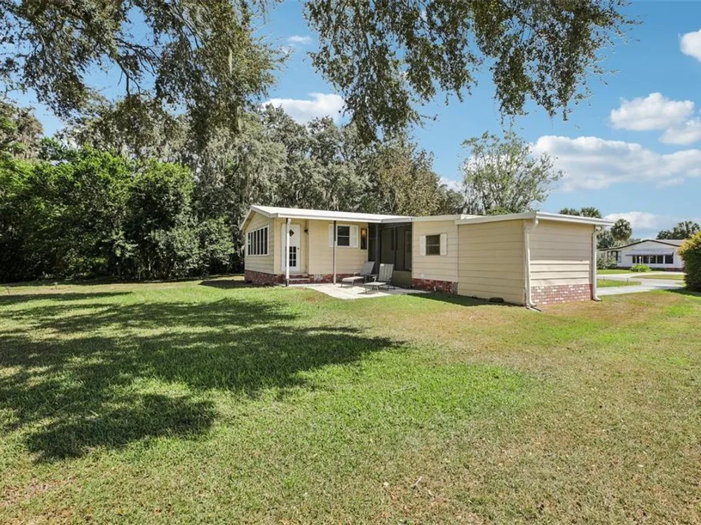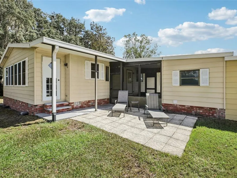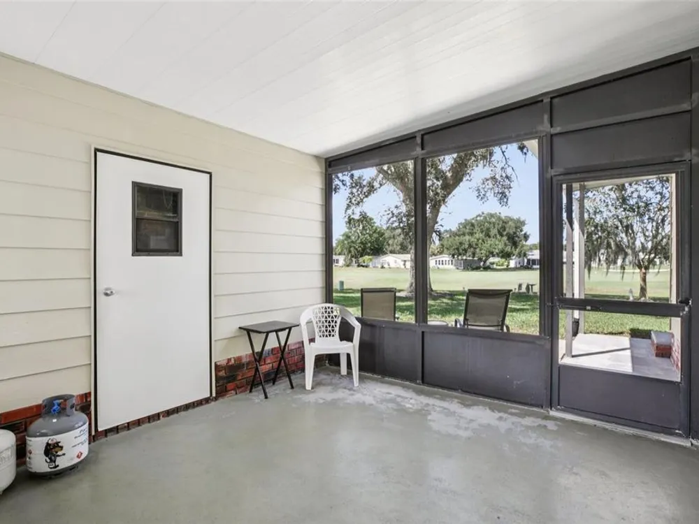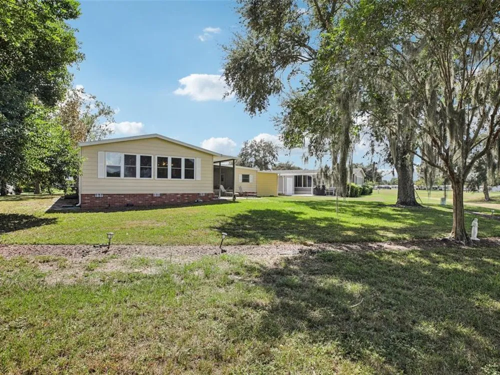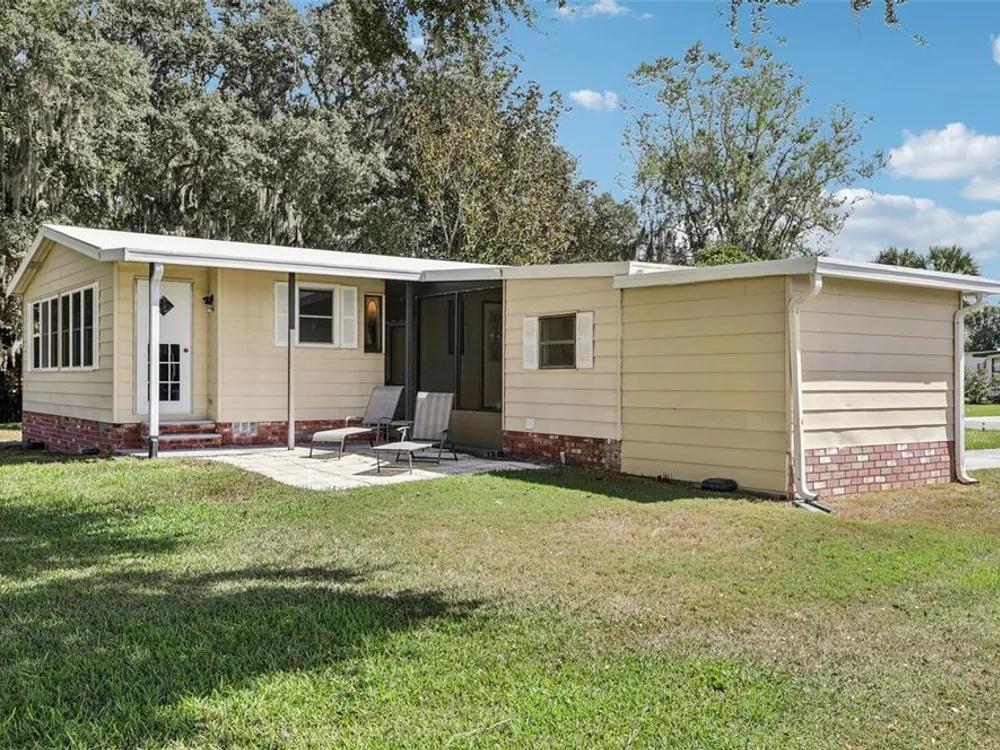 ATTENTION GOLF LOVERS!!! Partially Furnished 2/2 GOLF FRONT HOME on a PIE-SHAPED LOT with a GOLF CART GARAGE on the Orange Blossom Championship Golf Course in The Villages!!! Surrounded by MATURE LANDSCAPING, this lovely, well-maintained home is located on a PEACEFUL CUL-DE-SAC on the Historic Side of The Villages. Enjoy BREATHTAKING PANORAMIC VIEWS of one of THE most picturesque golf courses from your back patio or from the Florida Room which has a built-in wet bar and an electric fireplace. New, light gray laminate flooring throughout the home brightens up the entire living space. NO CARPET. There are also newer windows, a newer AC (2022) and water heater (2023). 2009 Yamaha Gas Golf Cart and some furniture are negotiable. Enjoy this piece of paradise and all the WORLD-CLASS AMENITIES that The Villages is famous for: golf, pickleball, tennis, pools, classes and activities at the recreation centers and nightly live entertainment to name just a few! Schedule your private showing today!