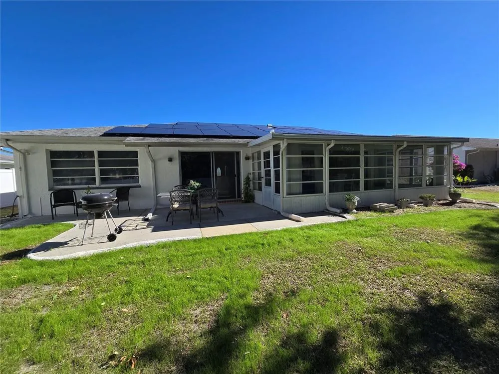 MOTIVATED SELLER WELCOMES YOU TO VIEW THIS WARM AND INVITING, NO HOA FEE, ENERGY EFFICIENT SOLAR HOME, where beauty, quality of craftsmanship, and relaxing warmth will draw you in to the pride of owning this BREATHTAKING HOME WITHOUT OVERBEARING H.O.A. REGULATIONS, and knowing THE SOLAR SYSTEM IS OWNED (not leased) and COVERED BY A 25 YEAR WARRANTY (From date of installation). As you enter, your path will take you through the bright Living Room, past the well-appointed Dining Room, and into the stunning, irresistible warmth and comfort of the Primary Bedroom, boasting a newly remodeled bathroom with an oversize shower and walk-in closet, designed with easy-to-reach shelving. Your next stop should be the new soft-contemporary kitchen, setoff with quartz counter tops and a sweeping stainless steel range hood accenting the “Induction” (no heat) cooktop; surrounded by state-of-the-art appliances including a built-in convection oven, a separate microwave, and a large four-door refrigerator. The customizable cabinetry is designed for total point-of-first-use comfort, including easy glide-out drawers and spring loaded doors that open with a gentle touch. As you stroll into the cozy family room, your attention surrenders to an ultra-modern “wet bar,” complete with wine cooler, sink, and refrigerator, begging your relaxing indulgence. Continuing through to the hall, the soft contemporary flare of the modernized main bathroom, glistens in the sunlight, while to your right, the ultra-modern Laundry Room with more than ample space for added storage and folding clothes, draws your presence. Also note the on-demand water heater (no water tank). What more can you want? Now that you have decided this is your new home, all that’s left is to take your Golf Cart, or Bike, and head over to the Sun City Community Center, where you’ll find a state-of-the-art Fitness Center, Three pools, and more indoor and outdoor activities than imaginable, such as; shuffleboard, Tennis, Pickle ball, Volleyball, and more. Other available activities include; Stained Glass Club, Dance Studio, Pottery, Art, and more!, more!, more! So why wait? Check it out. Better yet, call it home before someone else does, because this one won’t last. ****** MUST KNOW INFO ****** Sun City Center is an active, 55 plus community consisting of HOA, COA, POA, etc. Associations. These Associations may charge monthly fees which can range from $0 monthly, to $1000 or more. In some areas, properties appear to be ordinary single homes, when, in fact, they’re considered Condominiums, where land ownership, rules / pet rules, and regulations, routinely fall under association control and ownership, that can differ widely. The commonality of all FIRST TIME BUYERS in SCC, is a one-time BUY-IN fee ($3000.00) for 2025. Your R/E Agent can fully explain this and the annual fees ($344.00 PP for 2025) due to the Sun City Center Community Association to support the wide variety of pools and other activities for your living pleasure. It is incumbent upon the prospective Buyer to investigate the rules and fees associated with a particular area of interest, in order to make an informed decision. INFORMATION DEEMED CORRECT. BUYER IS RESPONSIBLE FOR VERIFYING ALL INFORMATION. Annual Association Fee of ($344,00) is for each person 55 or older in the residence.... Some or all of the furniture and fixtures are negotiable outside of the home purchase contract. Why not make it YOUR NEW PLACE TO CALL HOME